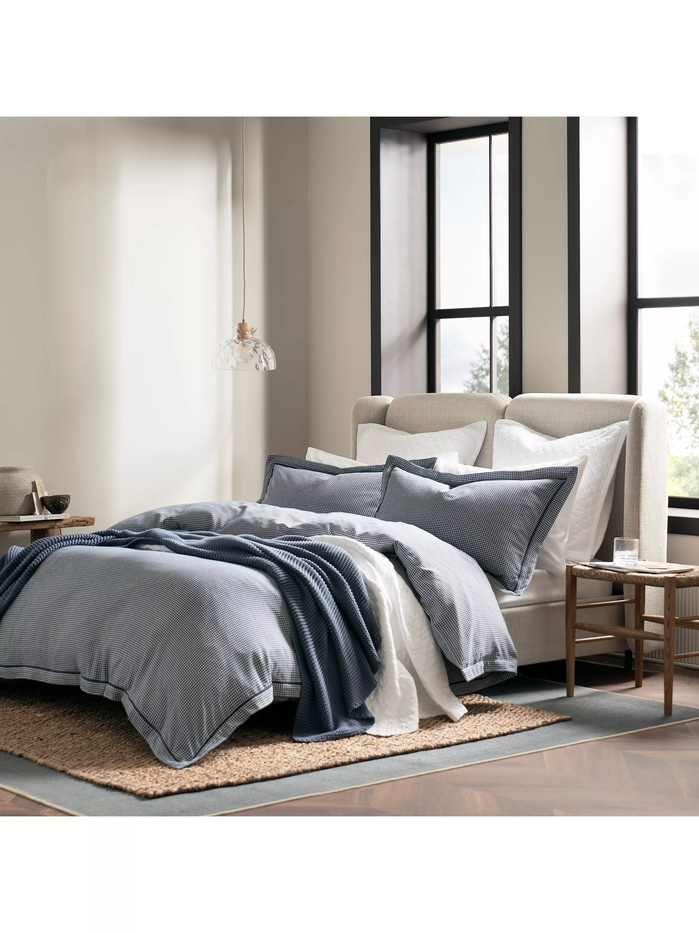 Laid back, yet endlessly classic, this navy gingham bedding is woven from yarn-dyed cotton for lasting softness and depth of colour. With its relaxed texture and refined Oxford edge, it blends casual comfort with thoughtful detail.