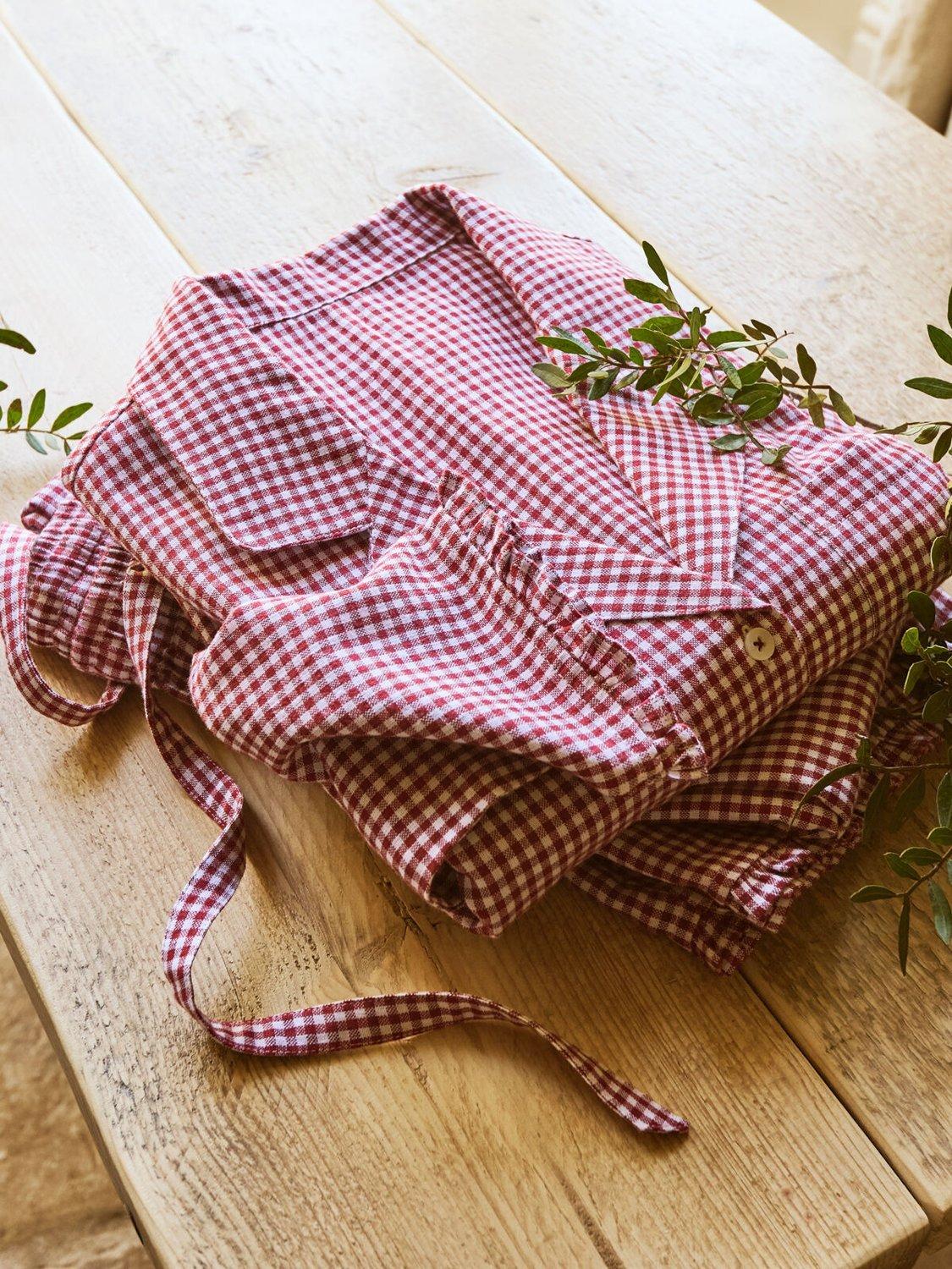 Relax in warm, classically styled gingham pyjamas. A yarn-dyed merlot stripe brings a touch of heirloom elegance, while naturally cosy, yet breathable, fabric offers a soft, airy feel.