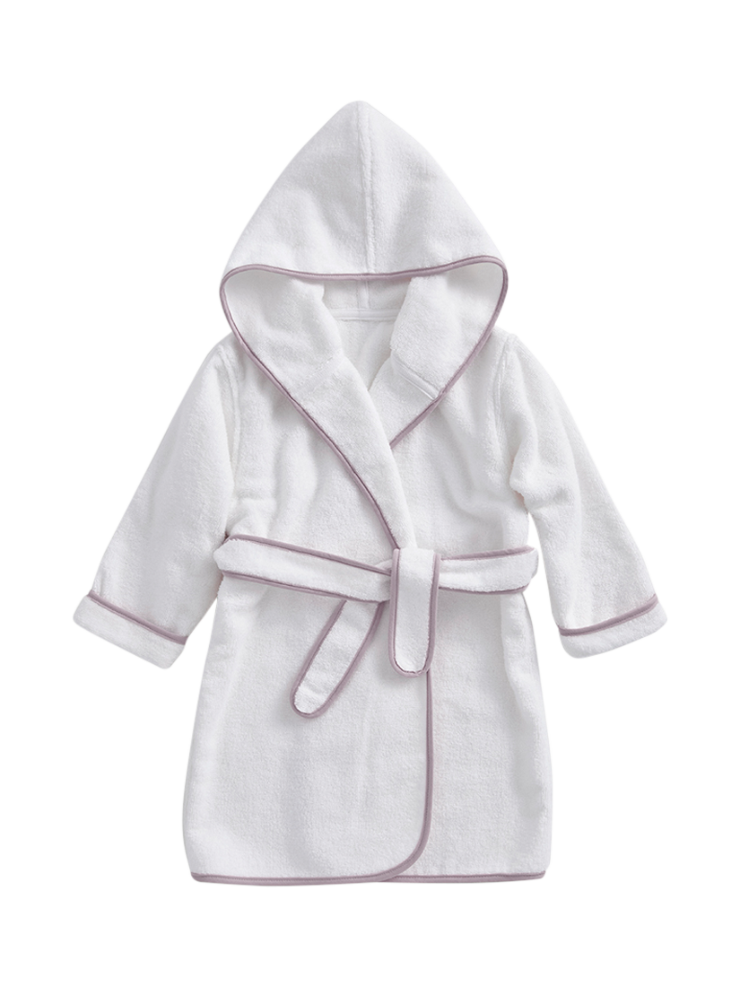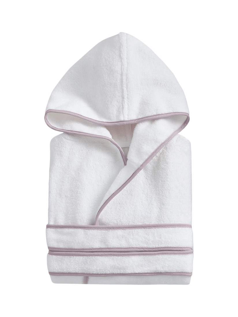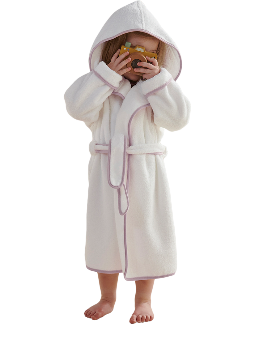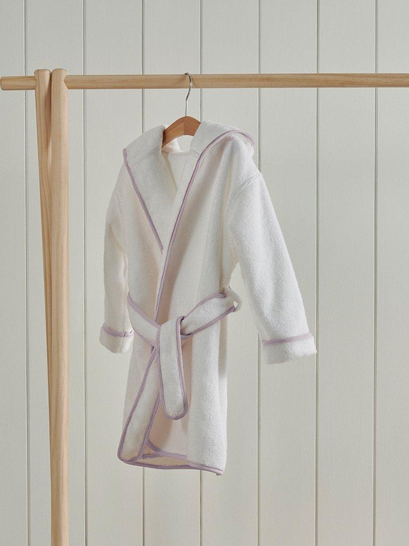 Keep it cosy in Christy's practical and adorable Mini kids' and baby bathrobe. Made with Christy's signature love and care and crafted from 100% cotton, this robe is absorbent, soft and ideal for chilly mornings or post-bathtime. A warm, gentle hug for delicate skin, these cute and classic Mini white robes have a contrast piped edge and a hood for maximum snugness.