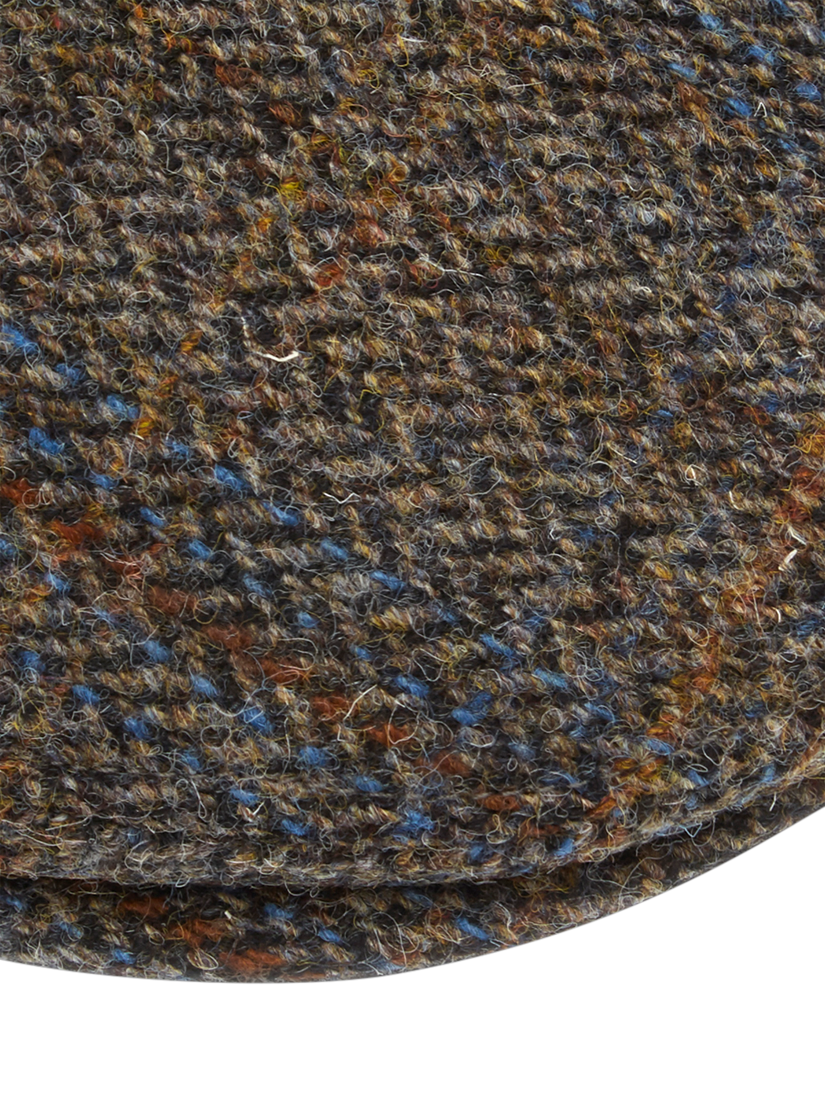 This version of the Balmoral flat cap is made from Harris Tweed. With true provenance, all Harris Tweed must be produced in the Outer Hebrides and nowhere else. Every inch of wool is dyed and spun in an island mill. Every yard is handwoven at the home of a Harris Tweed weaver, then certified with the famous Orb Mark