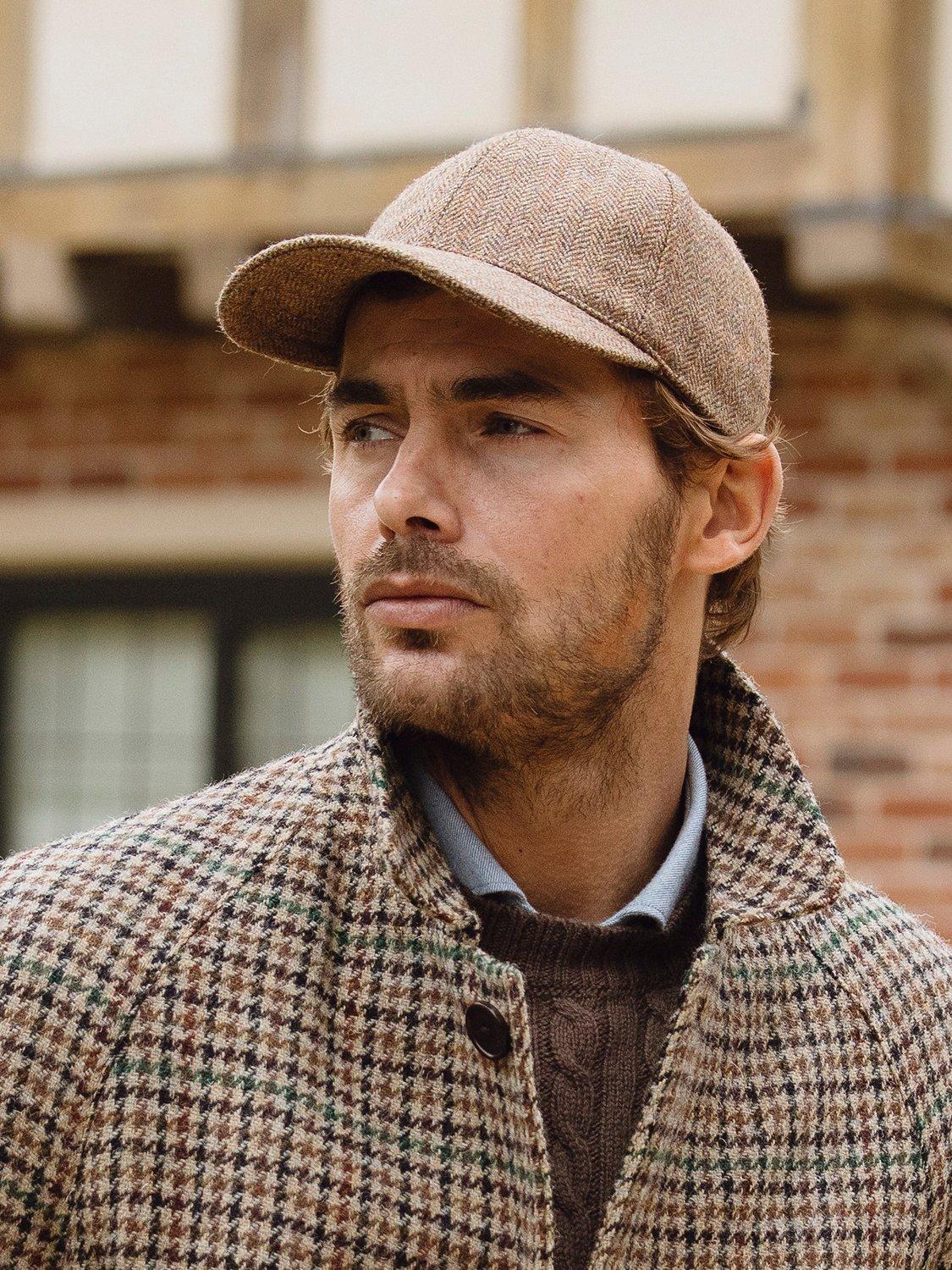 Christys'Herringbone Tweed Baseball Cap, Biscuit