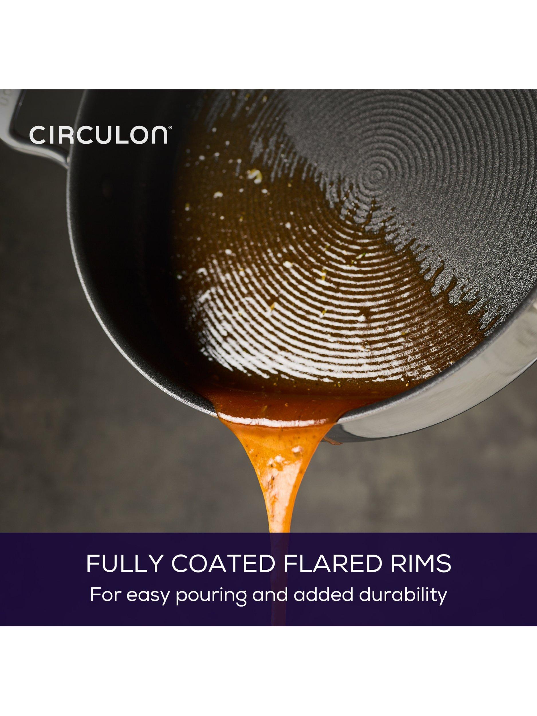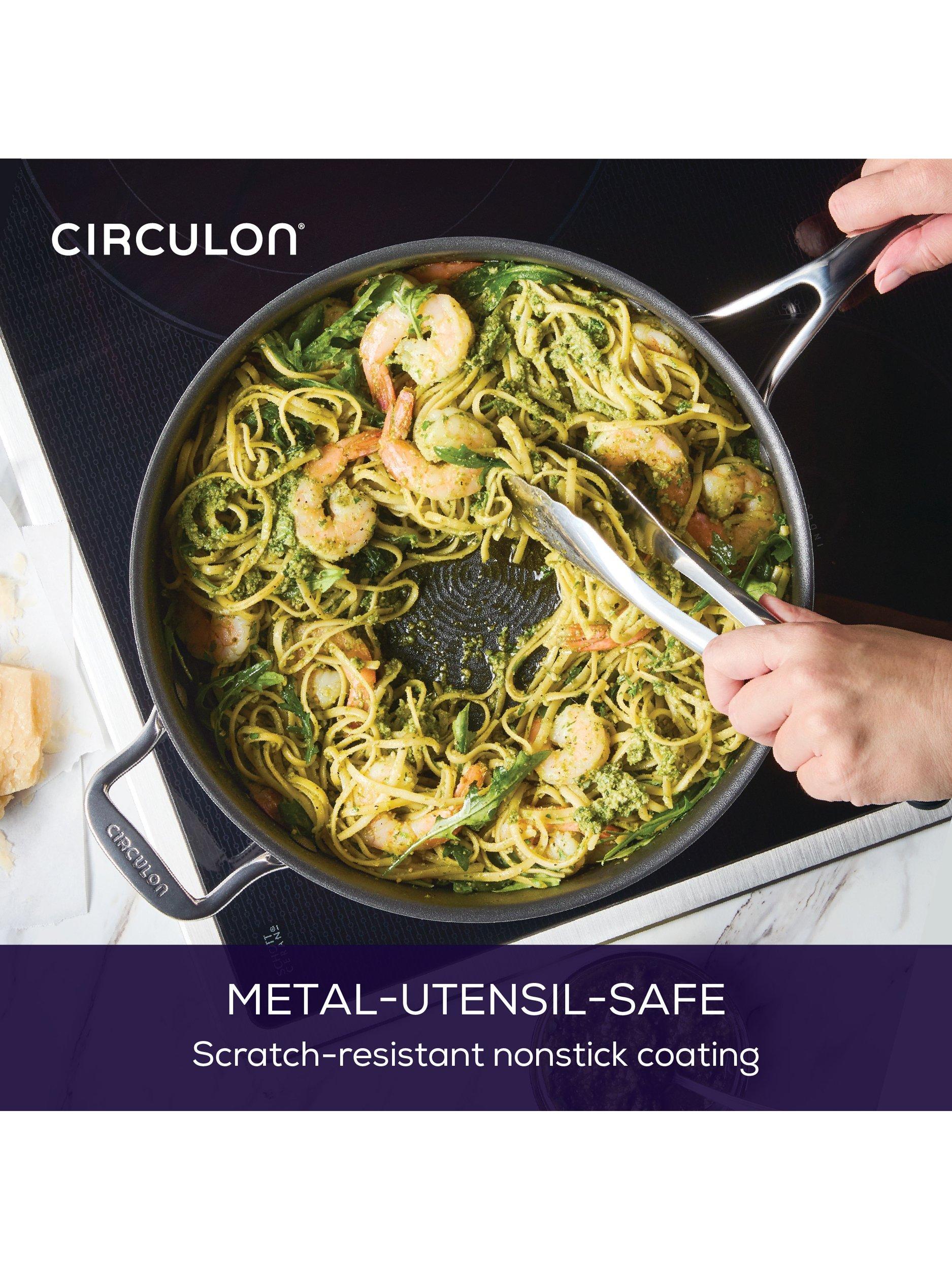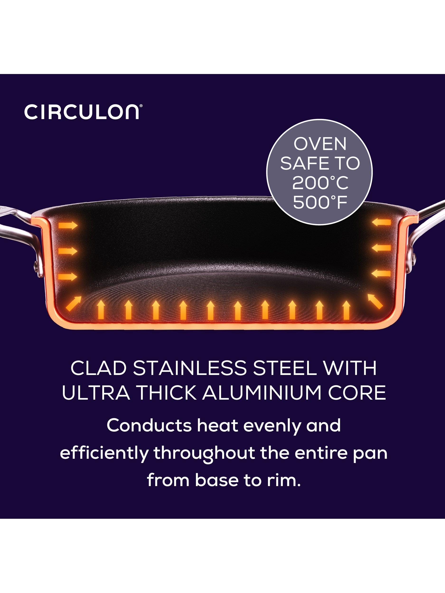 Cookware that combines the luxury of stainless steel with Circulon's ScratchDefense extreme non-stick technology.