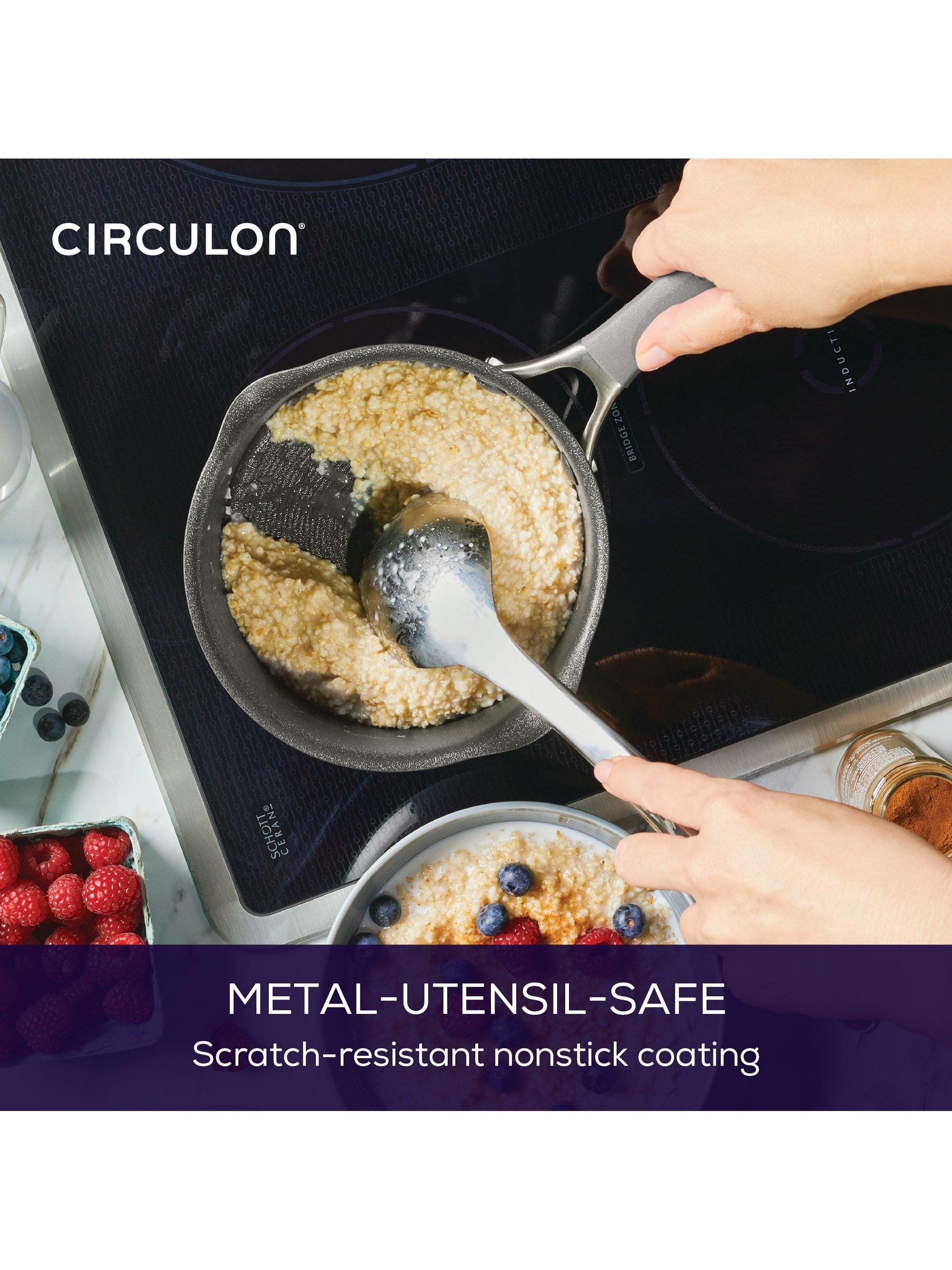 ScratchDefense advanced non-stick cookware from Circulon is truly dishwasher safe for convenient clean-up without sacrificing performance. Engineered not to scratch, the non-stick has been laboratory tested to last more than 350,000 scrapes without making a mark. Made with durable aerospace-grade materials to create a thicker and harder surface than ordinary non-stick, this eliminates scratching, sticking and flaking.