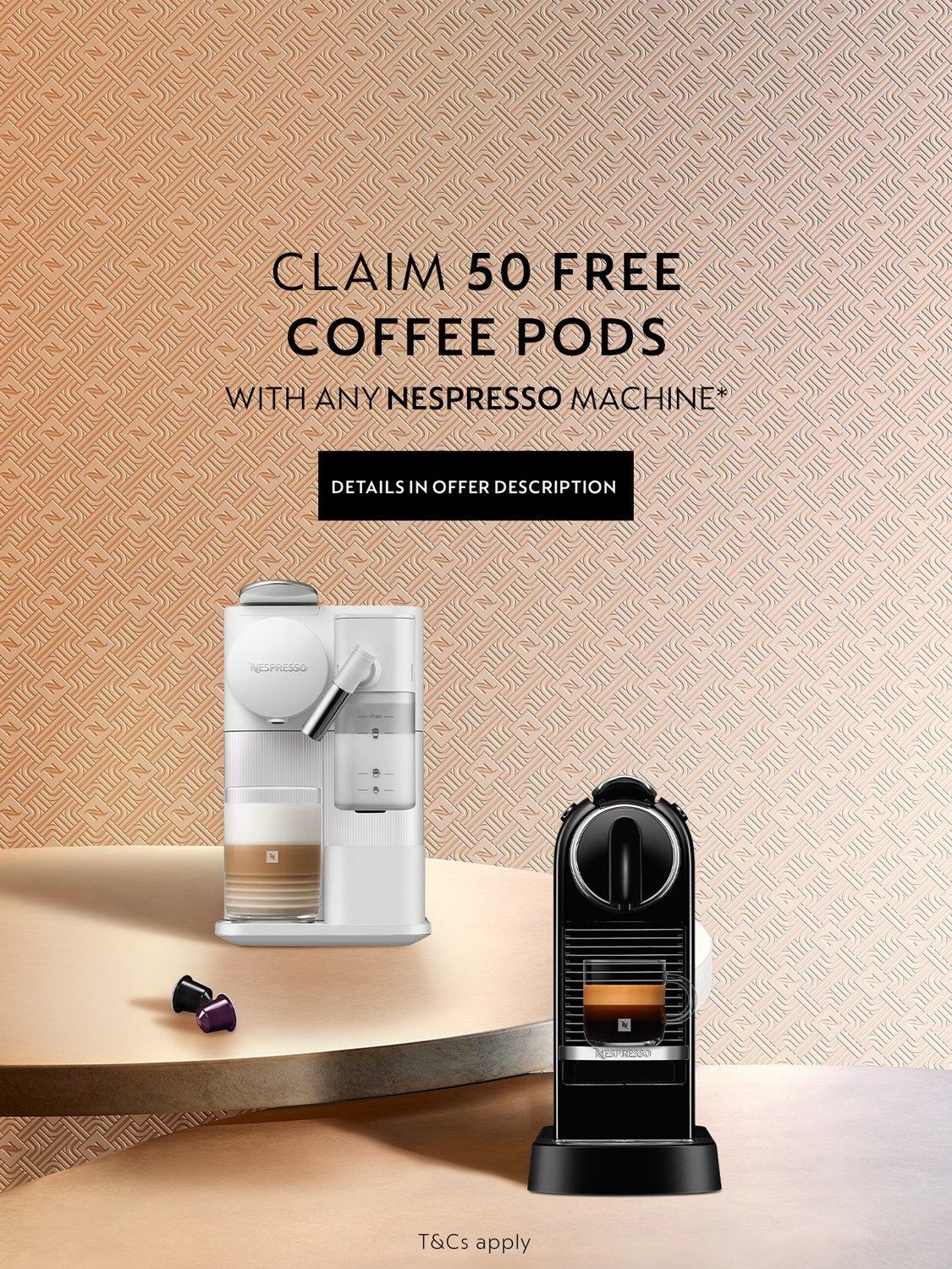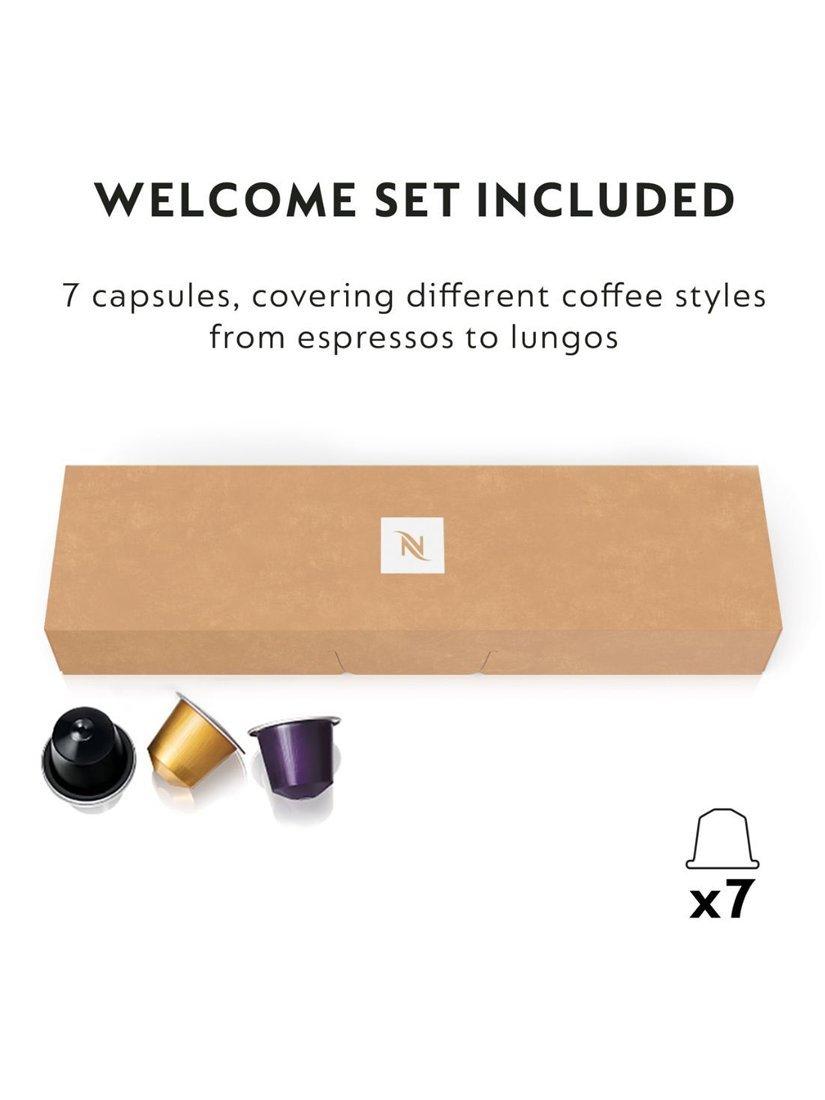 This coffee machine comes with 7 Nespresso coffee pods, covering different coffee styles from Espresso to Lungo to help you discover our recipes and flavours you can find out more about our coffees on the Nespresso website.
