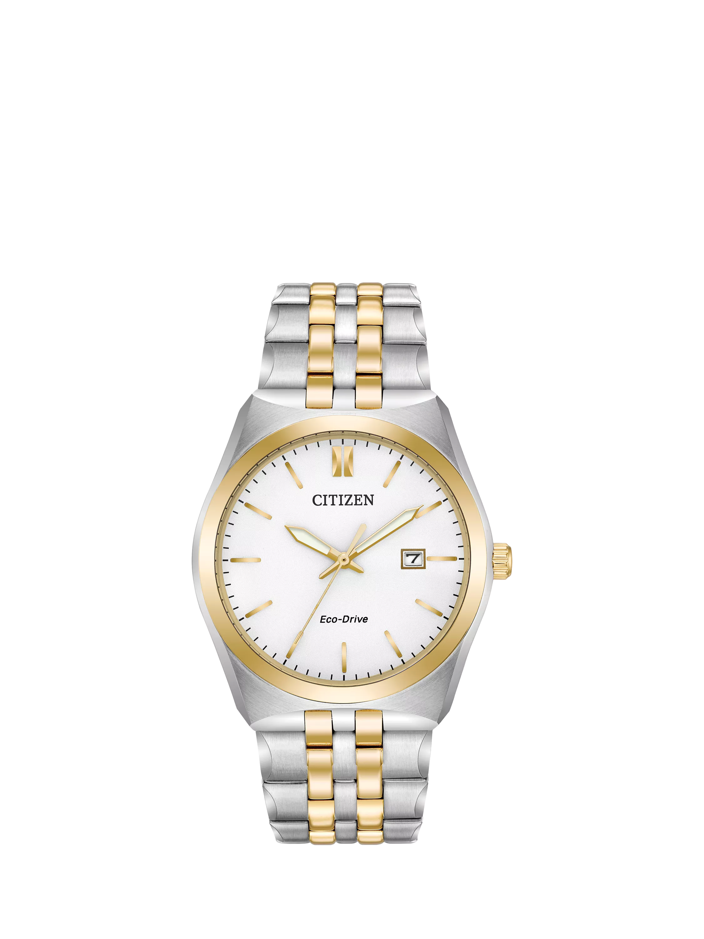 Details include a sophisticated white dial and a date window perfect for the every day. Featuring Citizen Eco-Drive technology powered by light - any light - it never needs a battery.