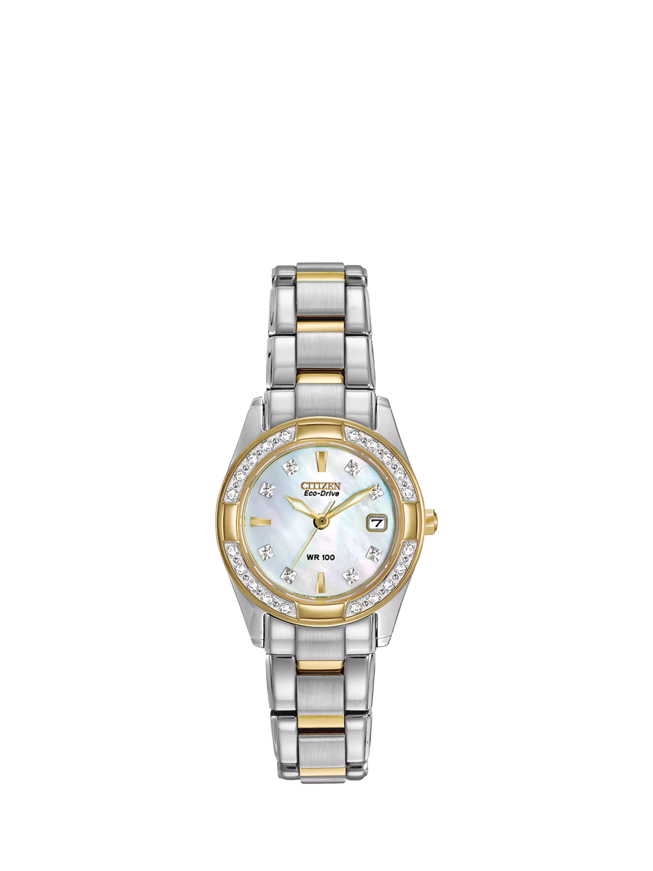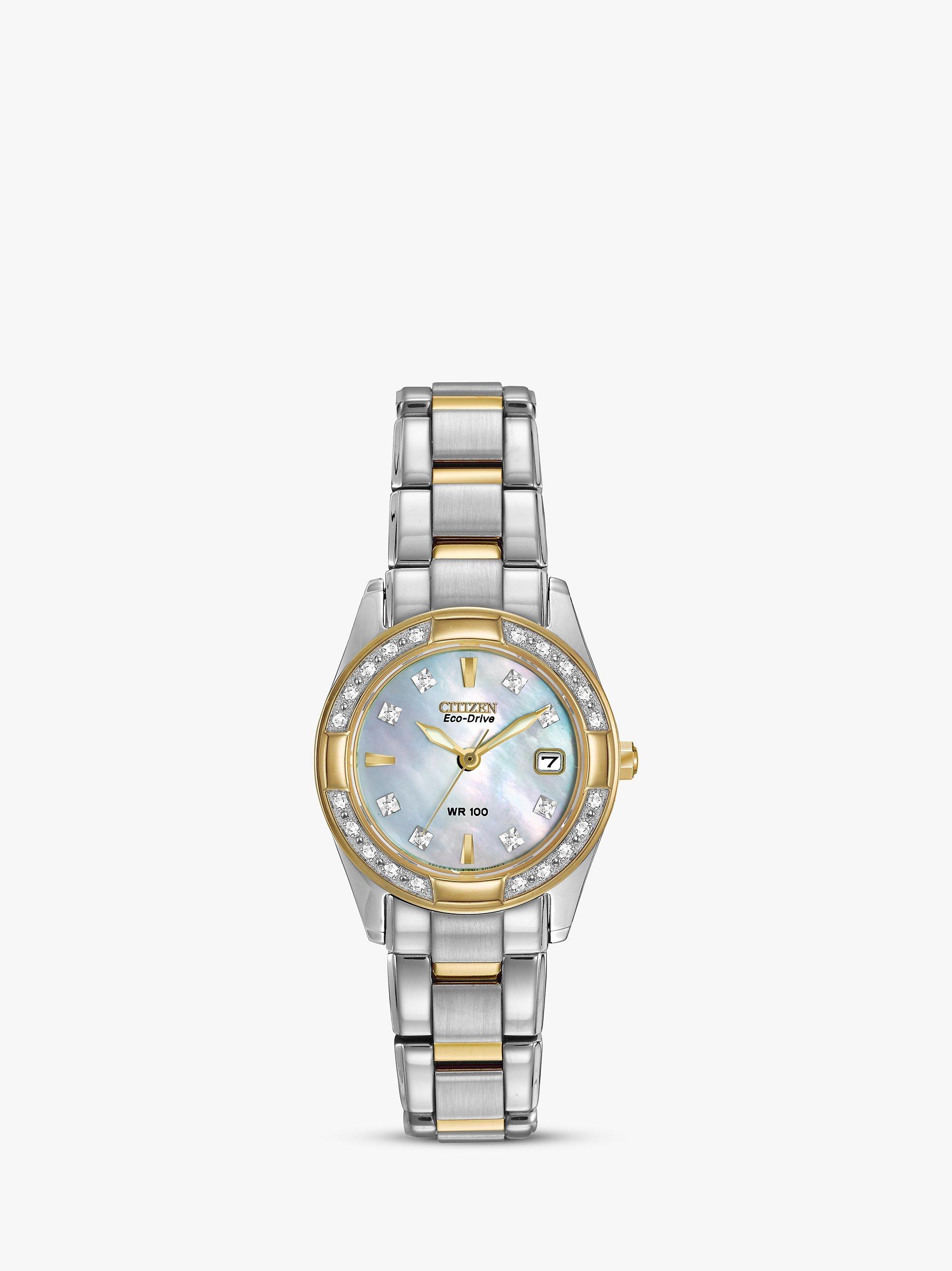 CitizenEW1824-57D Women's Eco-Drive Regent Two Tone Diamond Bracelet Strap Watch, Silver/Gold