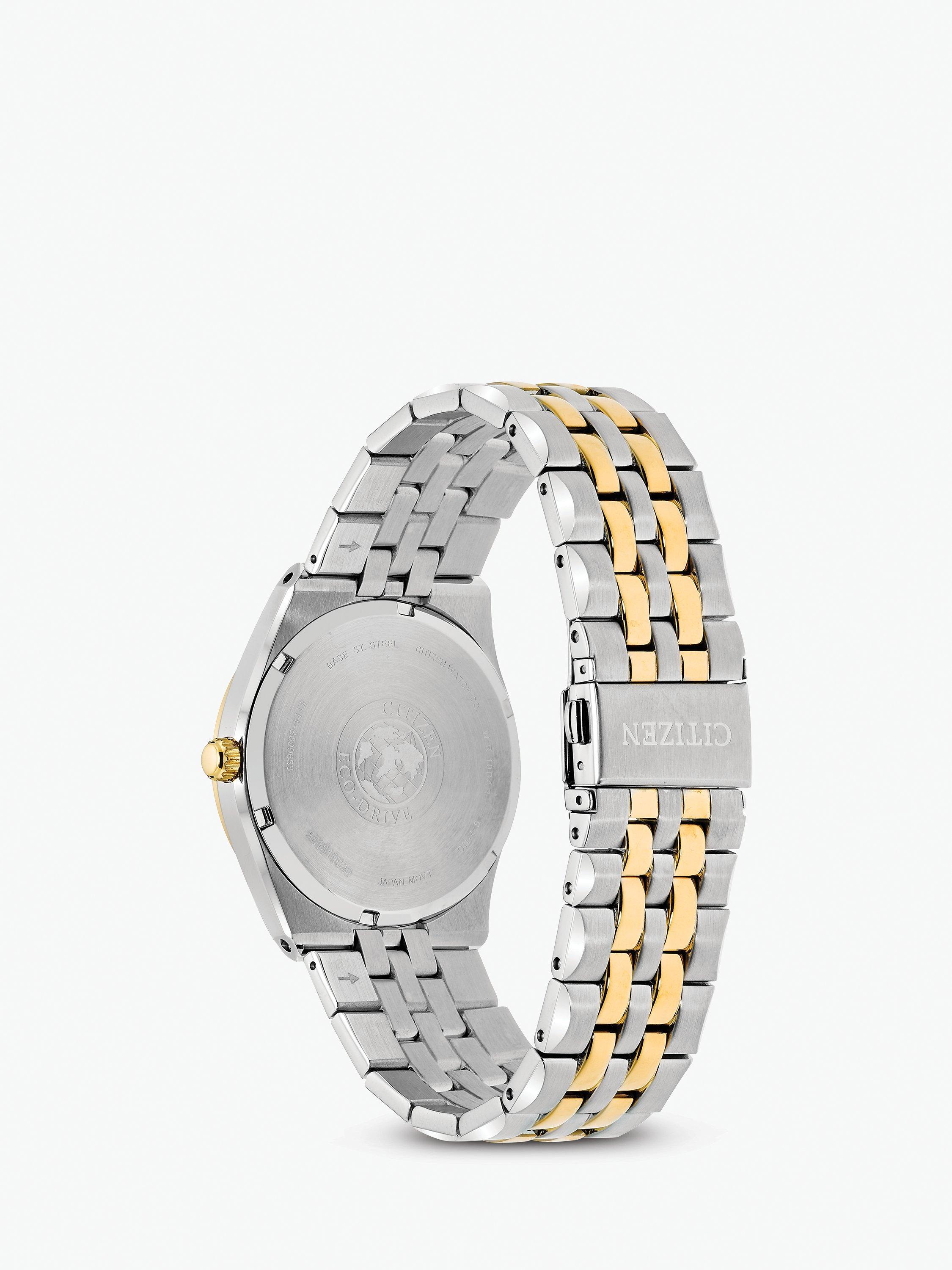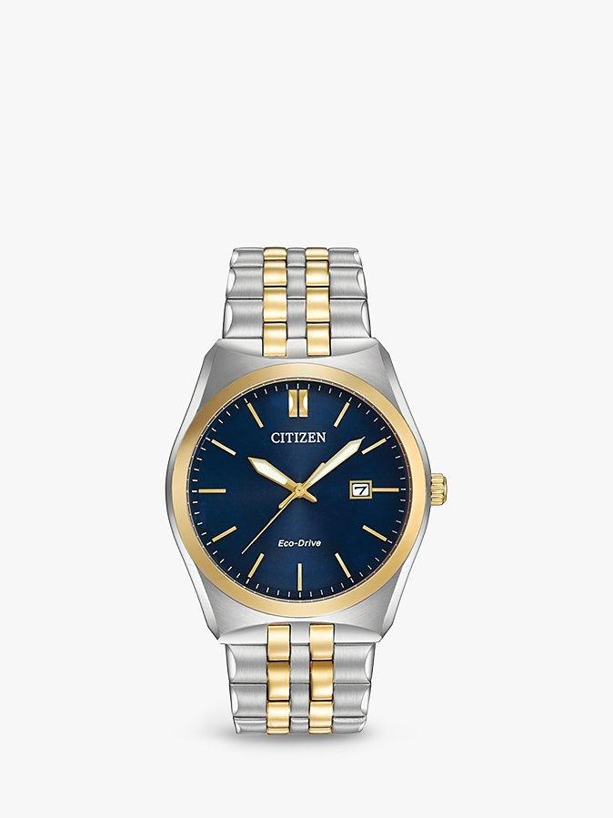 The byword is versatility for this handsome 3-hand Citizen Corso watch crafted in stainless steel. Details include a sophisticated coloured dial and a date window perfect for the everyday businessman. Featuring Citizen Eco-Drive technology – powered by light, any light. Never needs a battery.
