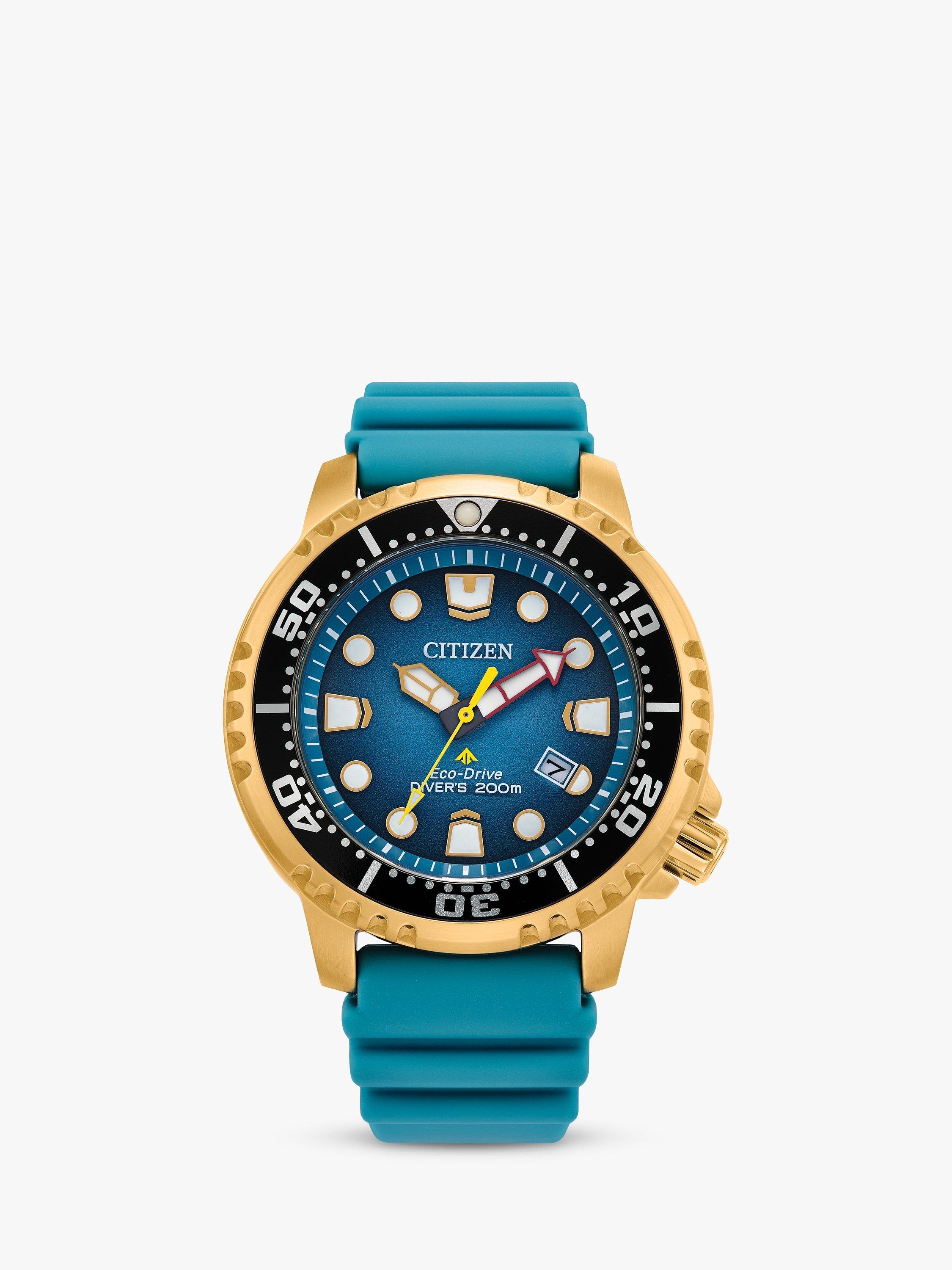 Explore the deepest depths with this Promaster Diver. This must-have ISO-compliant diving watch features a stainless-steel case, a unique gradient dial with a 3-hand movement, date display and luminous hands and markers. The durable water-resistant polyurethane strap completes the look. Featuring our sustainable Eco-Drive technology powered by light that never needs a battery. You’ll wear this high-performance timepiece in high style from adventures on land to the deep blue sea. Completed with a screw-down case and crown and water resistance to 200 metres.