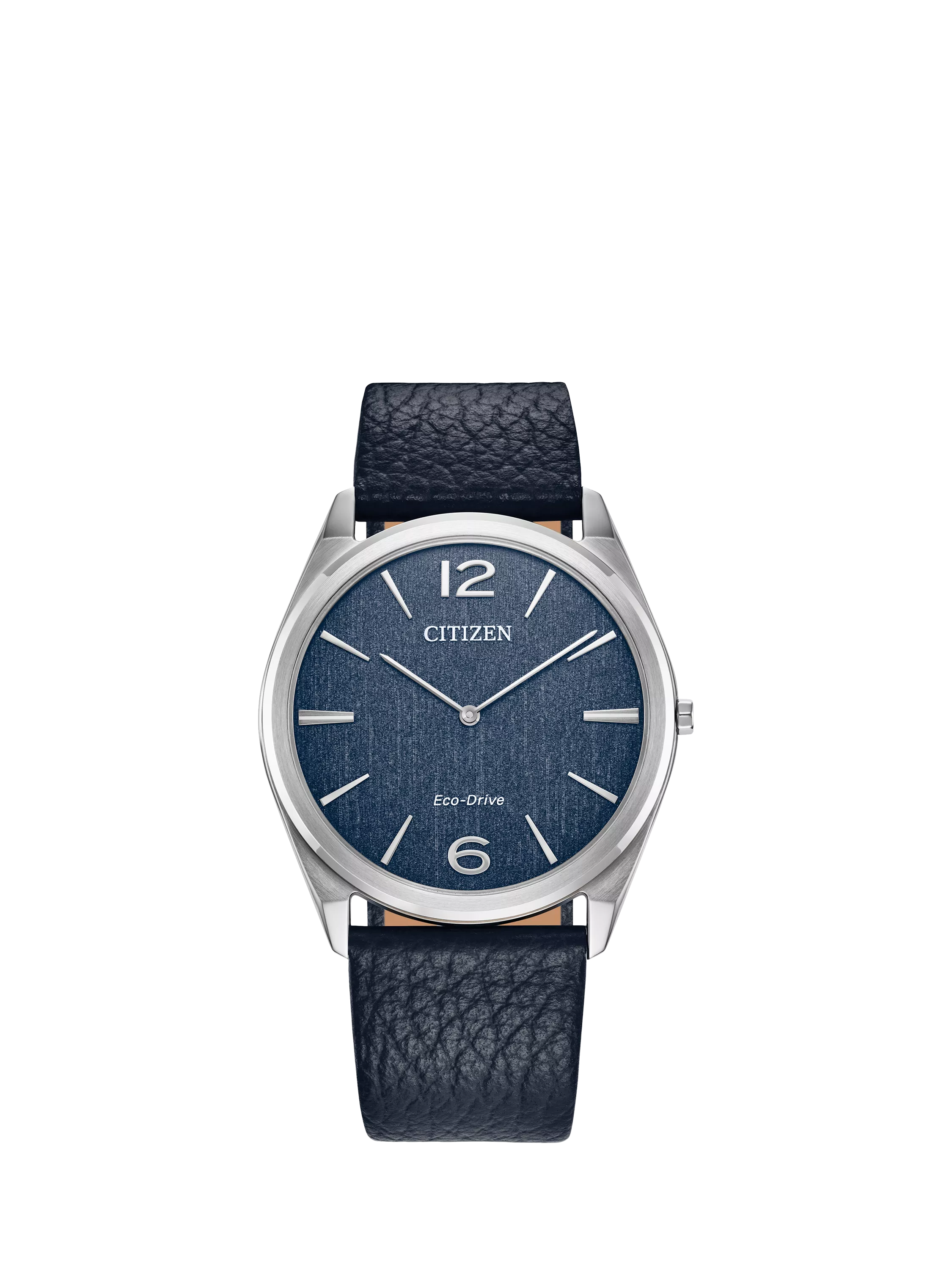 This all-purpose dress watch features a versatile stainless steel 38mm case, a two-hand dial featuring an entrancing metallic powder aesthetic and is secured to the wrist via a grained leather strap with buckle closure.Sustainably powered by any light with Eco-Drive technology, it never needs a battery.