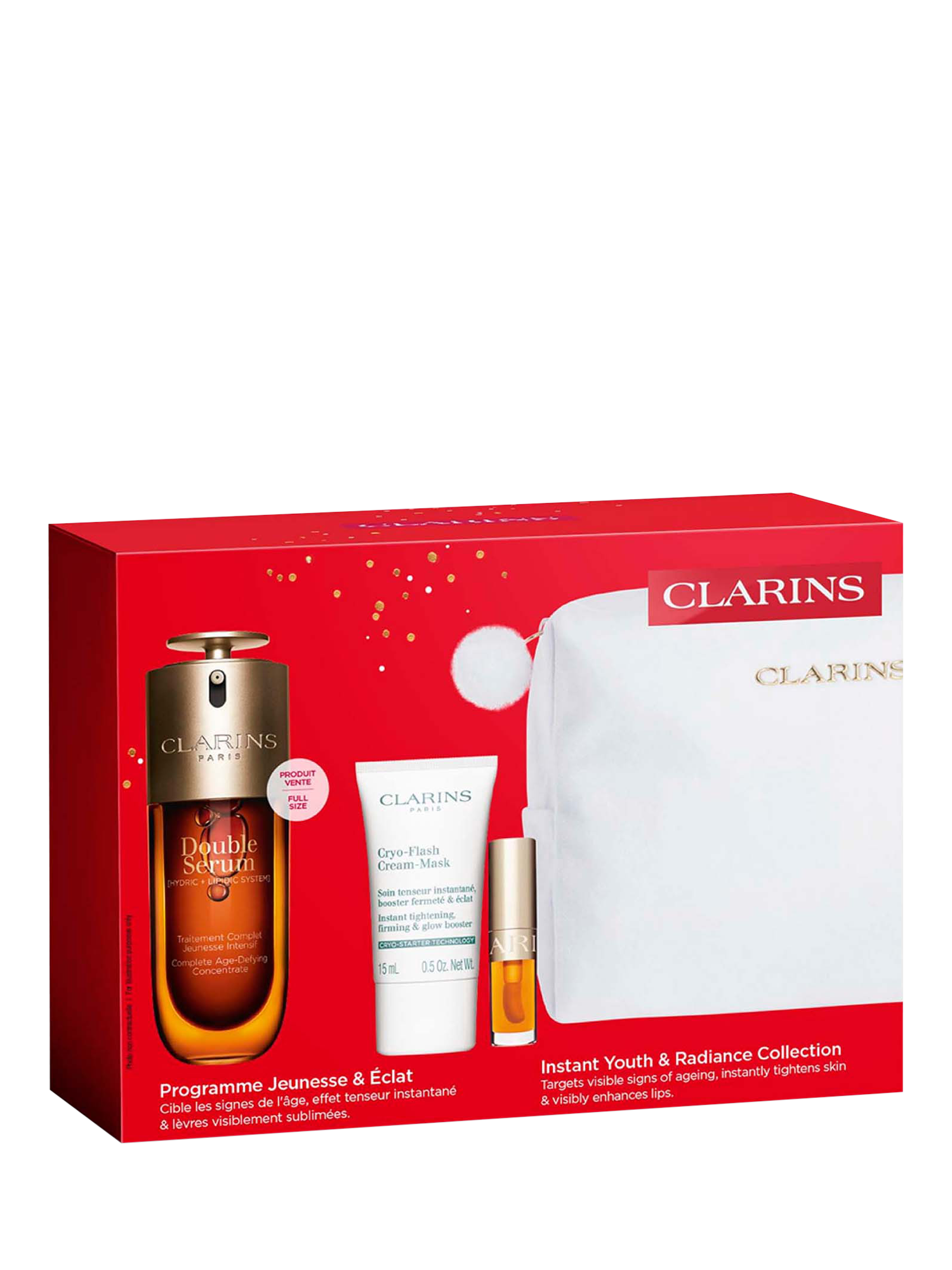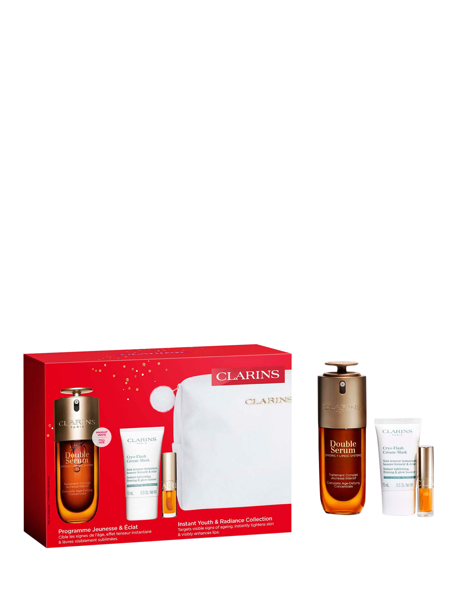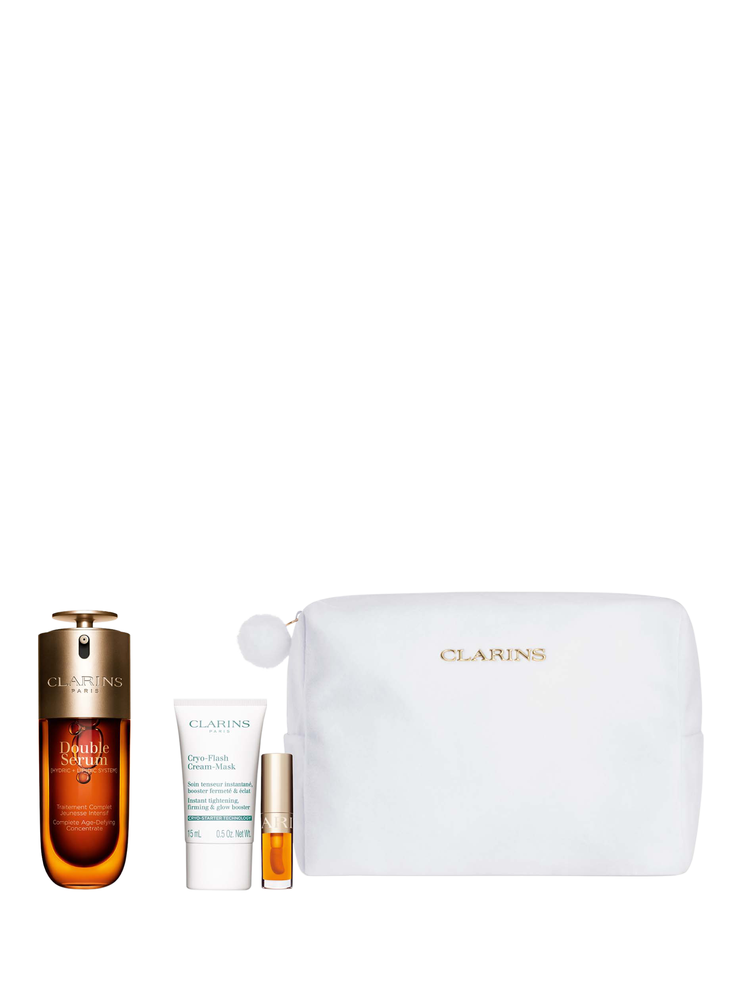 This collection includes a full-size Double Serum, Cryo-Flash Cream-Mask, and the nourishing Lip Comfort Oil 01 Honey.