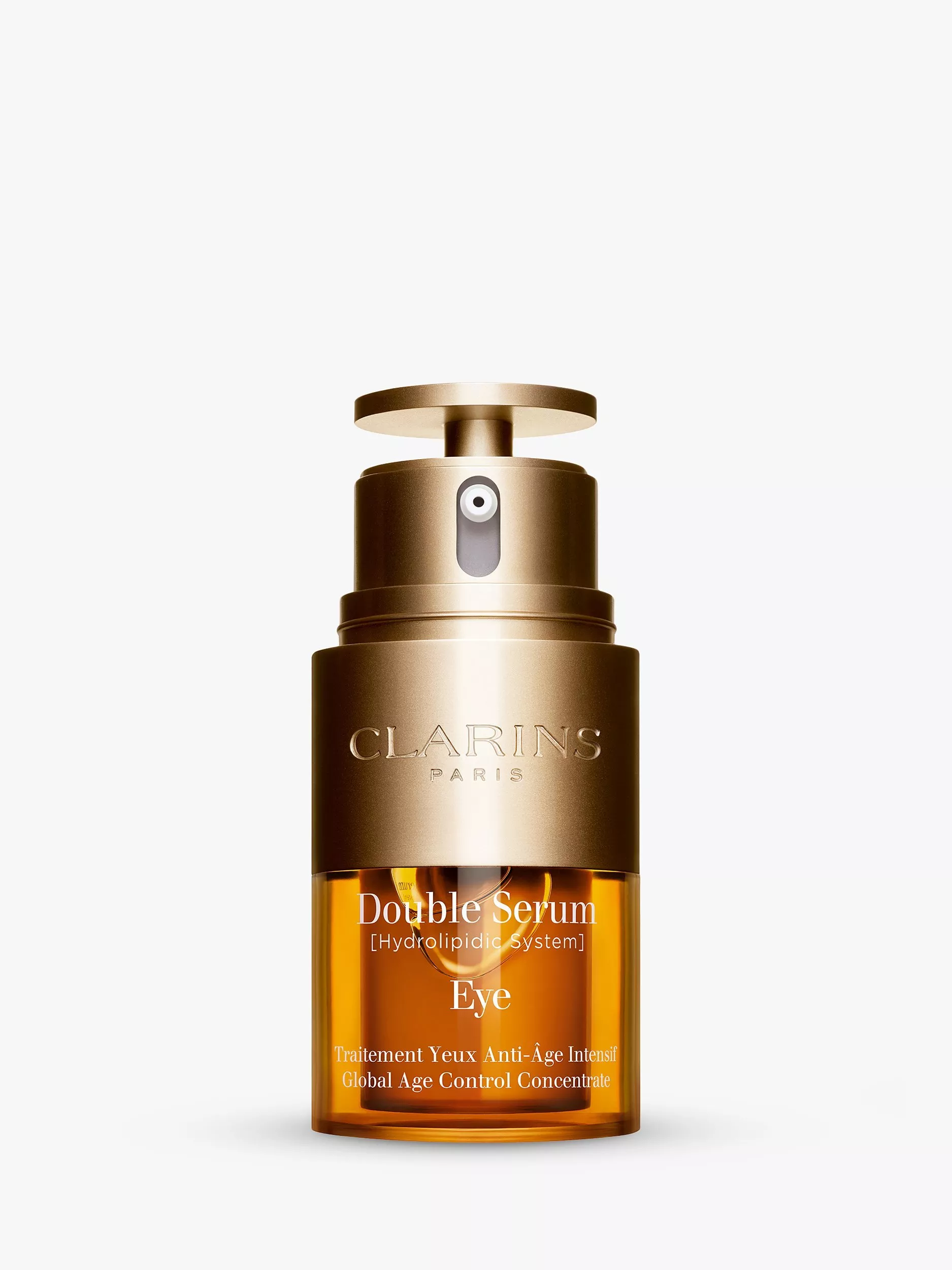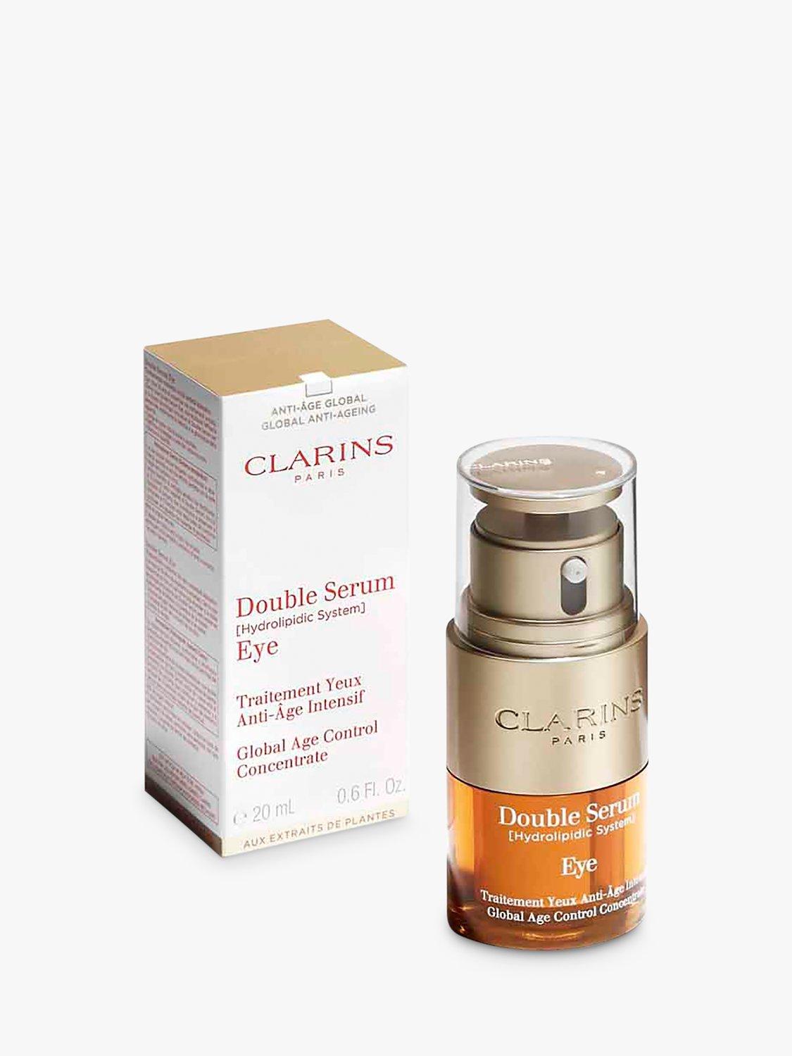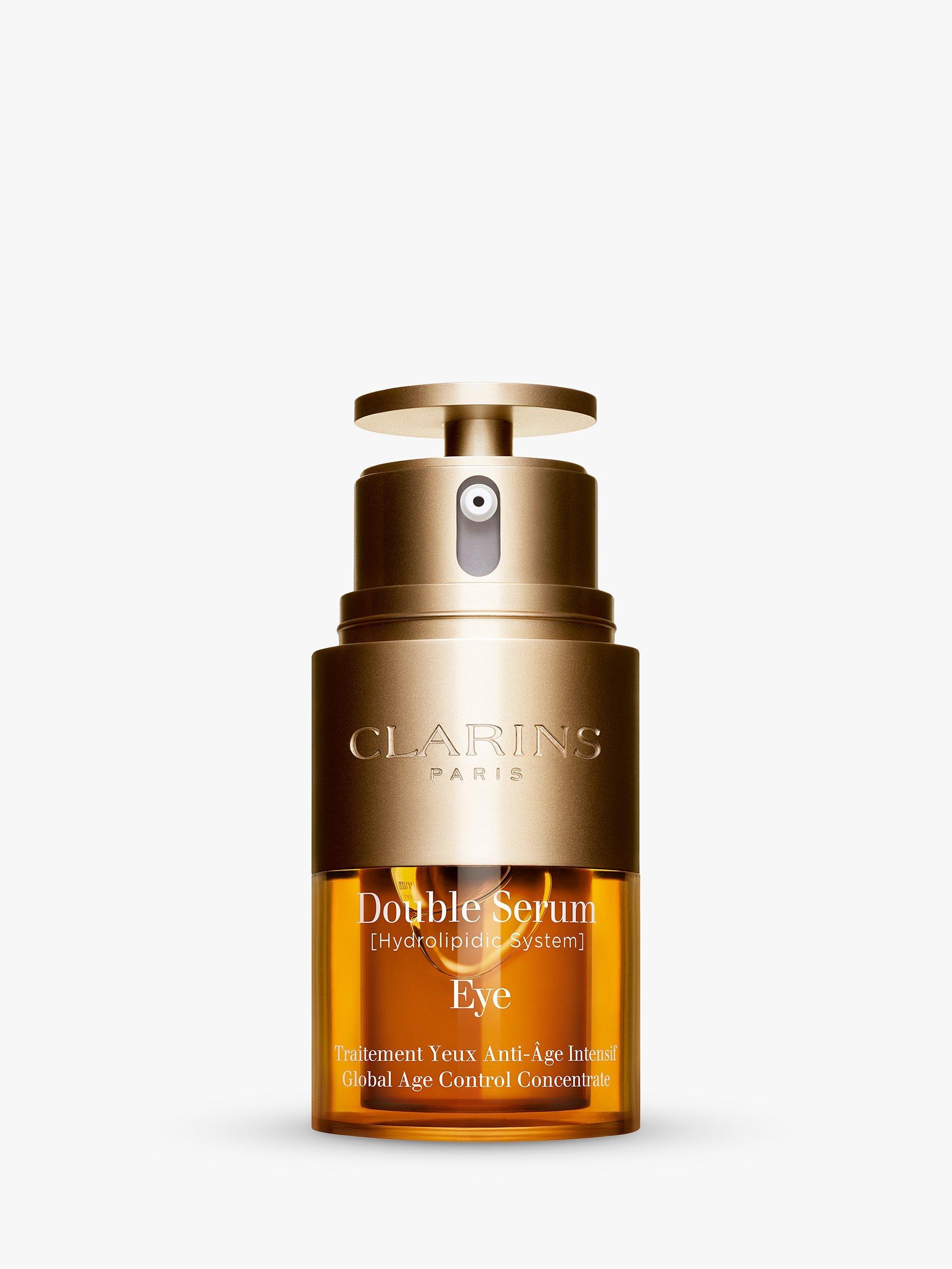 Double Serum Eye is a global age control concentrate that targets all signs of ageing and concerns within the eye contour to preserve the eye area's youthful qualities. The formula, with 96% of ingredients from natural origin, contains Clarins new plant discovery, chervil extract, which helps the skin regain strength and vitality, boosting cell communication. Chervil extract is combined with 12 other plant extracts including Double Serum's star ingredient, turmeric extract, to boost skins renewal for a smoother and brighter eye area. The complete eye serum also contains Clarins new anti-pollution complex, this targets all indoor and outdoor pollution as well as protecting against blue light pollution, generated by screens, which causes dehydration and dry skin, leading to ageing around the eyes.