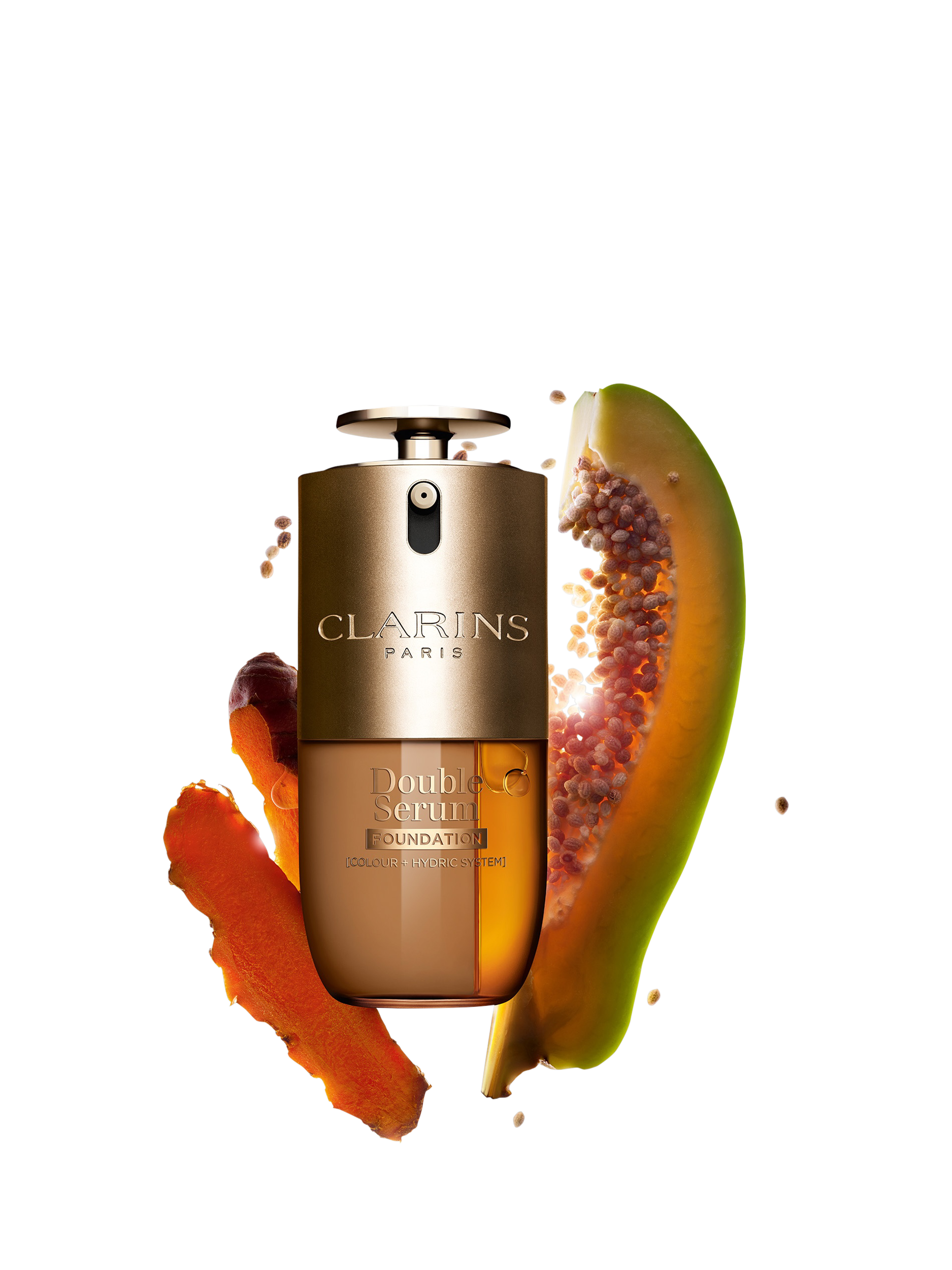 Double Serum Foundation is enriched with 14 active ingredients, including new stabilised papaya to restore glow, alongside hyaluronic acid for deep hydration and peptides to boost collagen production.