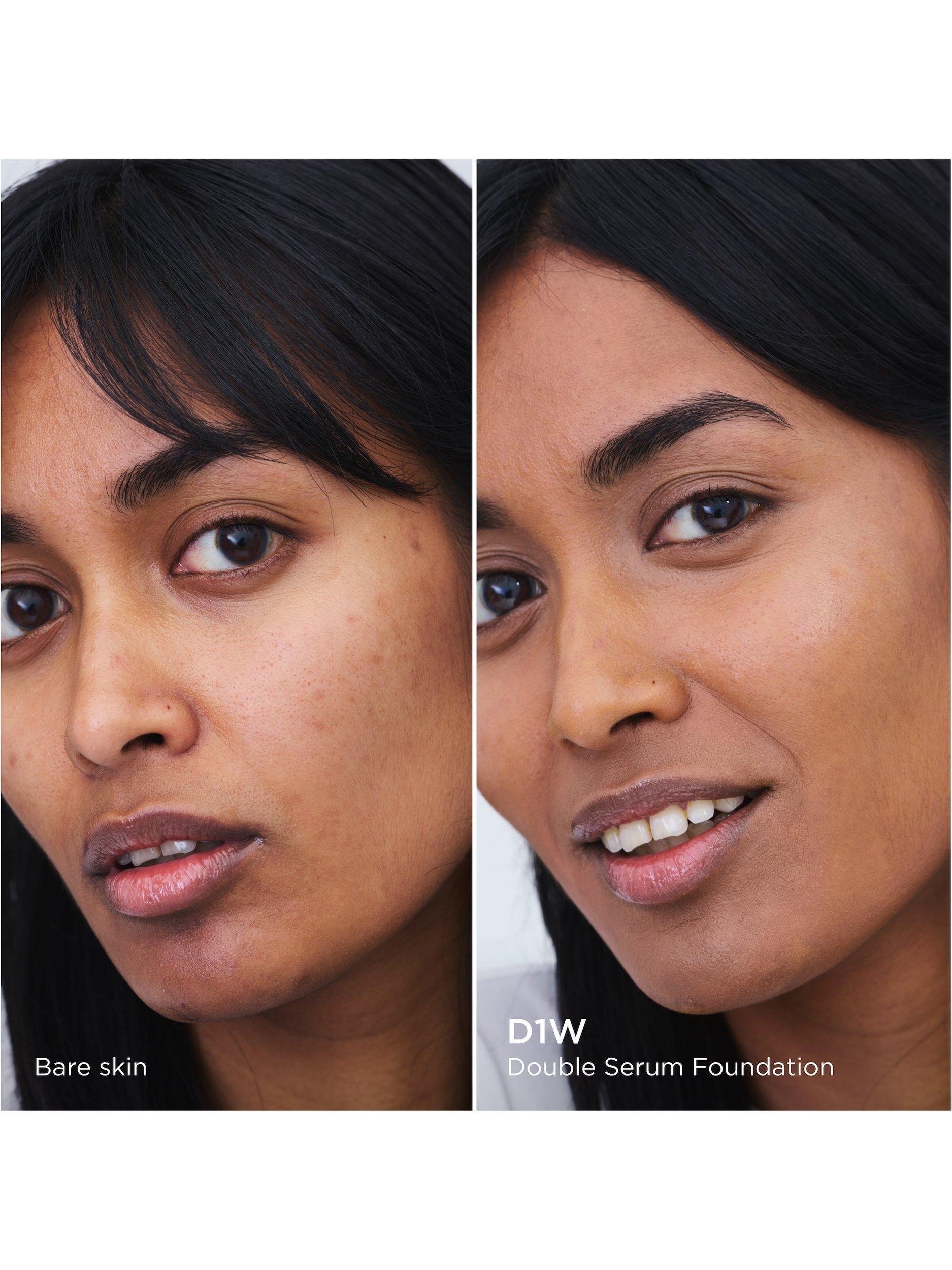 For best results apply your Double Serum and moisturiser and follow with Double Serum Foundation. When used together consumers saw a 36%^ increase in firmness and a 28%^ reduction in wrinkle visibiltiy.