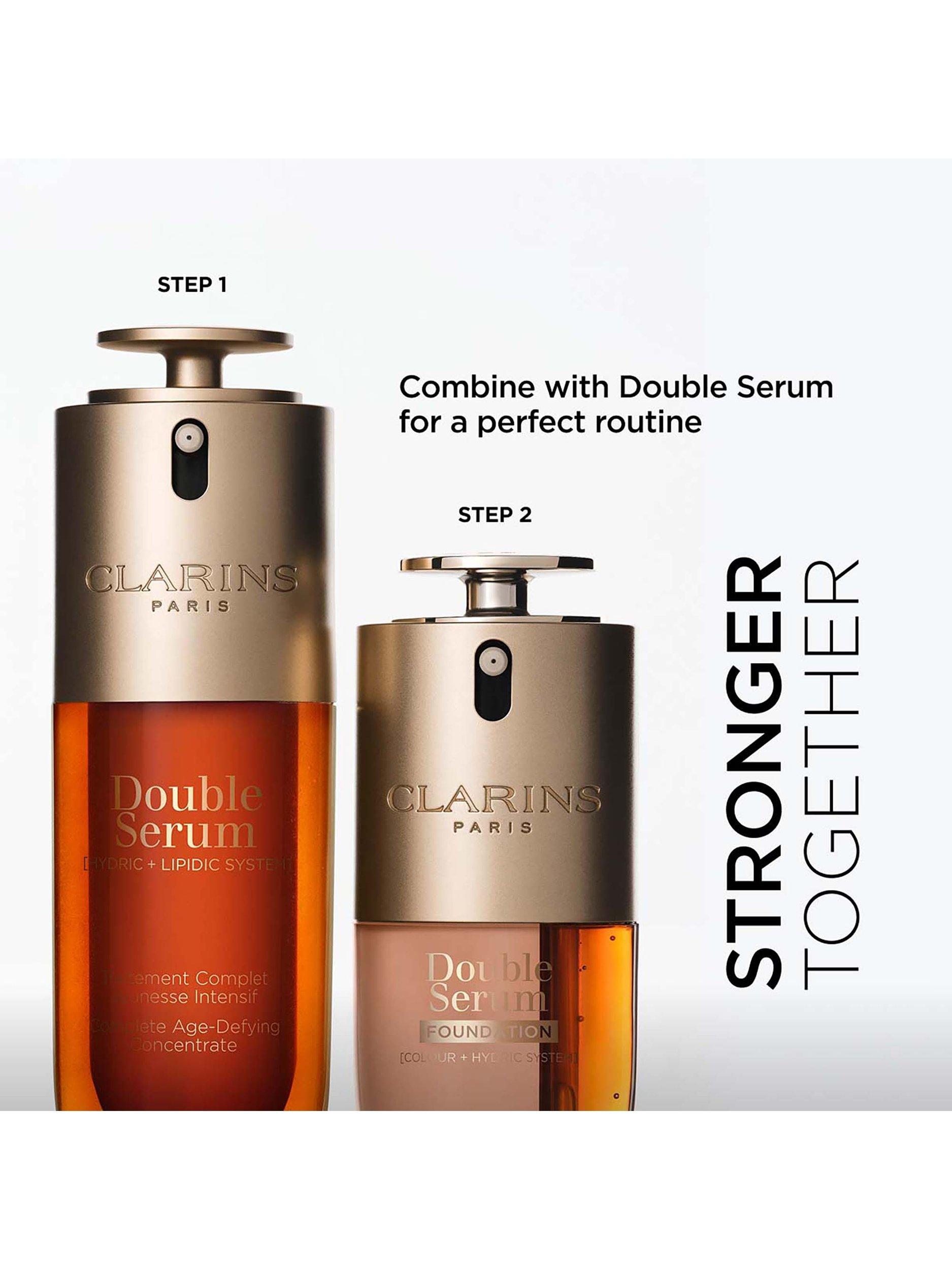 For best results apply your Double Serum and moisturiser and follow with Double Serum Foundation. When used together consumers saw a 36%^ increase in firmness and a 28%^ reduction in wrinkle visibiltiy.
