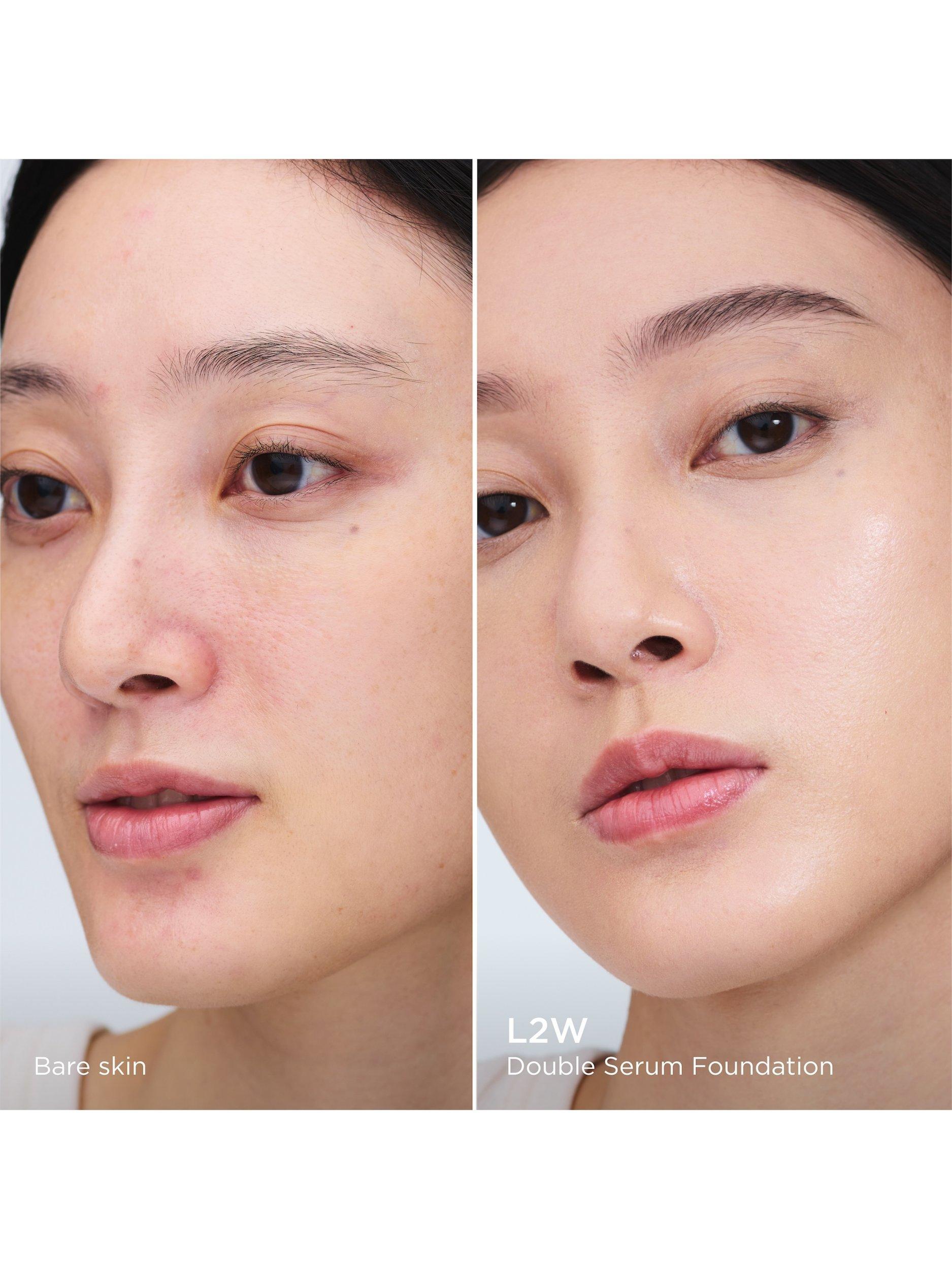 For best results apply your Double Serum and moisturiser and follow with Double Serum Foundation. When used together consumers saw a 36%^ increase in firmness and a 28%^ reduction in wrinkle visibiltiy.