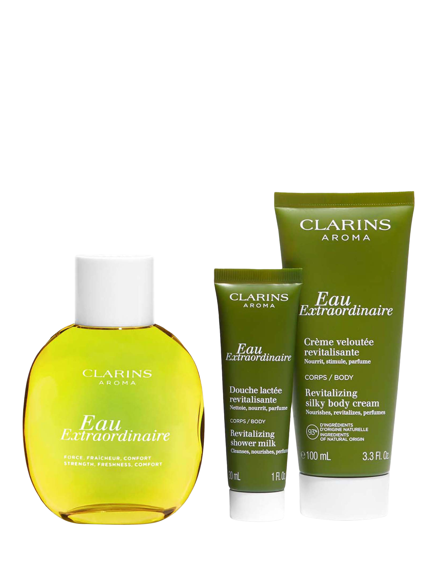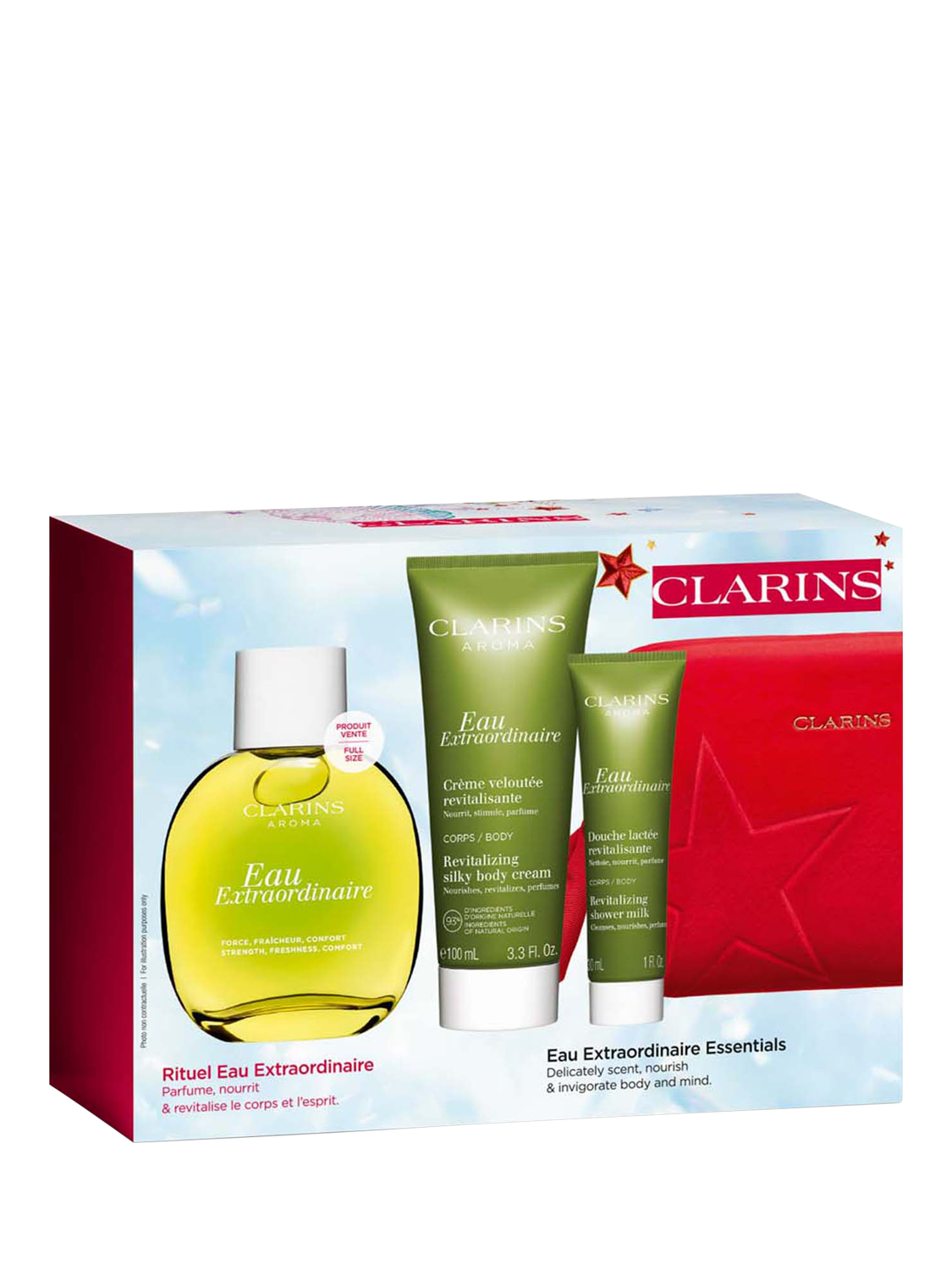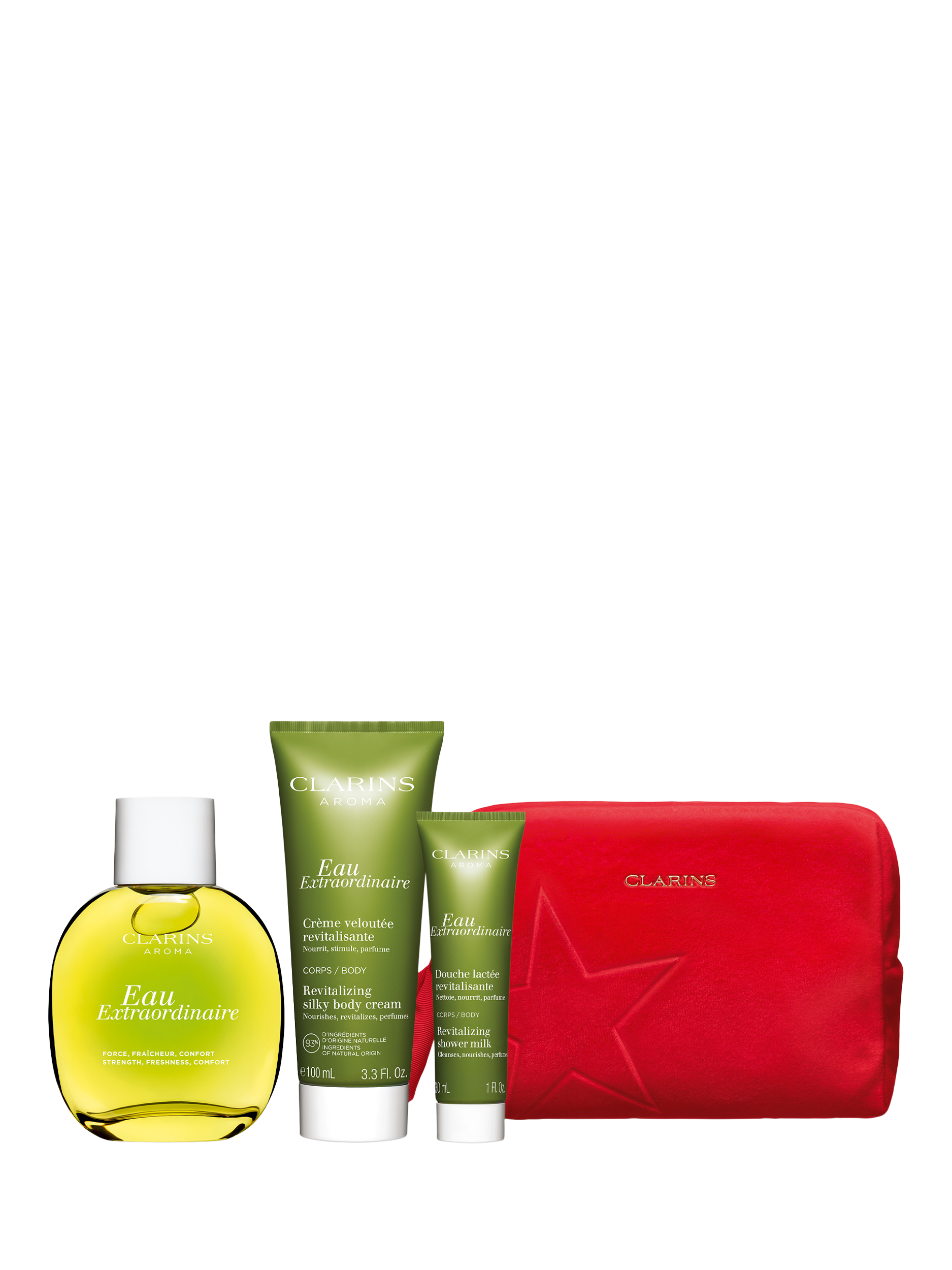 This gift set contains a full-size Eau Extraordinaire, plus Eau Extraordinaire Revitalising Shower Milk and Eau Extraordinaire Revitalising Silky Body Cream, all presented in a beautiful wash bag.