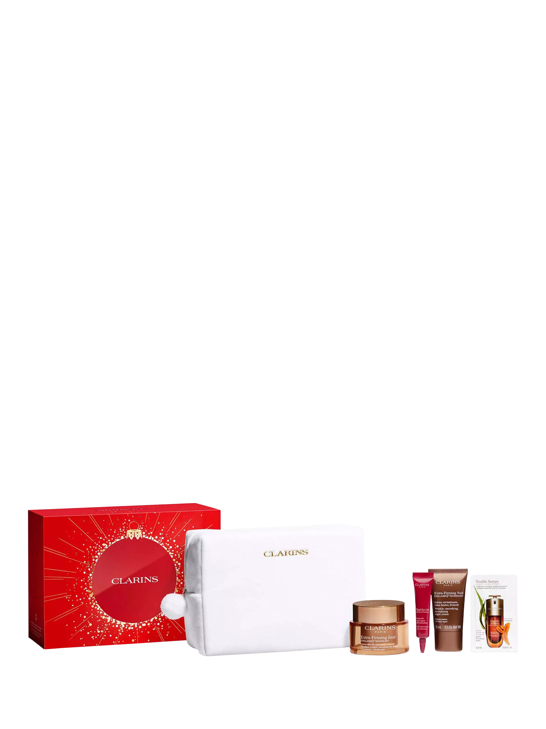 Our Extra-Firming Collection is packed with collagen-boosting ingredients to reveal firm and lifted skin. Featuring a full-size Extra-Firming Day Cream, Extra-Firming Night Cream, and Total Eye Lift to revitalise and visibly sculpt your skin.