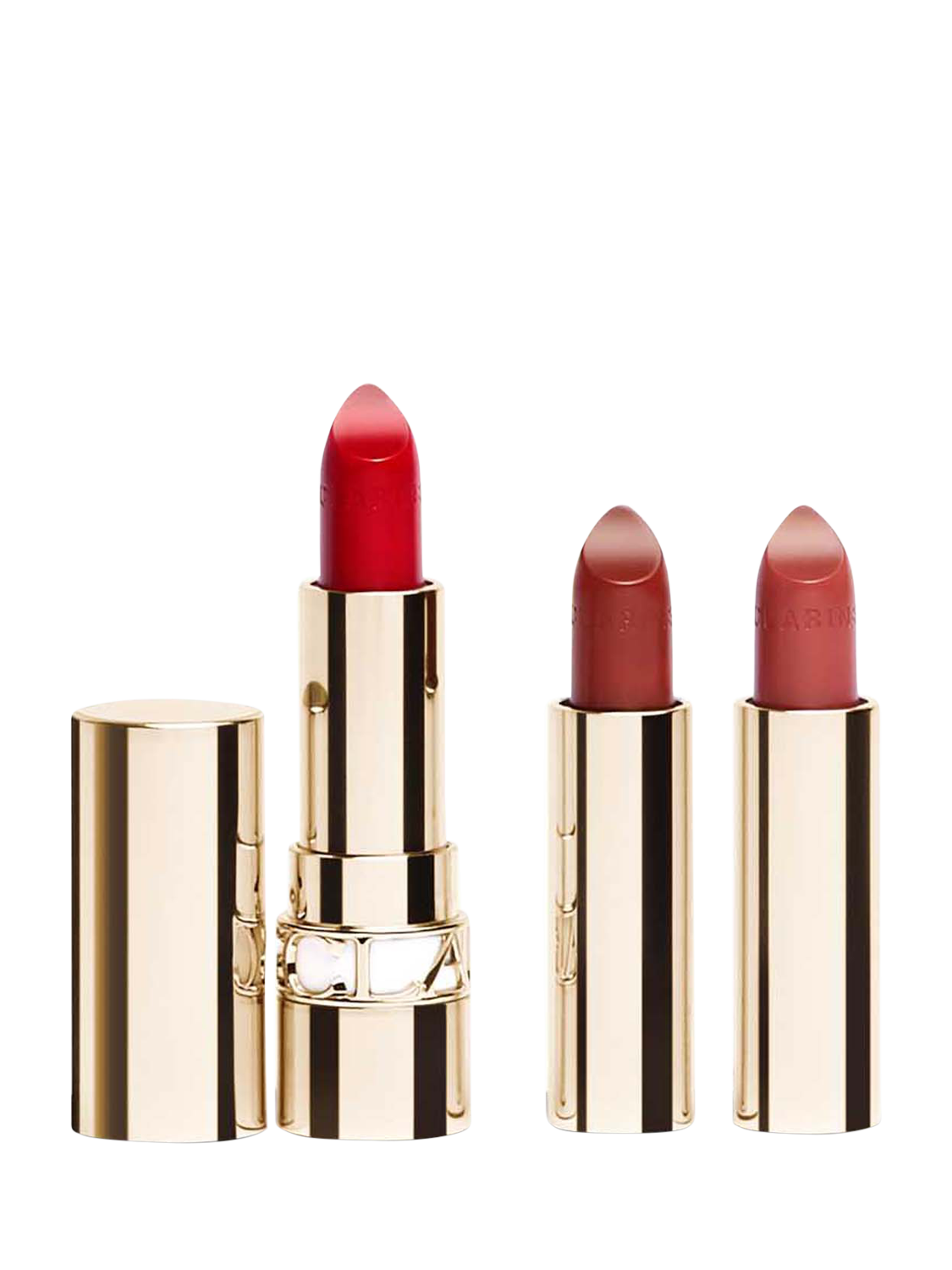 Treat yourself, or a loved one, to the Joli Rouge Collection - the perfect gift for any Clarins fan! This collection contains three full-size Joli Rouge Refill Lipsticks, in shades 742, 737 and 705 with a classic Gold case, so you are ready no matter the occasion. Get yours today!