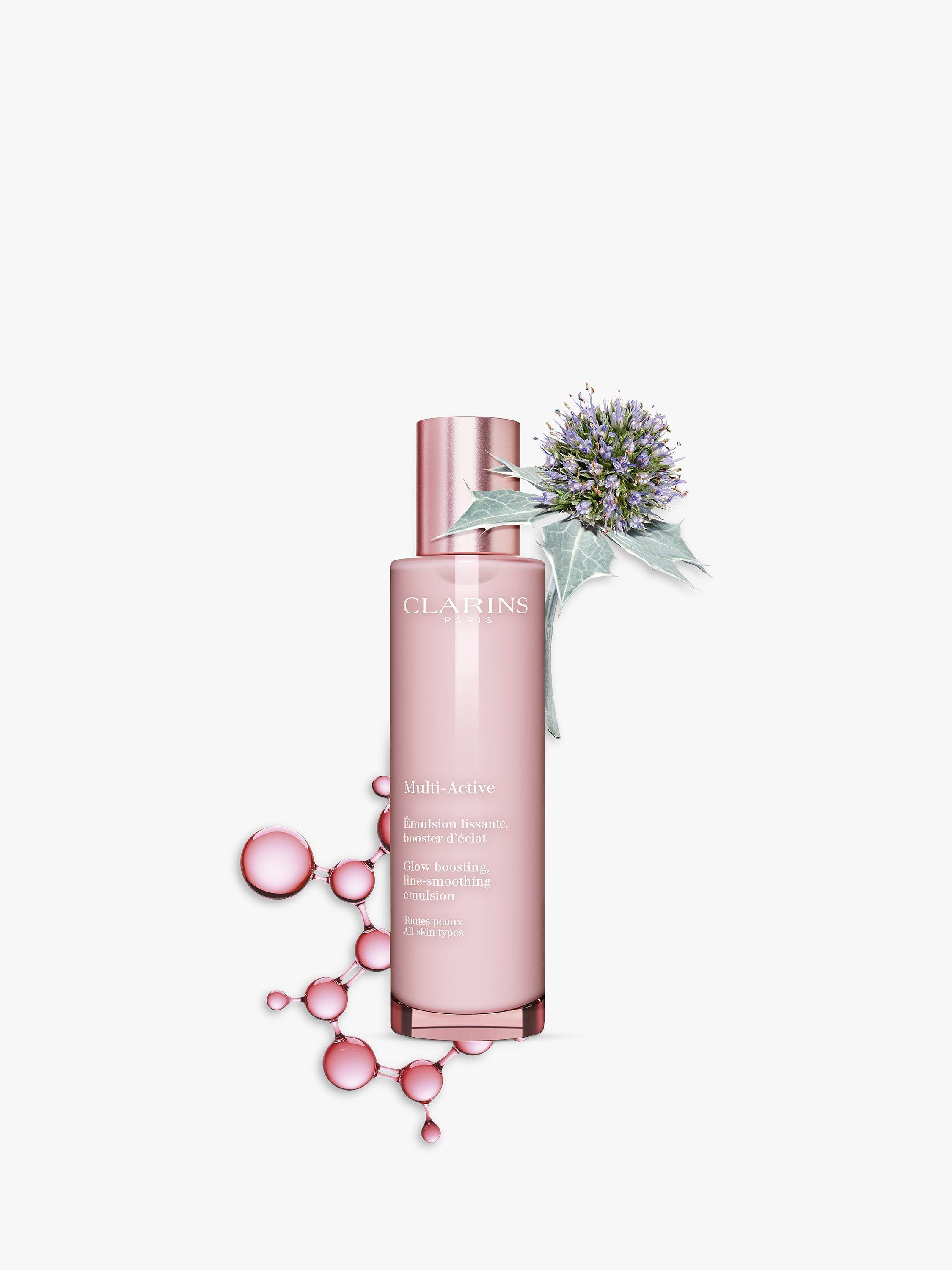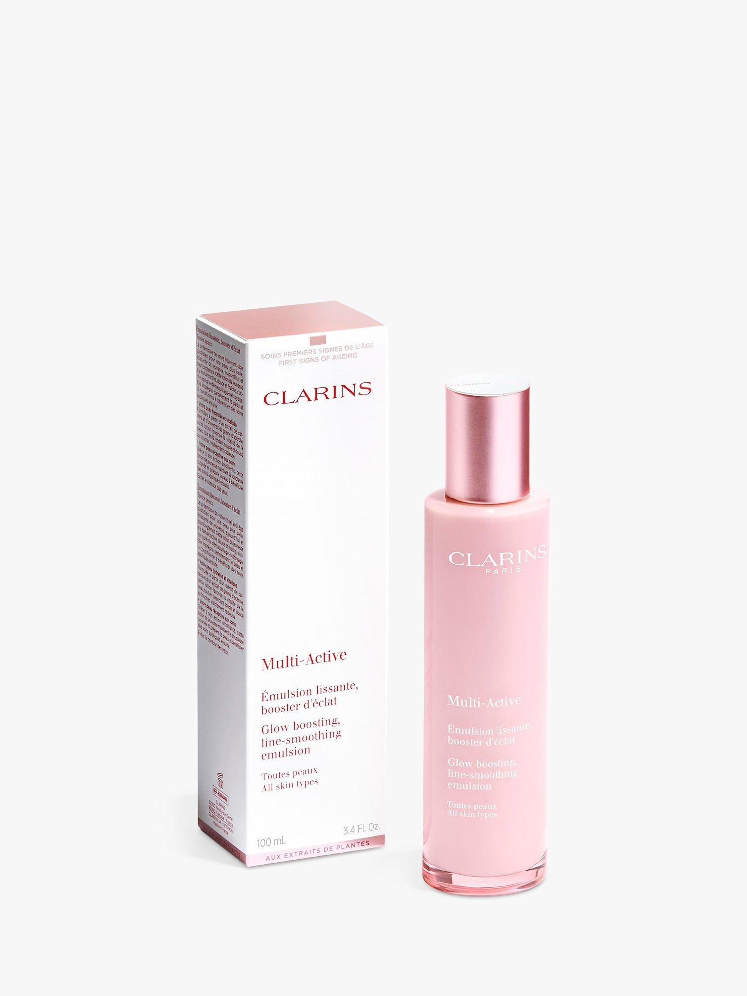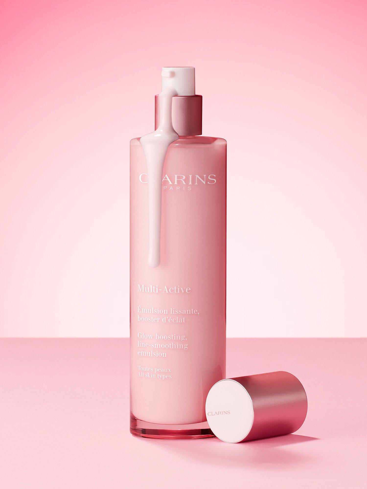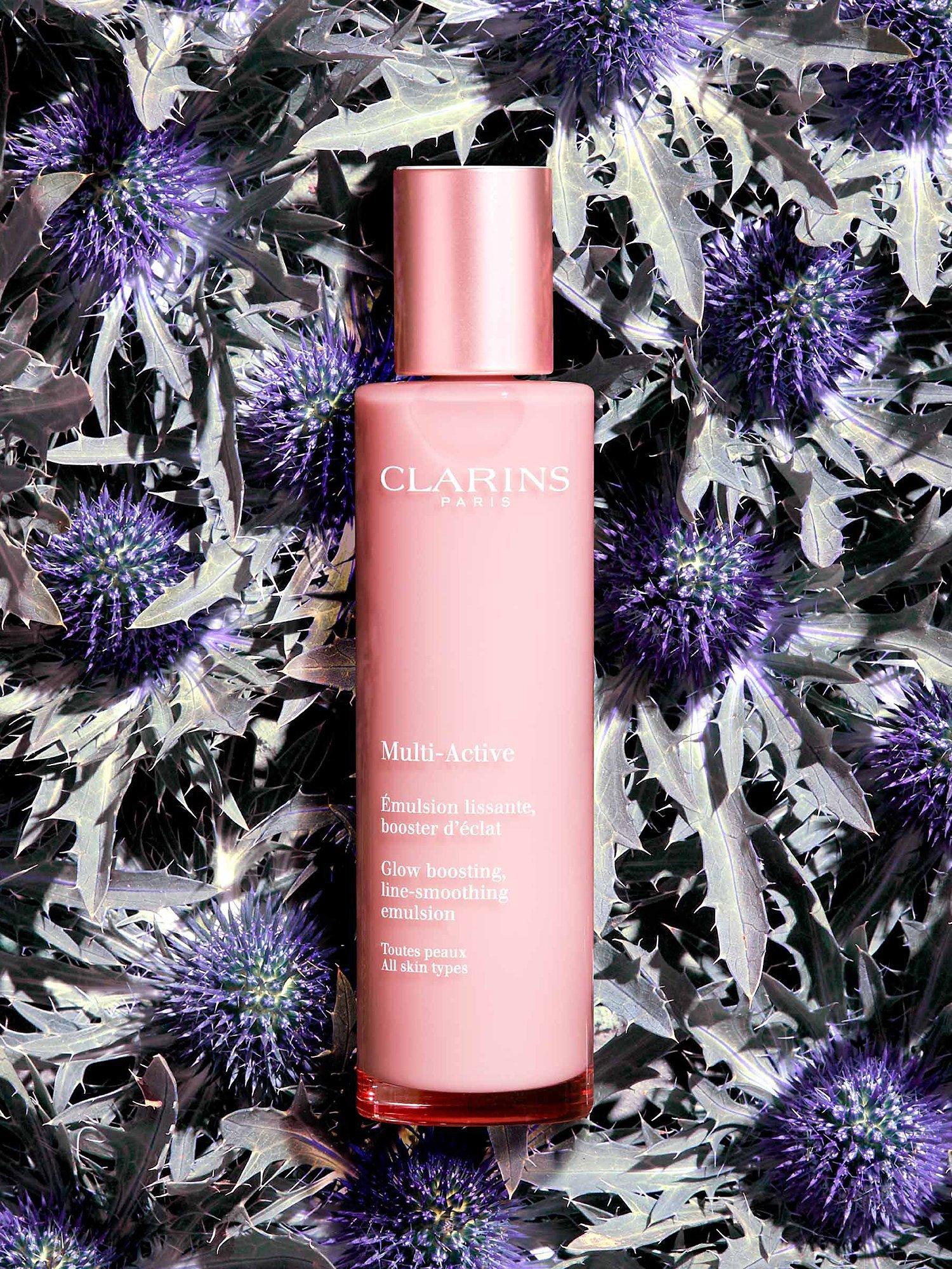 *Clinical typology study commissioned by Clarins on 73 women aged 25 to 40 monitored for 6 months. **Clinical typology study on 41 women aged 35 to 50 after 5 intense days. ***Self-assessment 106 women, 28-day face application Multi-Active Day and Night All skin types. Reduction of signs visibility on a structured scale. ****Self-assessment 106 women, 28-day face application Multi-Active Day and Night All skin types. Reduction of signs visibility on a structured scale. *****Index calculated from 7 stress-related items, self-assessment, France, 100 women from the first application of multi-active Emulsion.