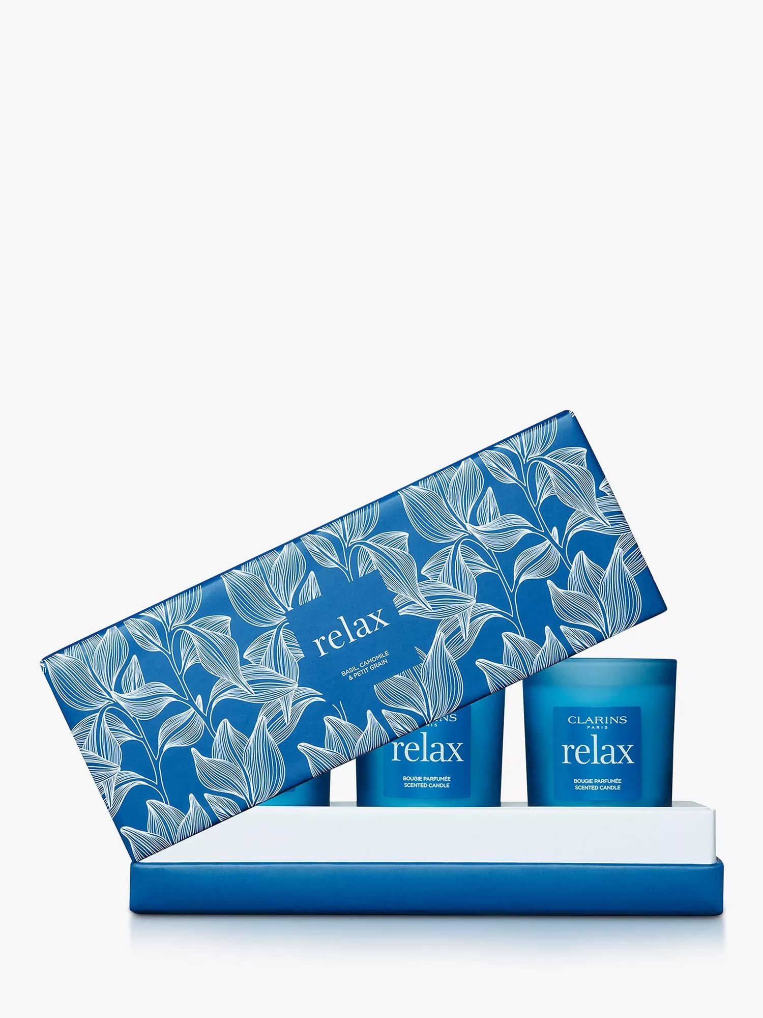 A limited-edition trio of Clarins mini candles designed around Clarins Relax range, a collection of products to relax and de-stress the senses.