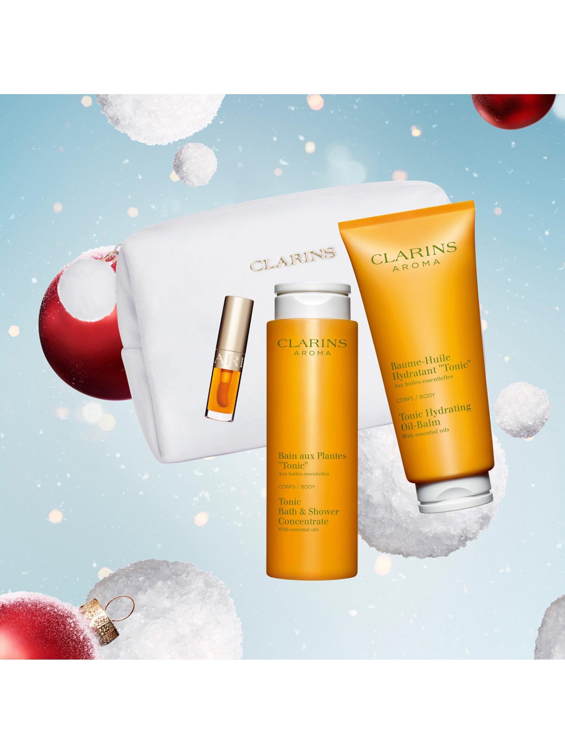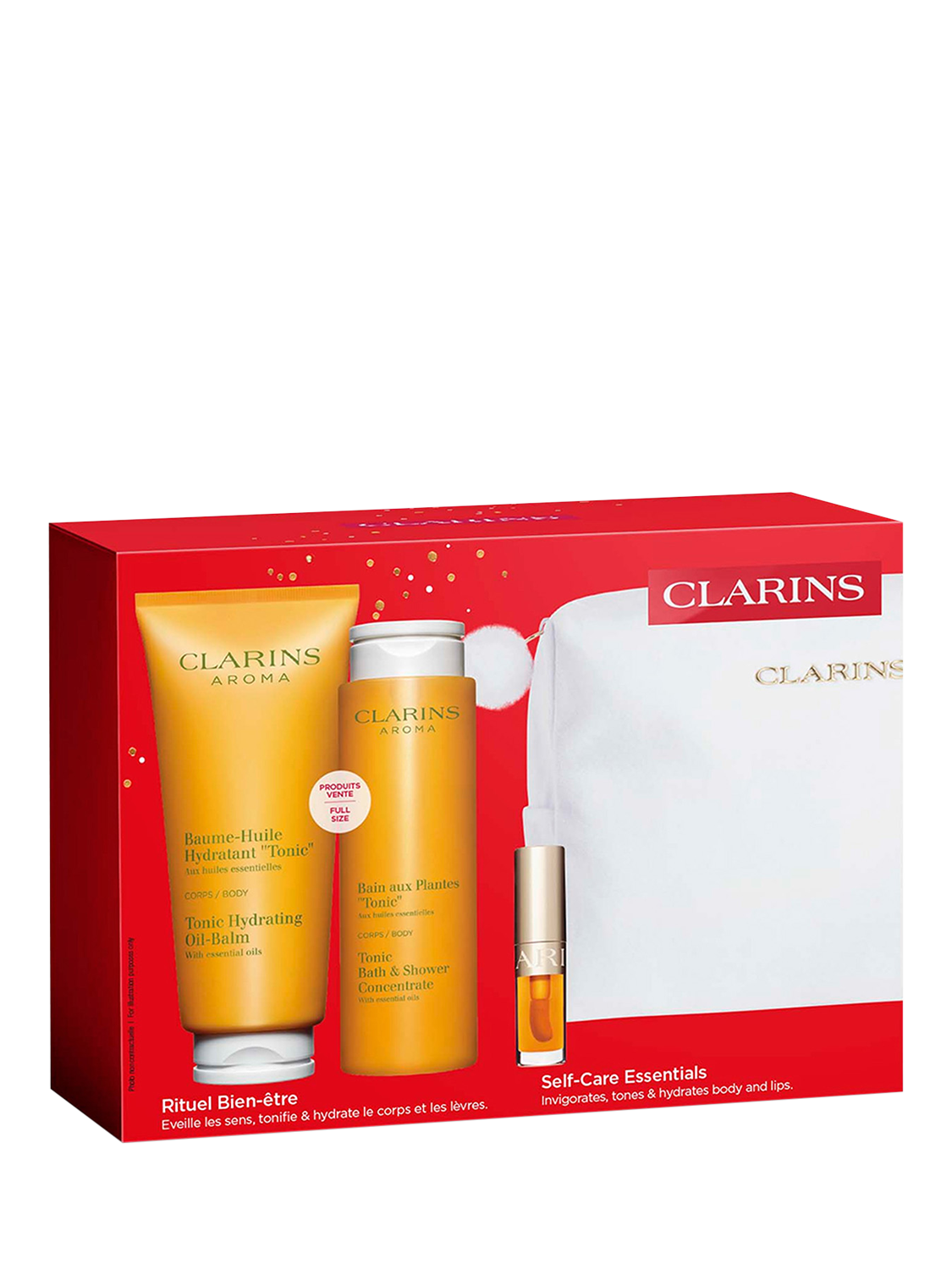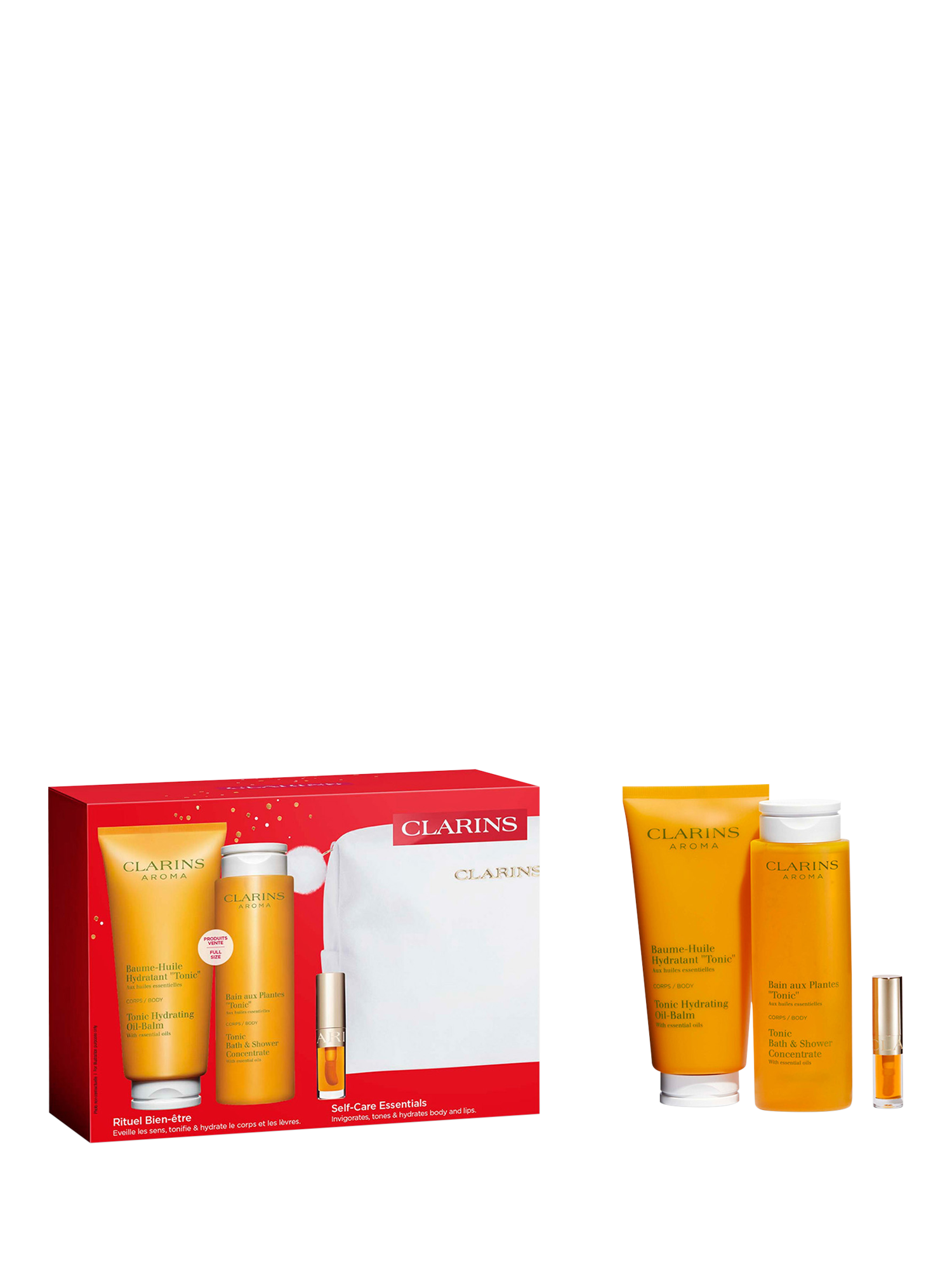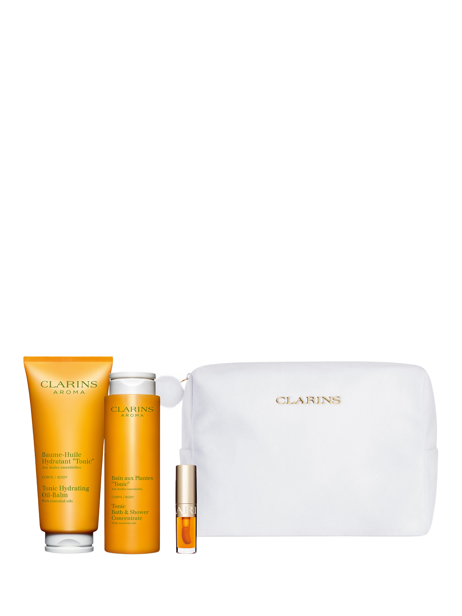 The Tonic Ritual Collection nourishes and tones your skin with indulgent essential oils; featuring a full-size Tonic Hydrating Oil-Balm, a full-size Tonic Bath & Shower Concentrate, and a mini Lip Comfort Oil in the shade 01 Honey.