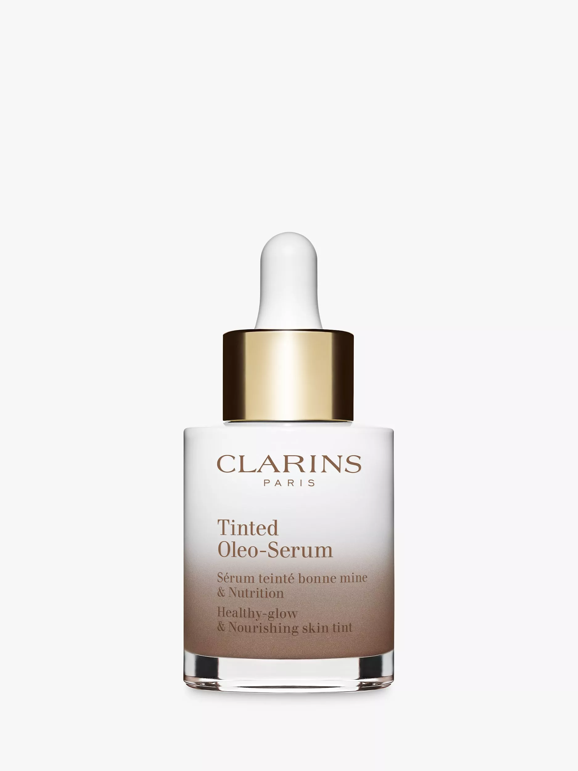 Introducing a new innovation from Clarins: Tinted Oleo-Serum, a skin tint that cares for skin like a serum. This buildable ultra-fluid complexion perfector provides a natural satin finish and contains mineral pigments to instantly boost glow.