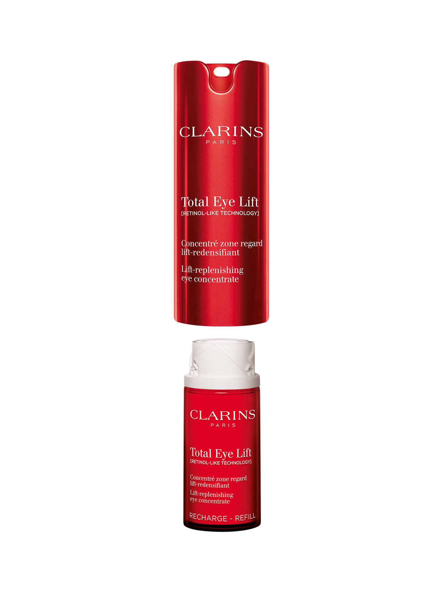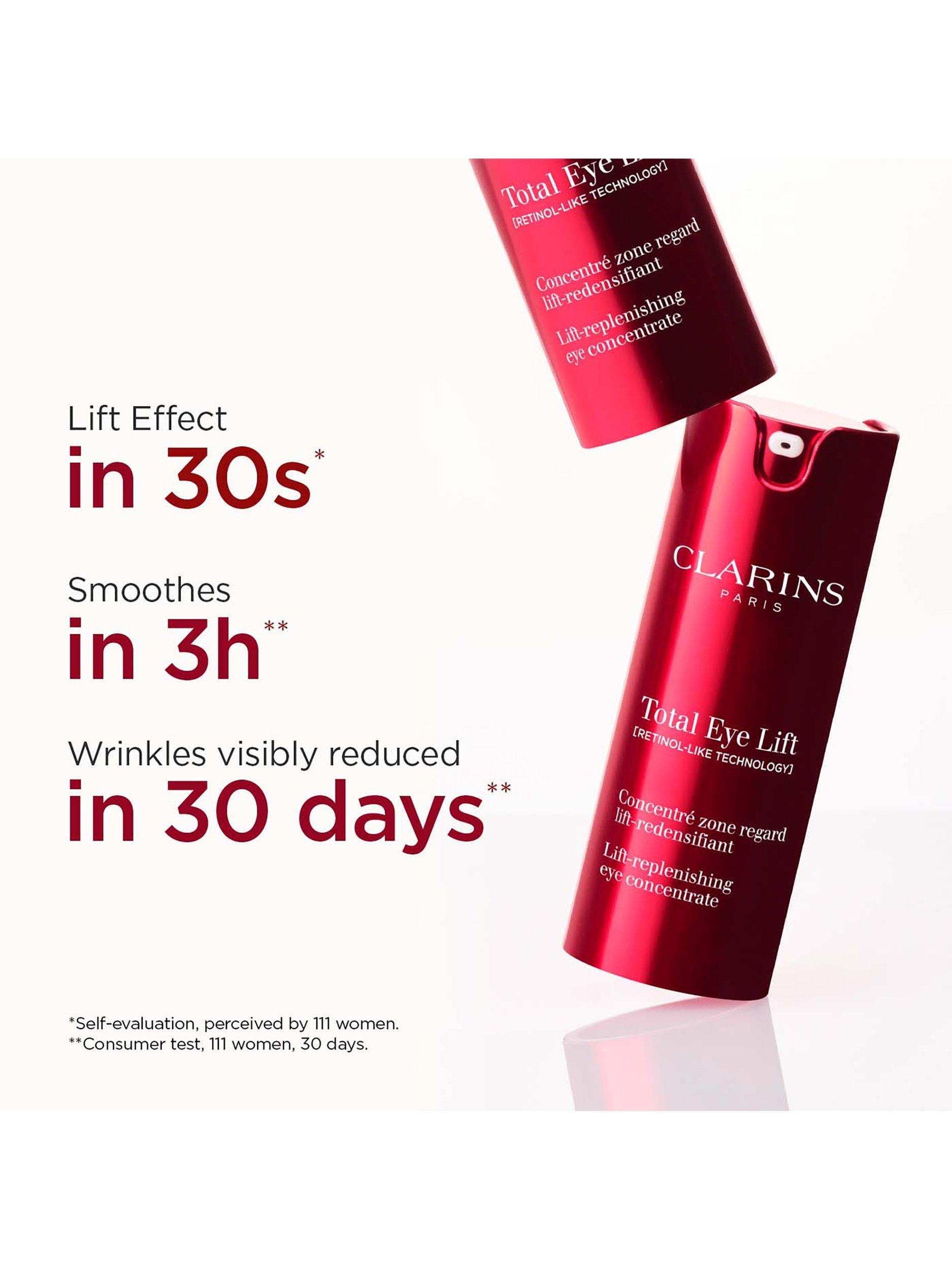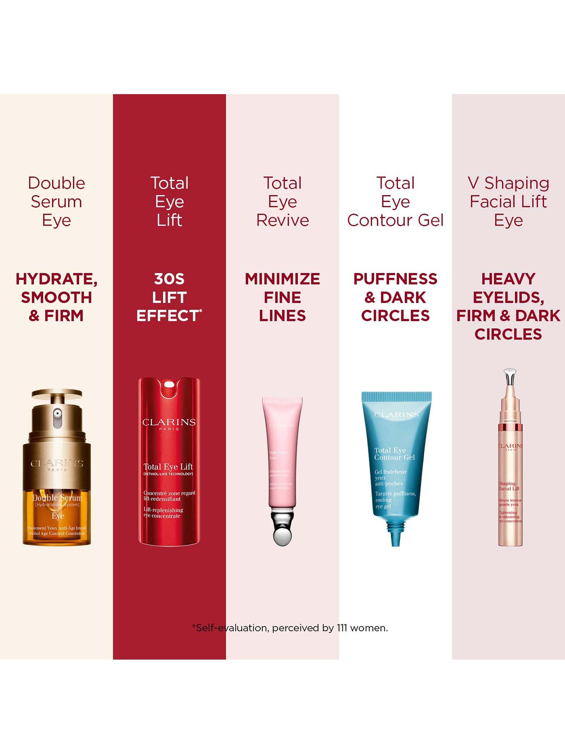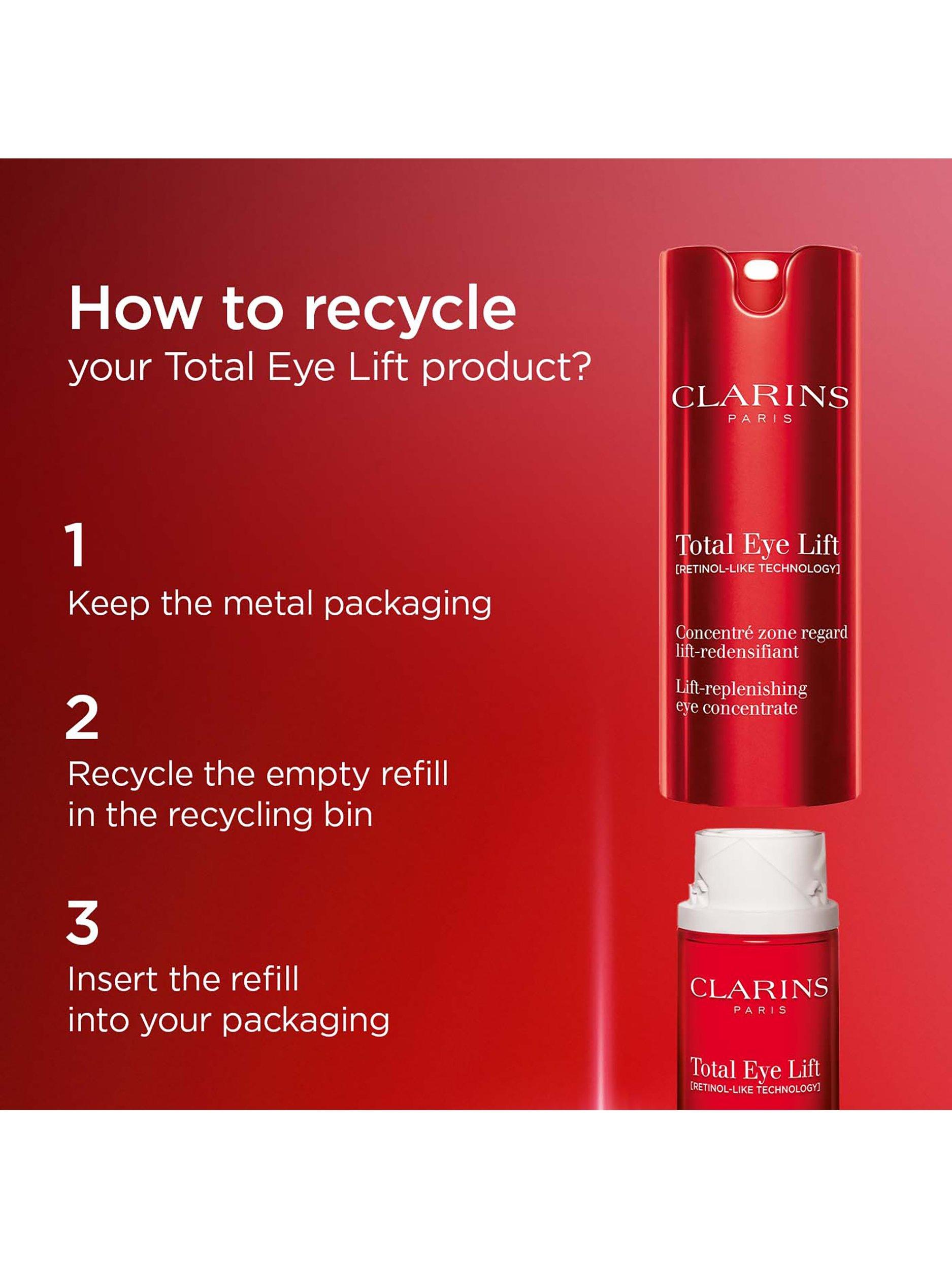 The complete eye lifting serum with Clarins' 'LIFT' expertise, specifically designed to enhance the eye area. Refillable. Please note, the refill is only compatible with new Total Eye Lift and cannot be used separately.