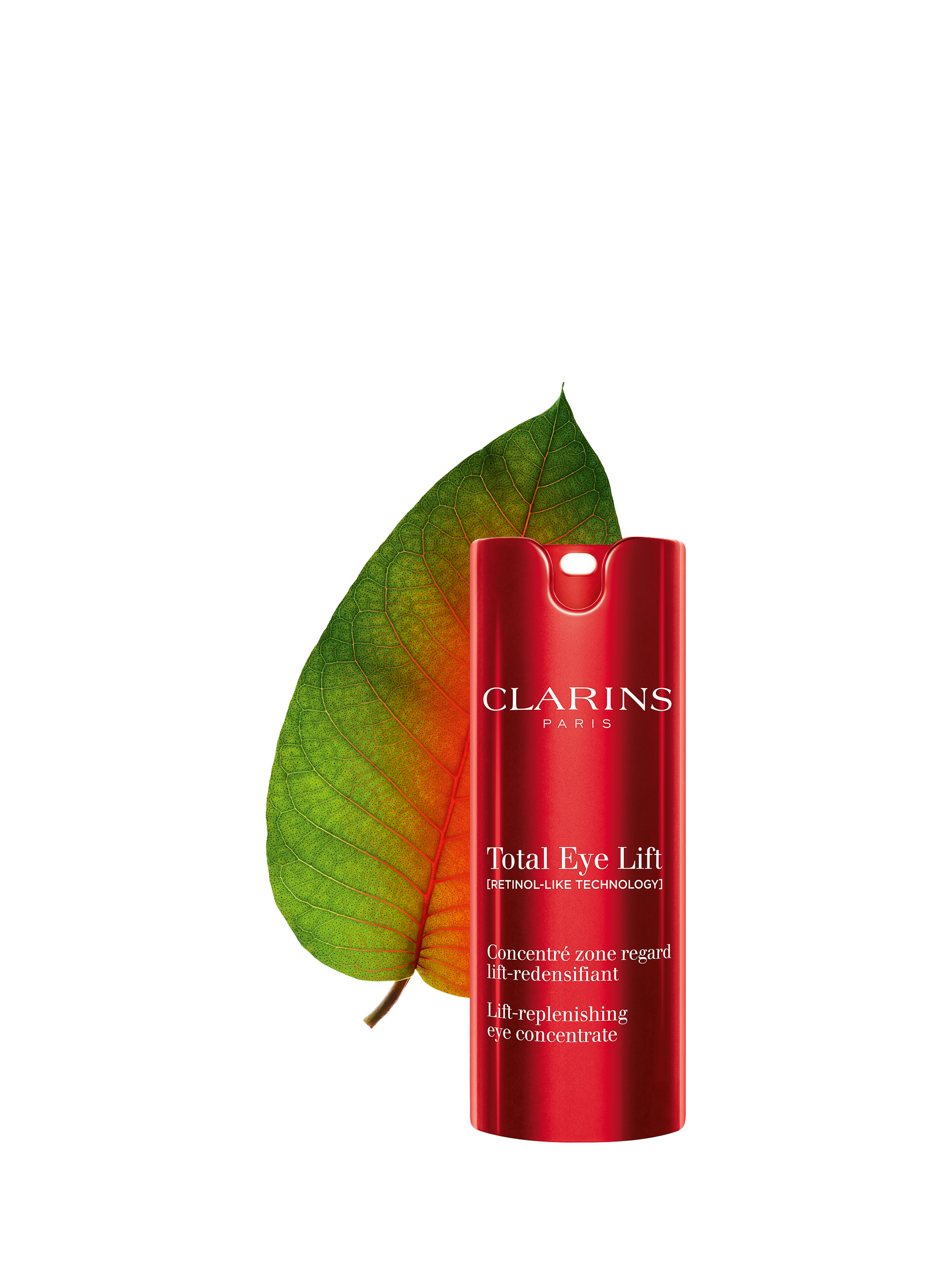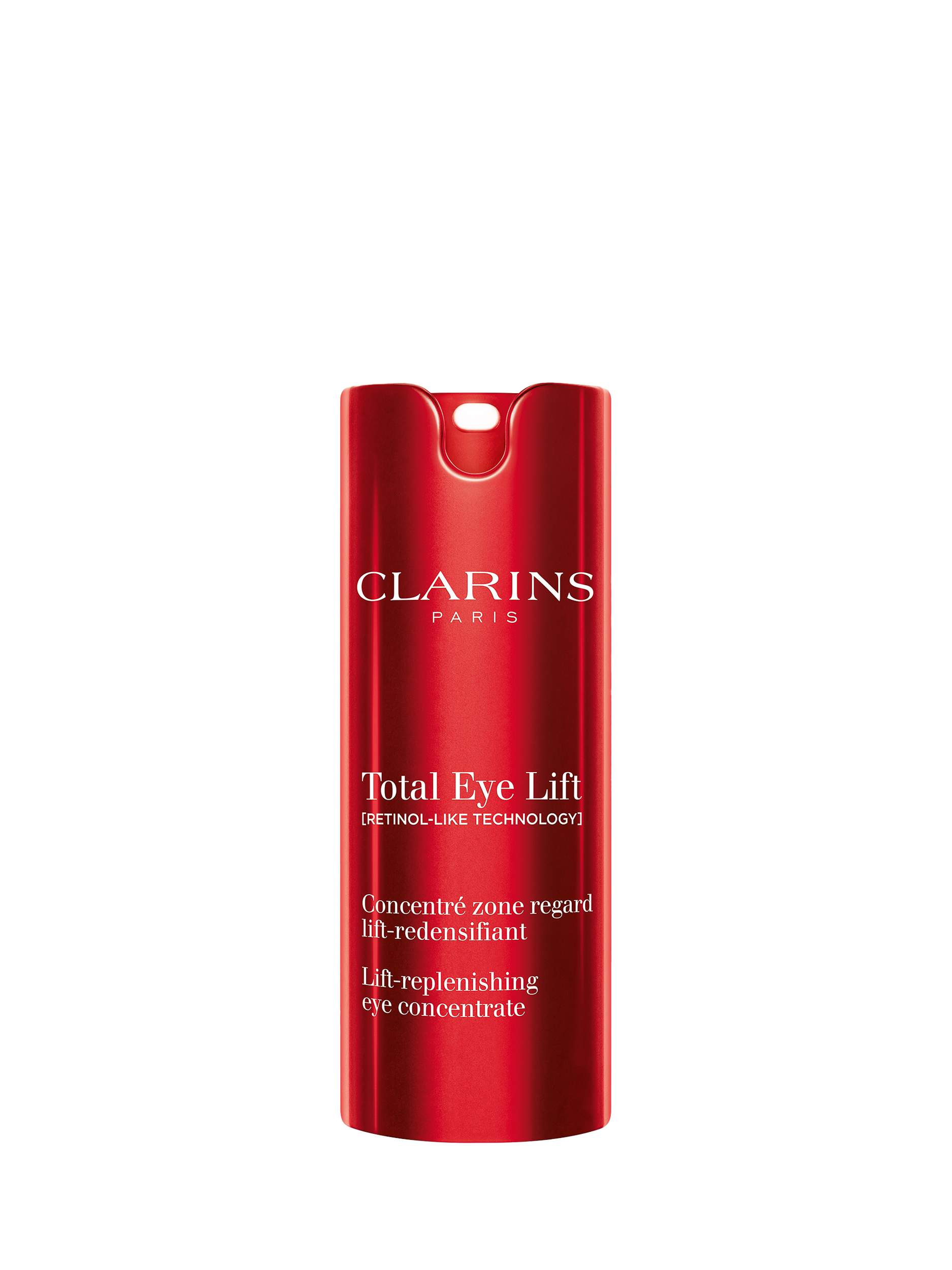 The iconic Clarins Total Eye Lift serum has been developed with Clarins' plant-powered expertise. It's lightweight, silky yet luxurious texture melts into skin for an instant effect, leaving your gaze visibly refreshed, rested, and lifted. Our eye lift serum is your all-in-one solution for younger-looking eyes, working from brow to under-eye in a single swipe, restoring firmness and radiance over time, without heaviness or irritation. Formulated with: