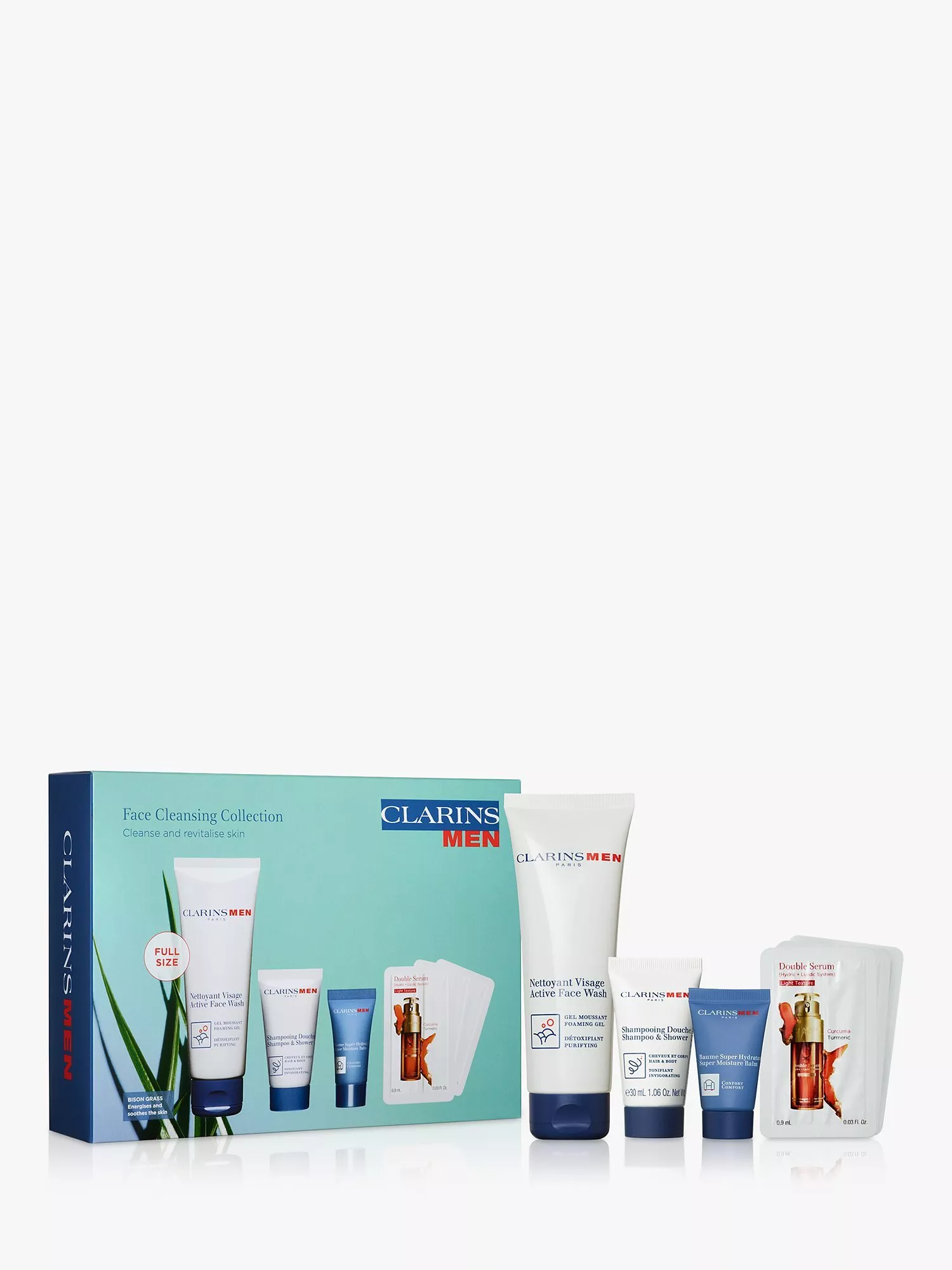 Discover the ClarinsMen Face Cleansing Collection - all he needs for cleansed and revitalised skin, in a 4-piece set featuring a full-size Active Face Wash.