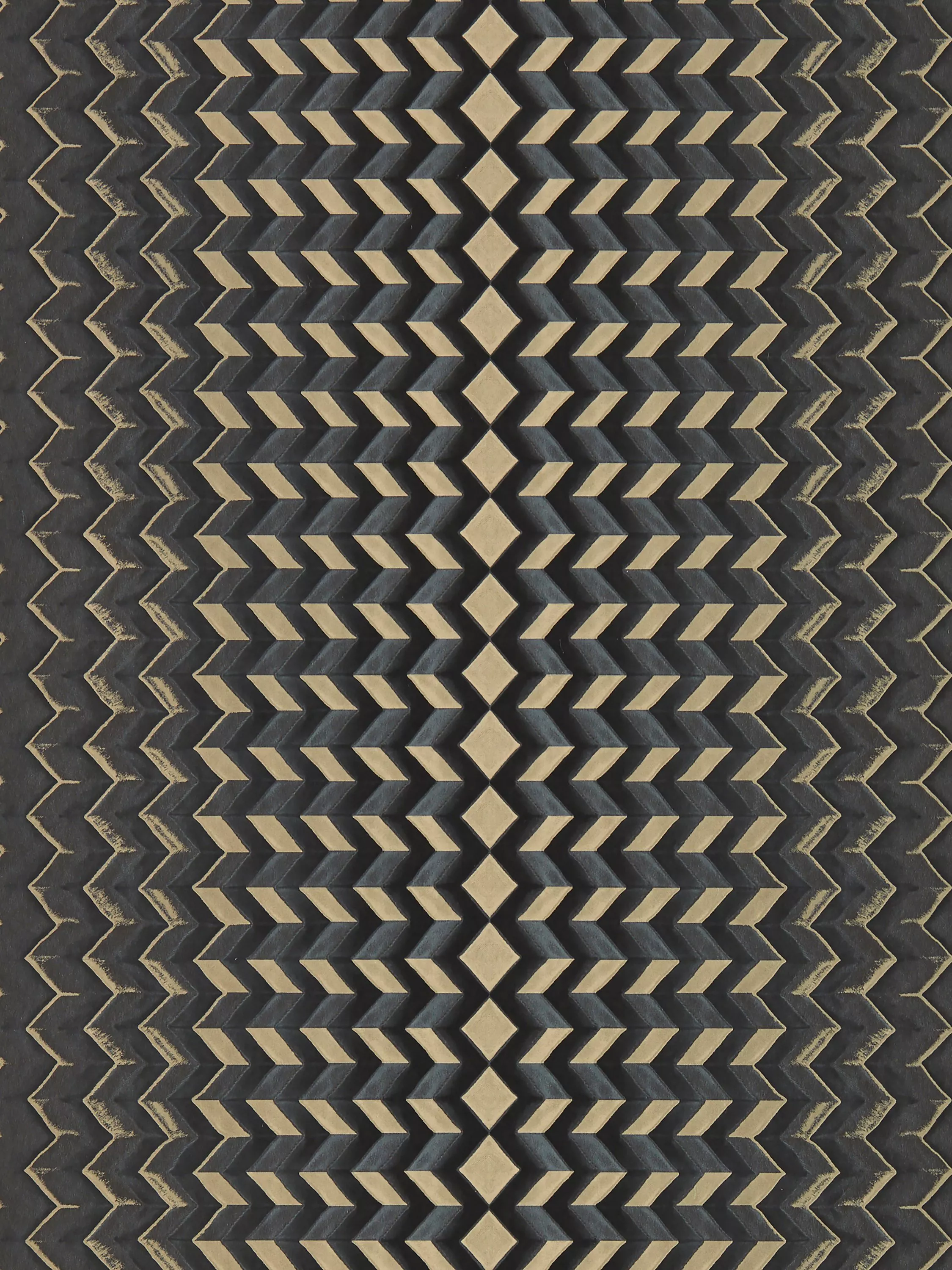 Fragment shows an angular geometric chevron stripe featuring a linear metallic.