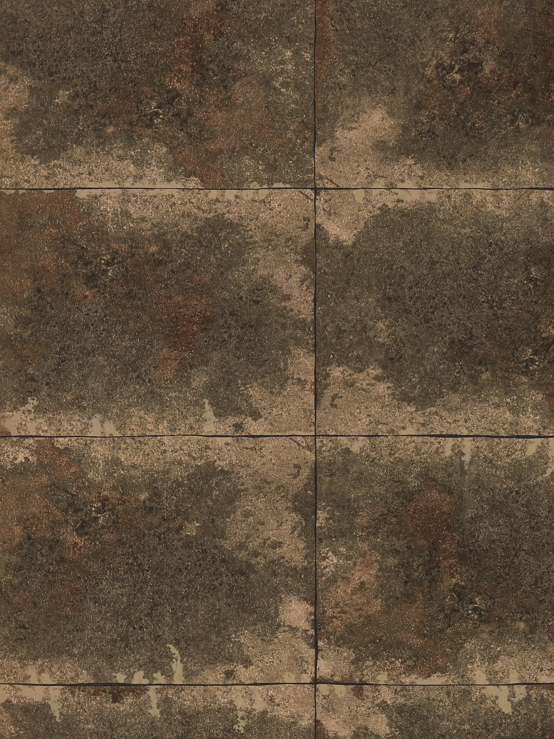 Igneous is a truly industrial print for wallpaper design. Edgy and contemporary, distressed metal panels come together on a metallic impression printed texture reminiscent of steel sheets or antiqued mirrors to give an authentic patina in wallpaper form.