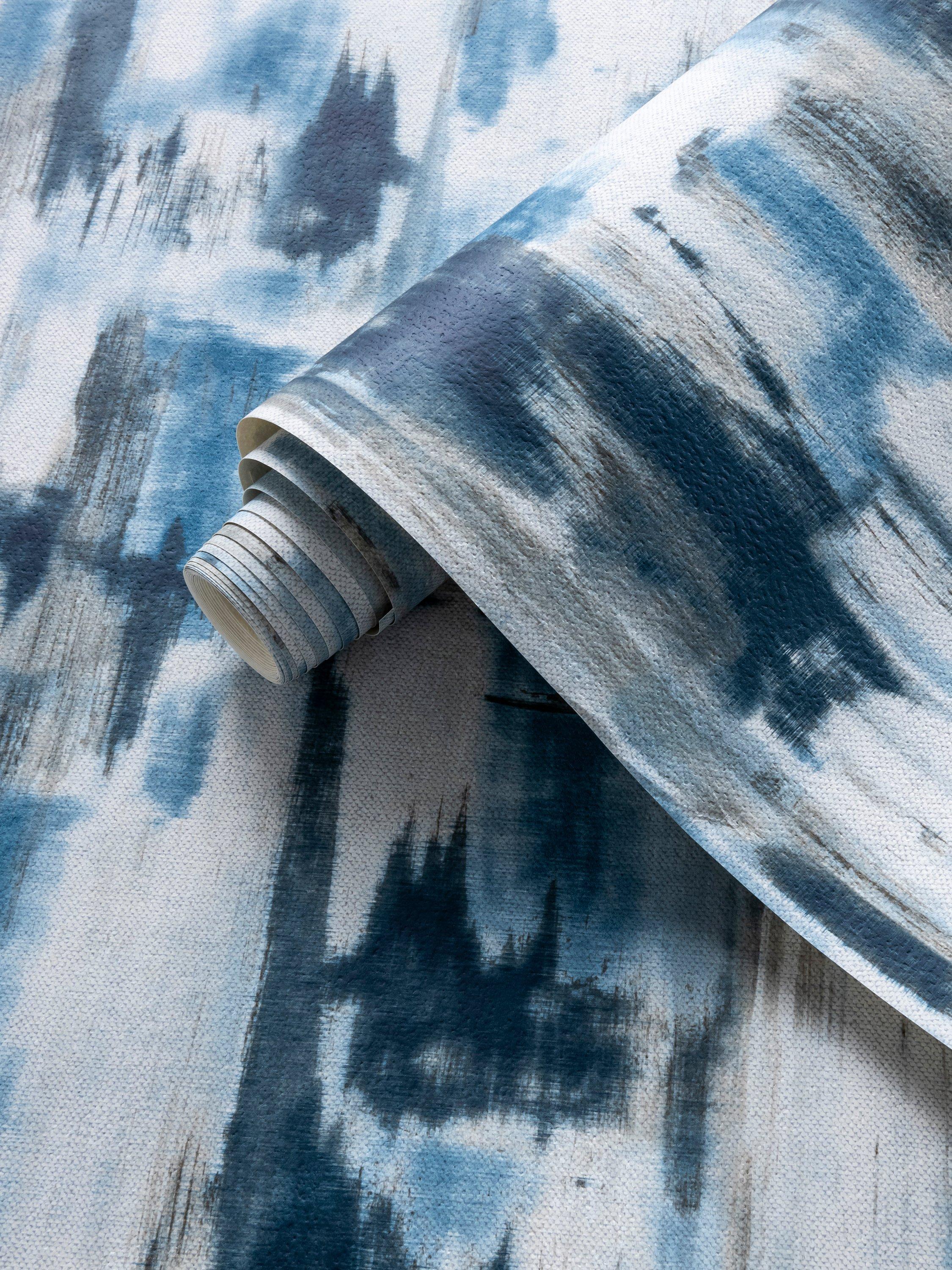 Lagna is a distressed stripe wallpaper that's gently stippled for added texture. Layers of expressive paint and inky brushstrokes combine to create this design's arty appearance.