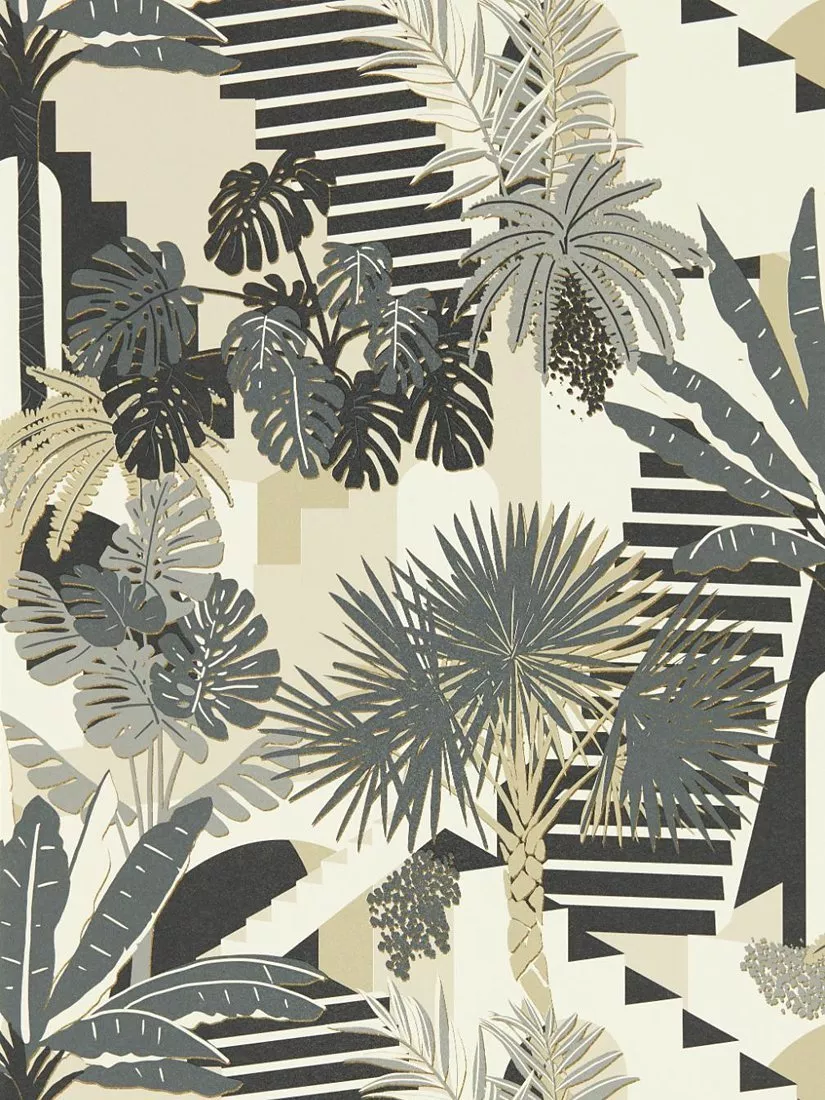 With its name meaning town/beach in Kenyan, Malindi takes the glamour and retro artistry of a coastal LA rooftop and accentuates its beauty with lush greenery. Contemporary tropical comfort and repose meets the abundant nature of palms with subtle metallic highlights in the shadow of shapes, giving this design a modern finish.