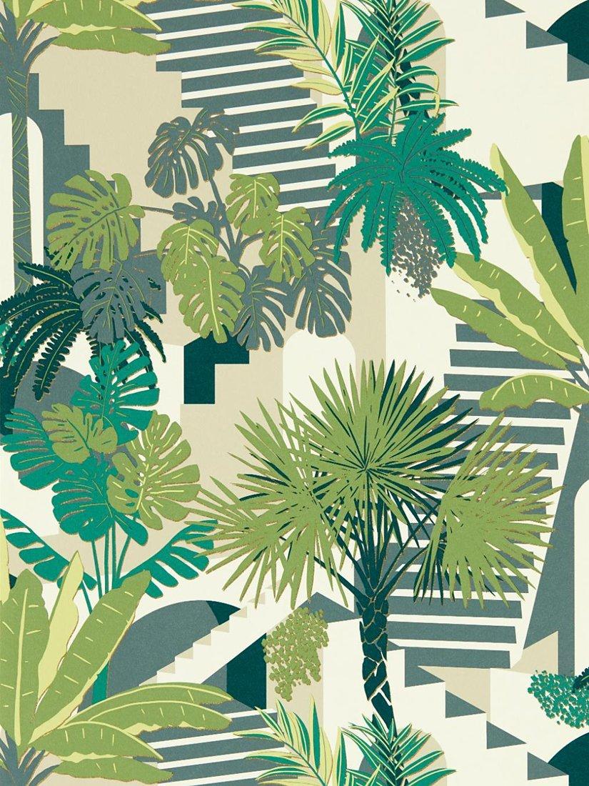 With its name meaning town/beach in Kenyan, Malindi takes the glamour and retro artistry of a coastal LA rooftop and accentuates its beauty with lush greenery. Contemporary tropical comfort and repose meets the abundant nature of palms with subtle metallic highlights in the shadow of shapes, giving this design a modern finish.