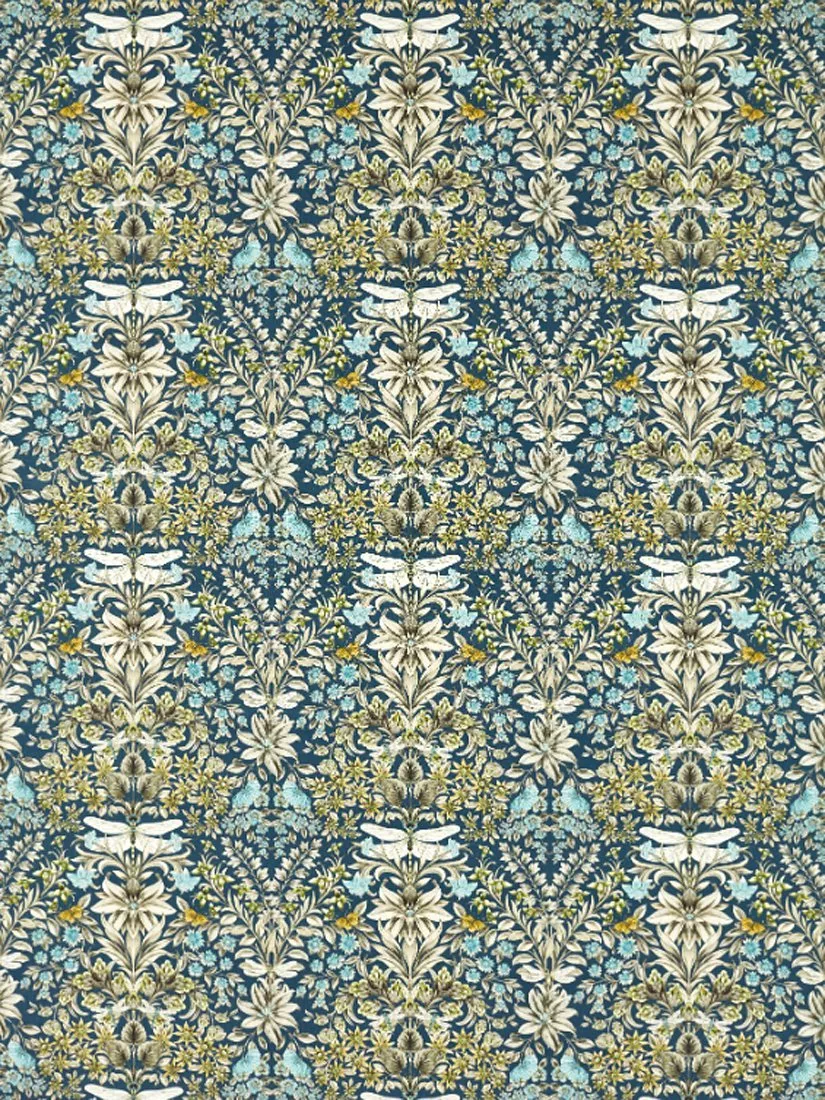 Mirabell is a feature print design, a bold kaleidoscope of nature's most visually engaging patterns. Dragonflies meet luscious flora for a botanical feel. The rustic base cloth of light linen adds to the Arts and Crafts feel, aptly named after the garden of the famous grand palace in Salzburg.