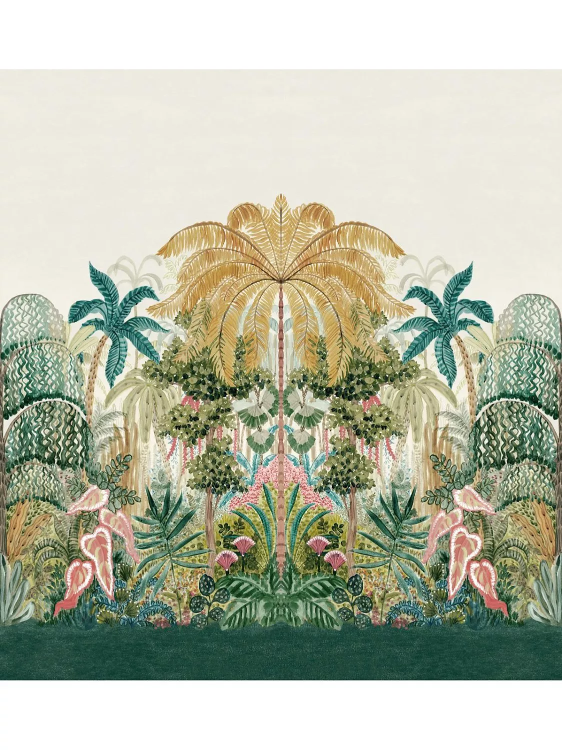 A wonderfully energetic wide-width panel wallpaper, Mombasa radiates fun in its tropical display of artistic revelry. A reflection of lush jungle vegetation, this hand-painted design takes you on a journey of modern rediscovery of the white sandy beaches that line the Indian Ocean.