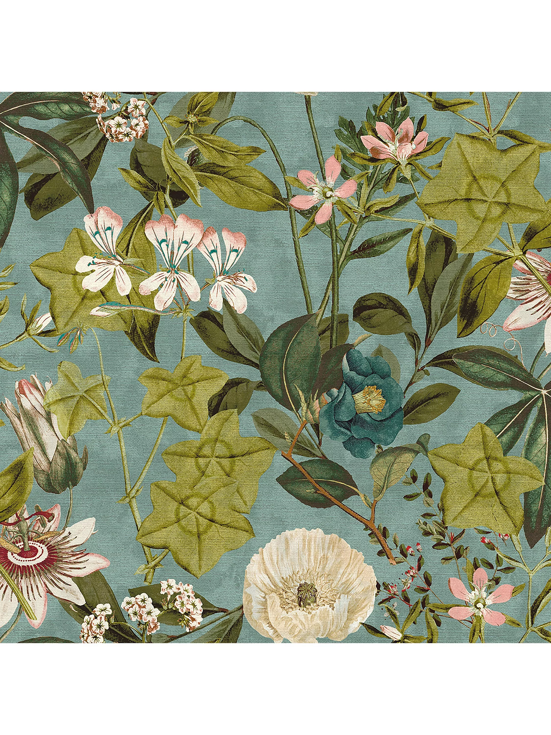 An iconic feature design for Clarke & Clarke from the first Exotica collection, passionflowers in a trail come to life.