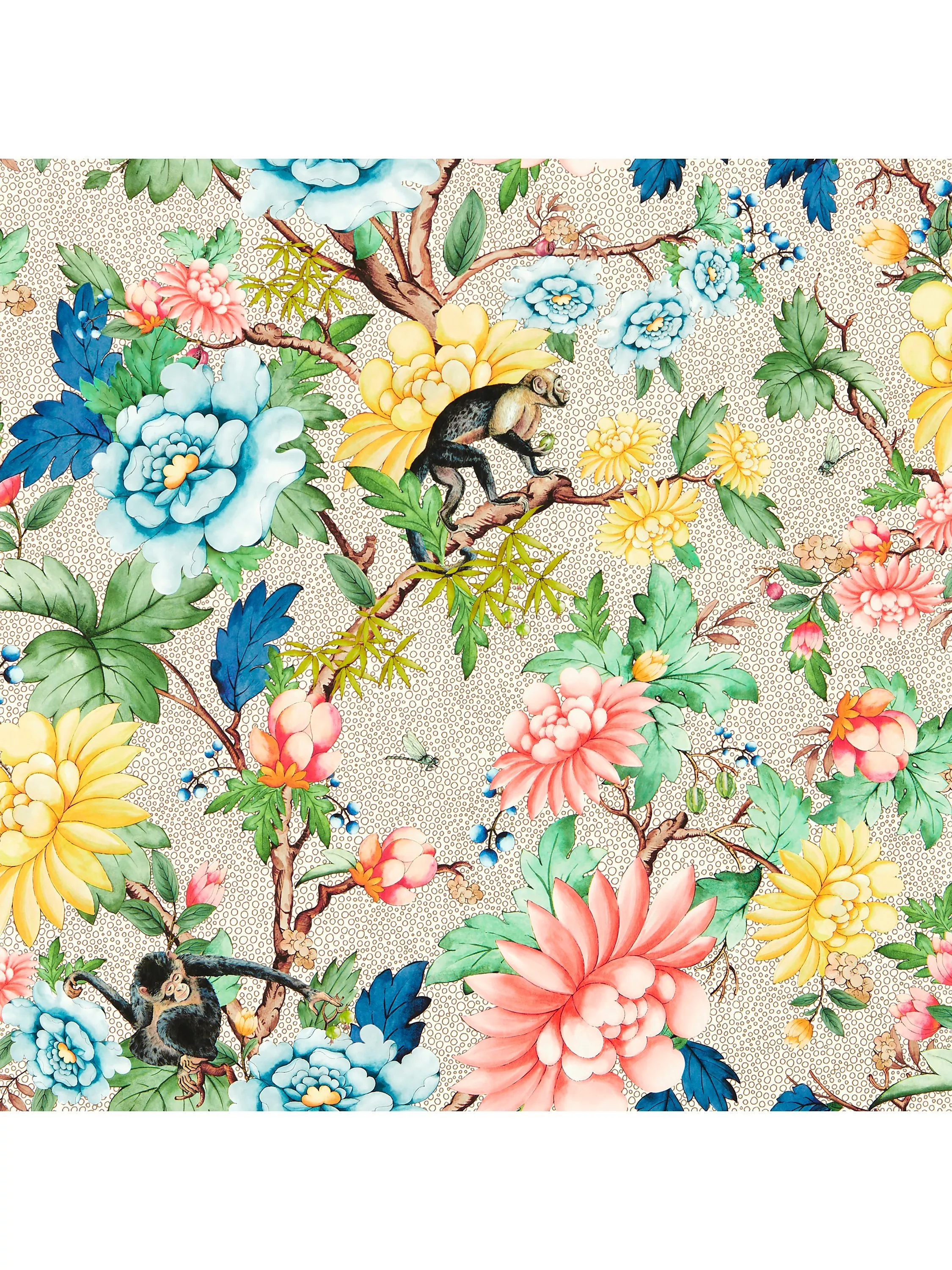 Take a voyage of discovery through Sapphire Garden and make friends with native Rhesus Macaques. Inspired by the Grand Tour from Europe through Asia, this wallpaper is heavily influenced by Wedgwood's archival patterns.