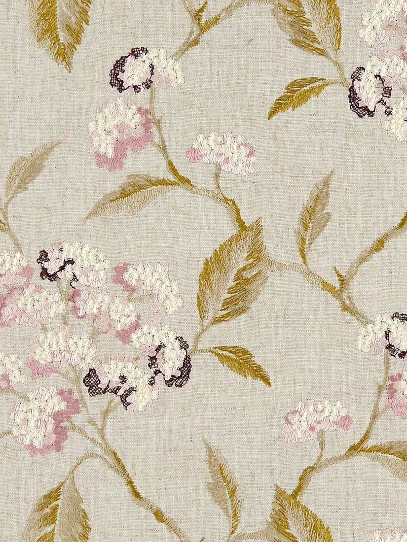 Inspired by the English countryside Summerby features embroidered flowers and leaves.