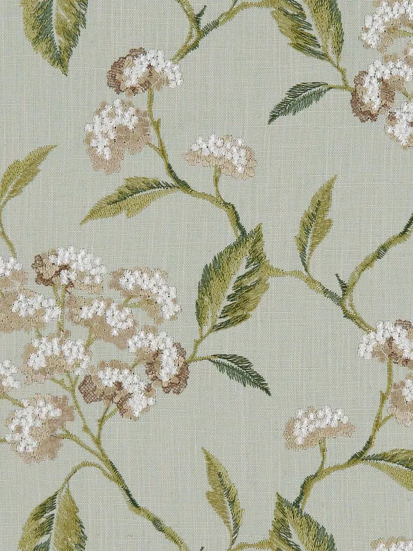 Inspired by the English countryside Summerby features embroidered flowers and leaves.