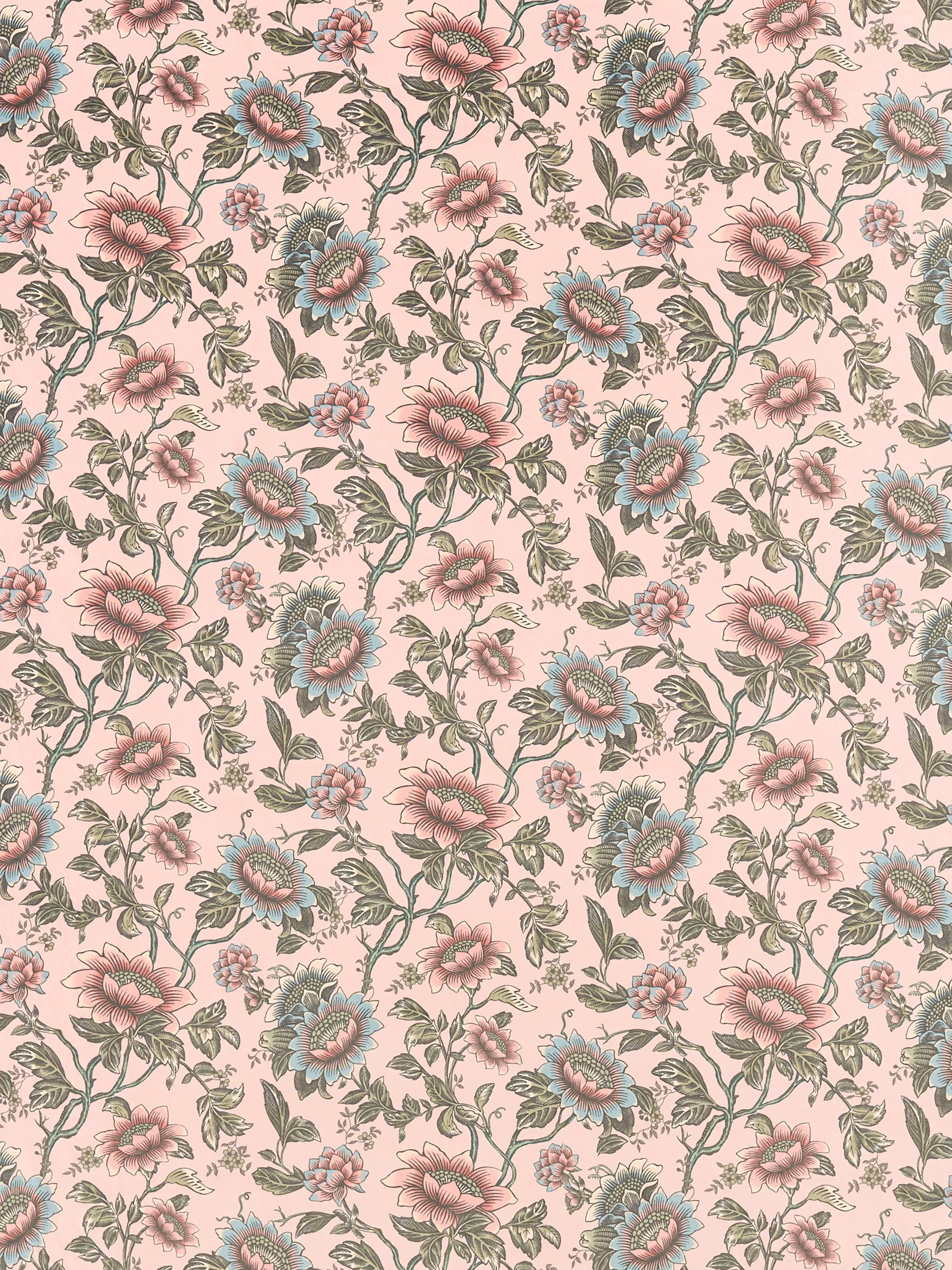 Inspired by Xiaolan, the 'City of Chrysanthemums' in China's Guangdong province, Tonquin features bold, oversized Chrysanthemum blooms. The stylised florals and delicately drawn foliage are printed here on velvet, but the same design is also available on a linen ground or embroidered cloth.