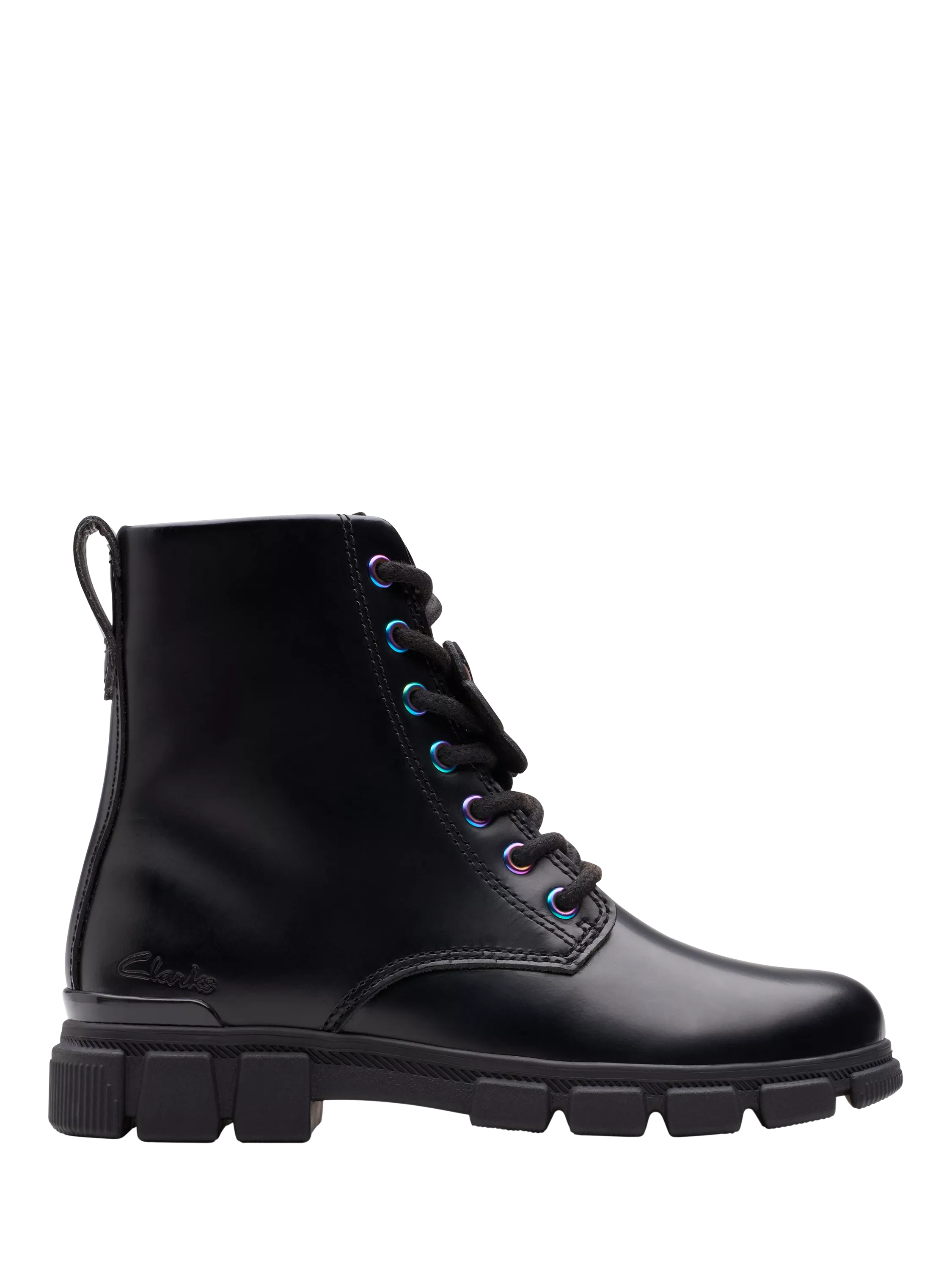 ClarksKids' Evyn Top Leather Lace-Up Boots, Black