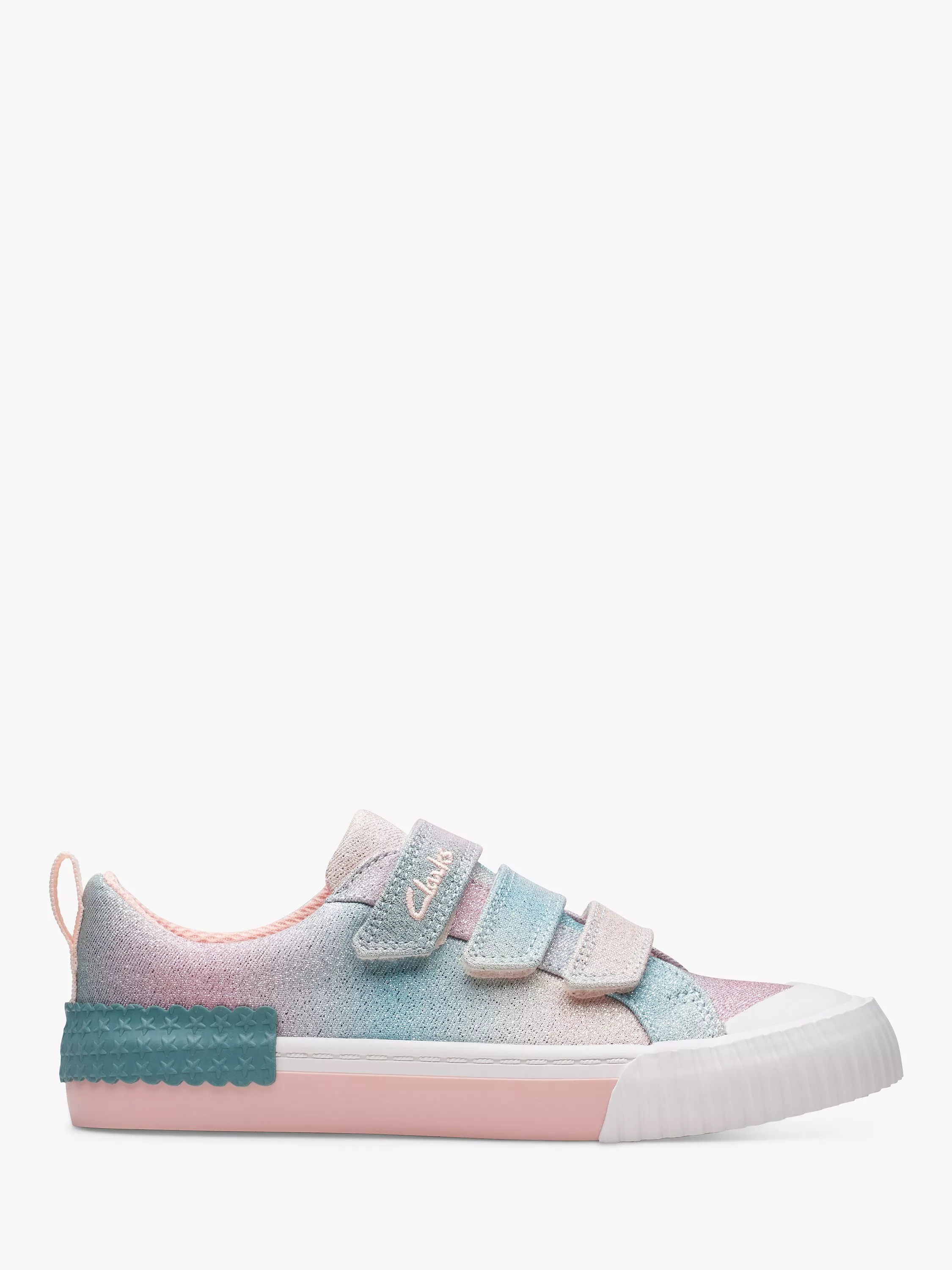 This glitter ombré-effect design also has stacks of child-friendly comfort. Set on a lightweight, grippy sole, this shoe features a bouncy foam footbed and padded collar to keep feet comfortable and supported. Three handy riptape straps makes it easy to pop on and off.