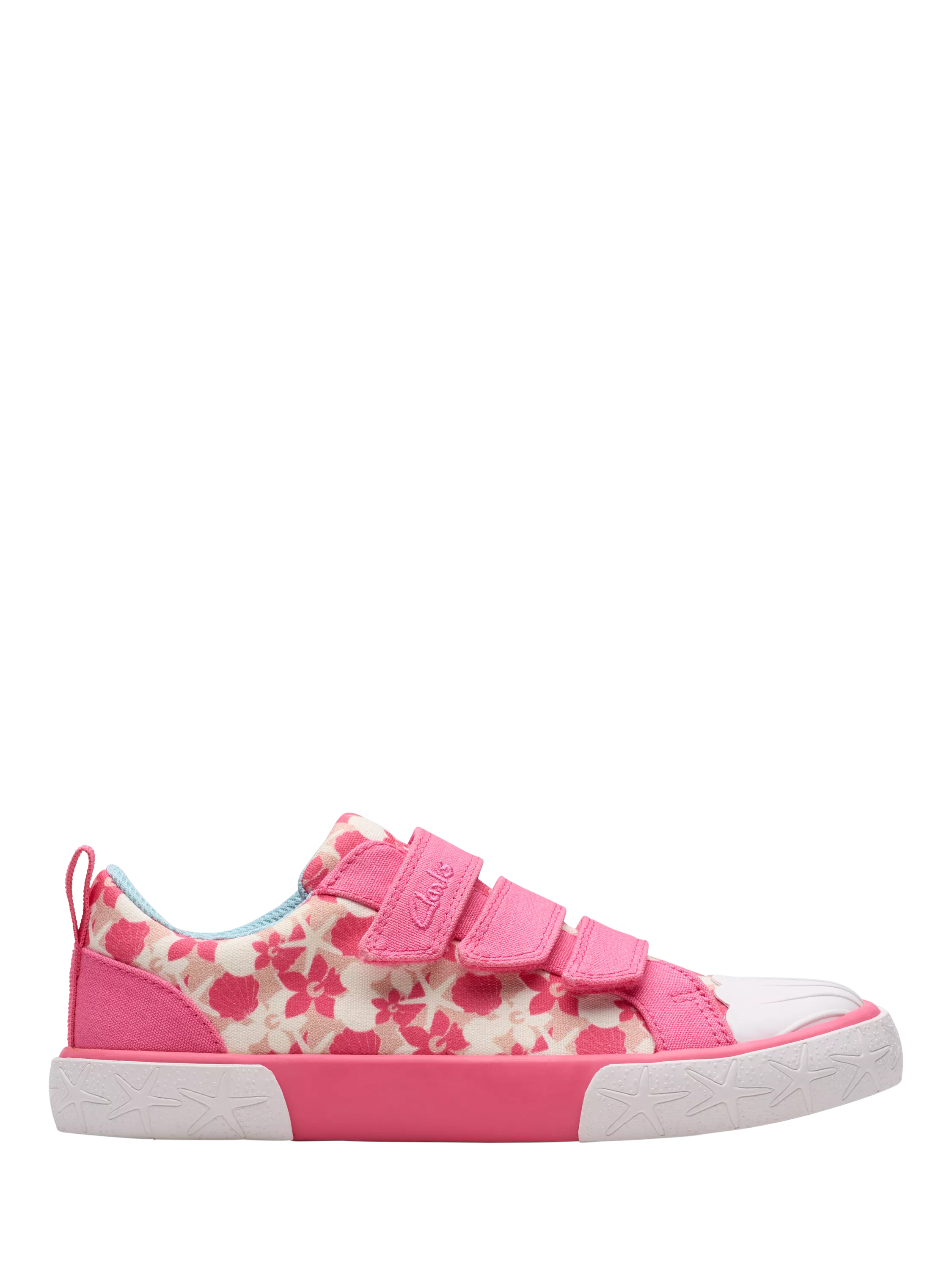 Perfect for park adventures and playdates alike, its soft canvas upper and squishy foam footbed create a supportive environment for growing feet, while a handy rip tape strap makes them easy to pop on when every moment counts. A fusion of beautiful blooms and sea-inspired details, a shell detail toe cap, starfish side wall and ocean-theme sole make every step magical.