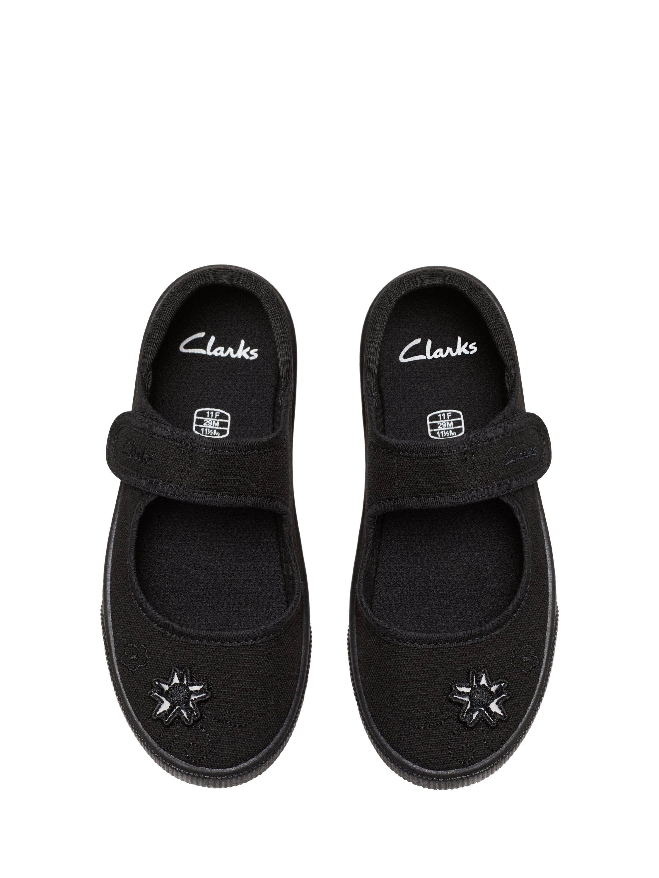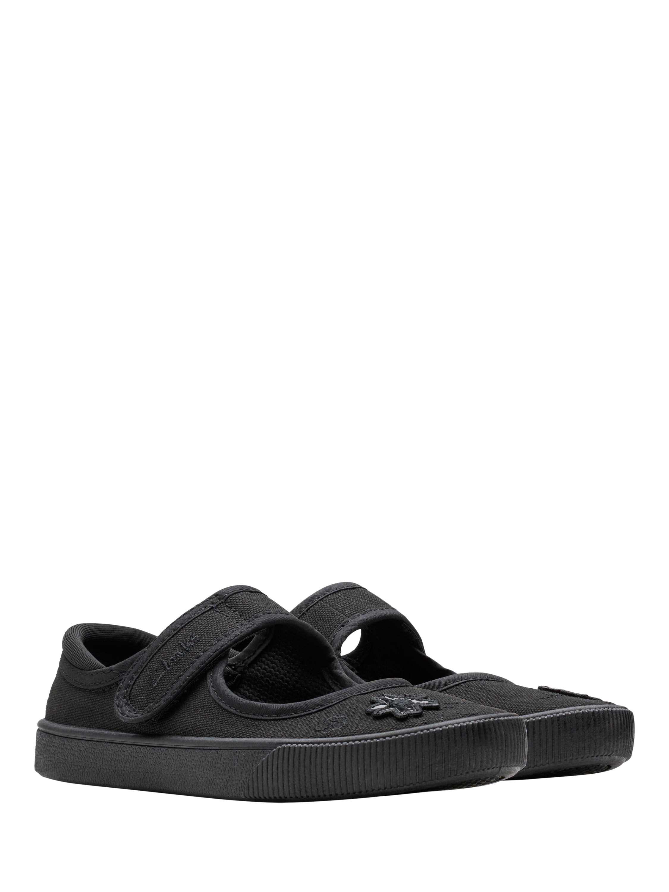Introducing a bar silhouette to the classic plimsoll, Clarks has teamed black fabric with floral detailing for the Hooper Go shoes. The sole flexes with the foot, perfect for school activities and a padded topline ensures the foot is comfortable. Plus it's machine washable so they can stay looking new!