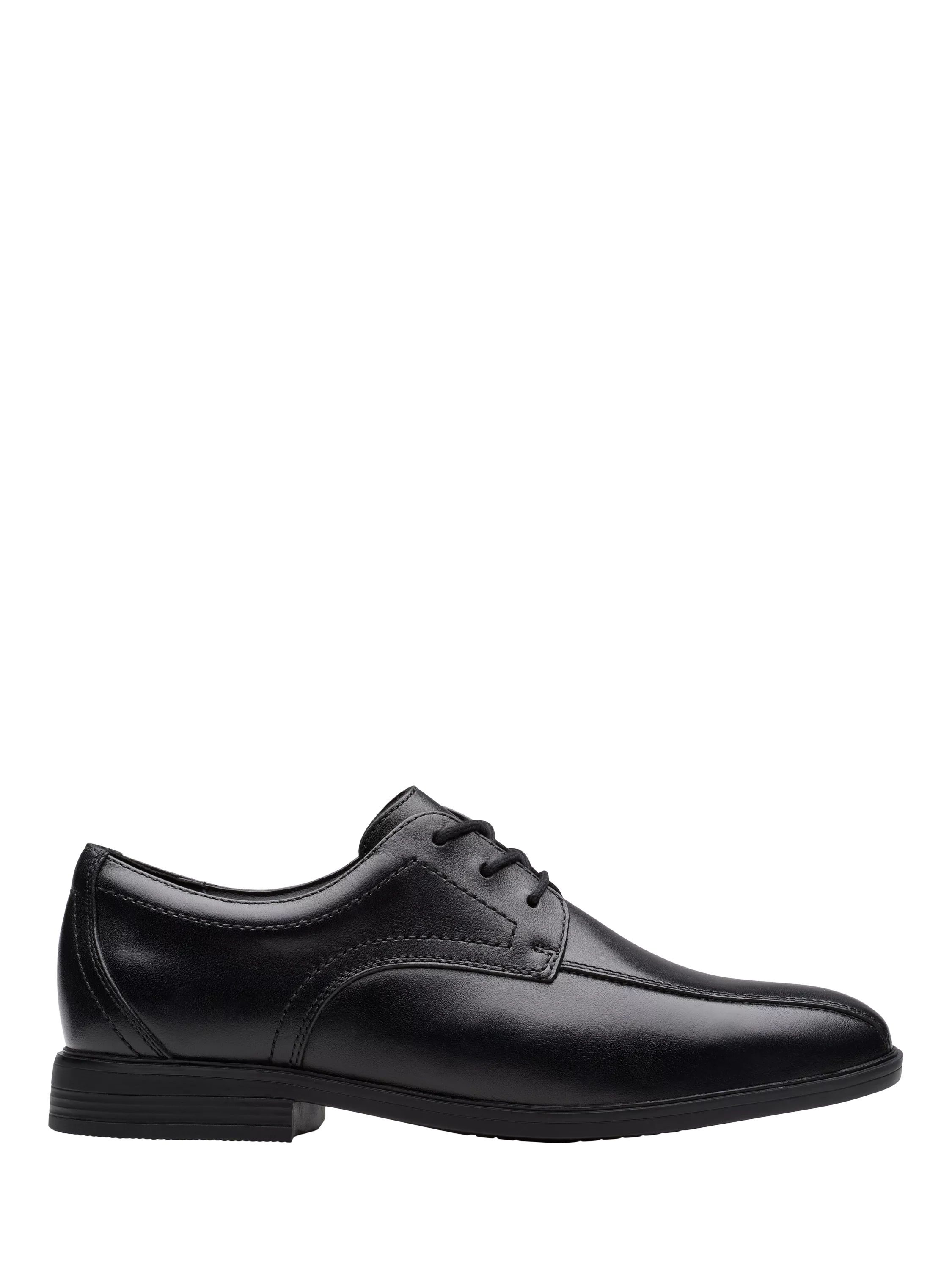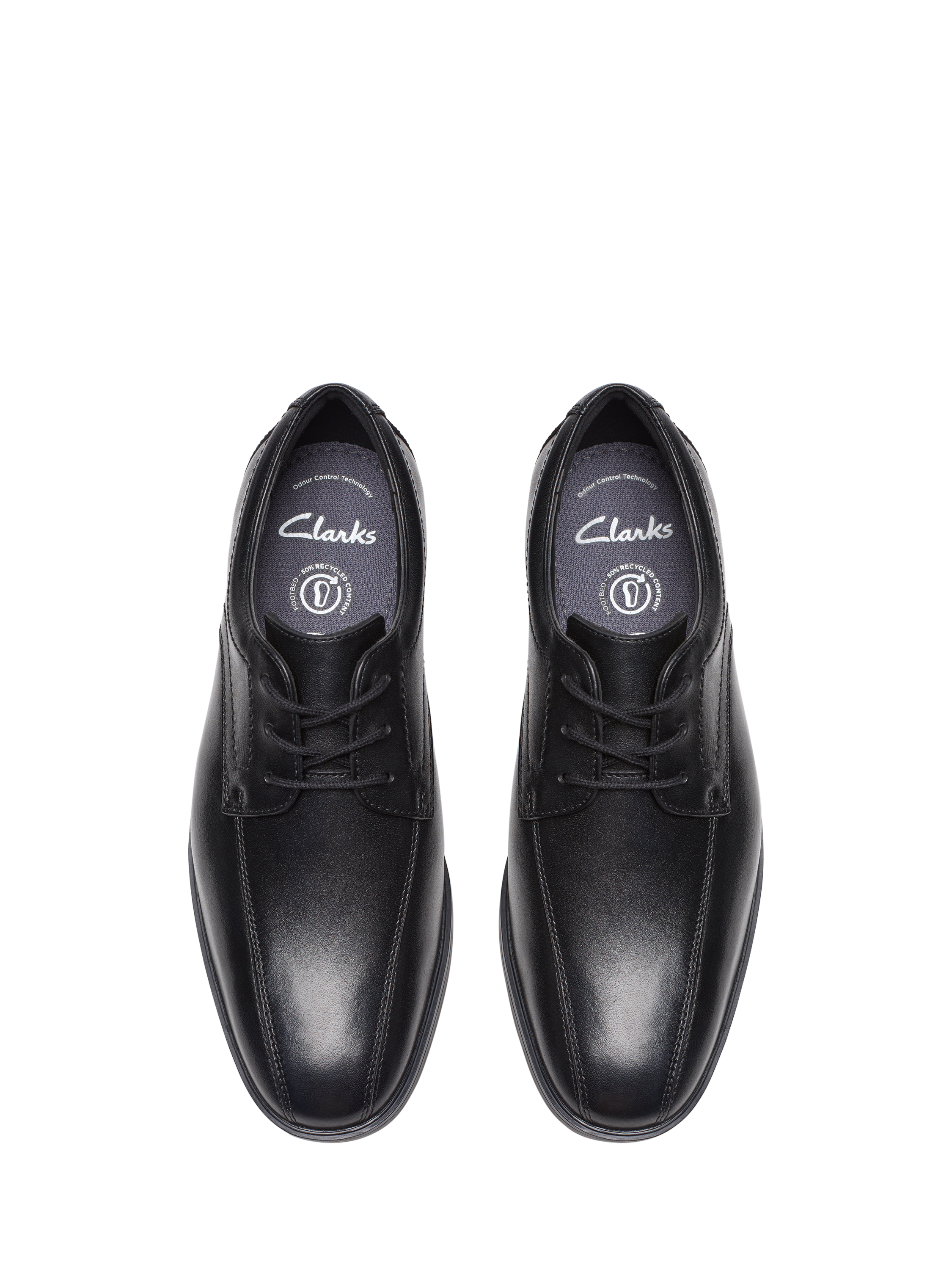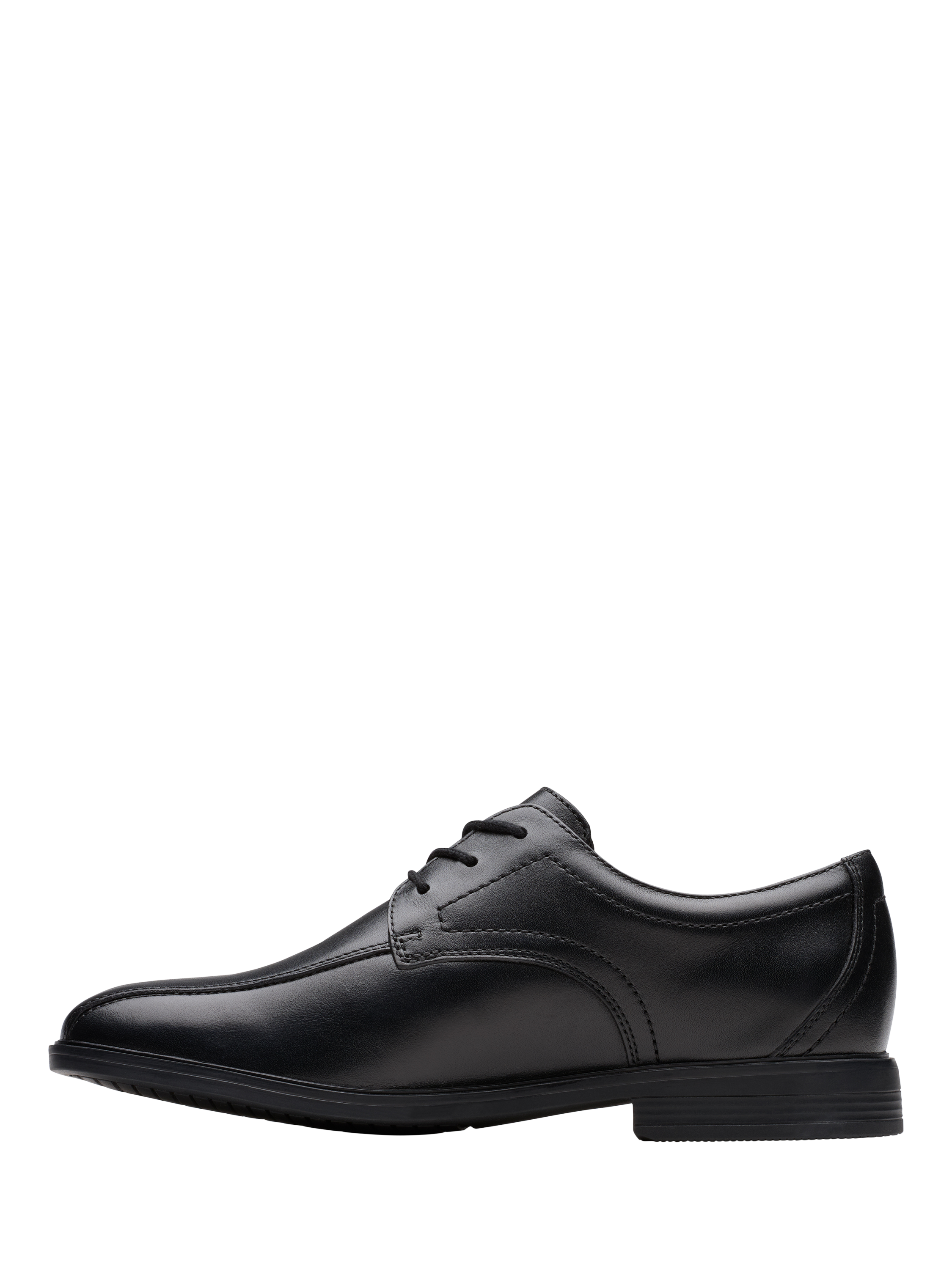 The Jonwin Loop Youth style from Clarks are crafted with durable leather uppers and Microban odour control linings. Subtle stitch detailing and a stacked heel effect add to the mature appeal.