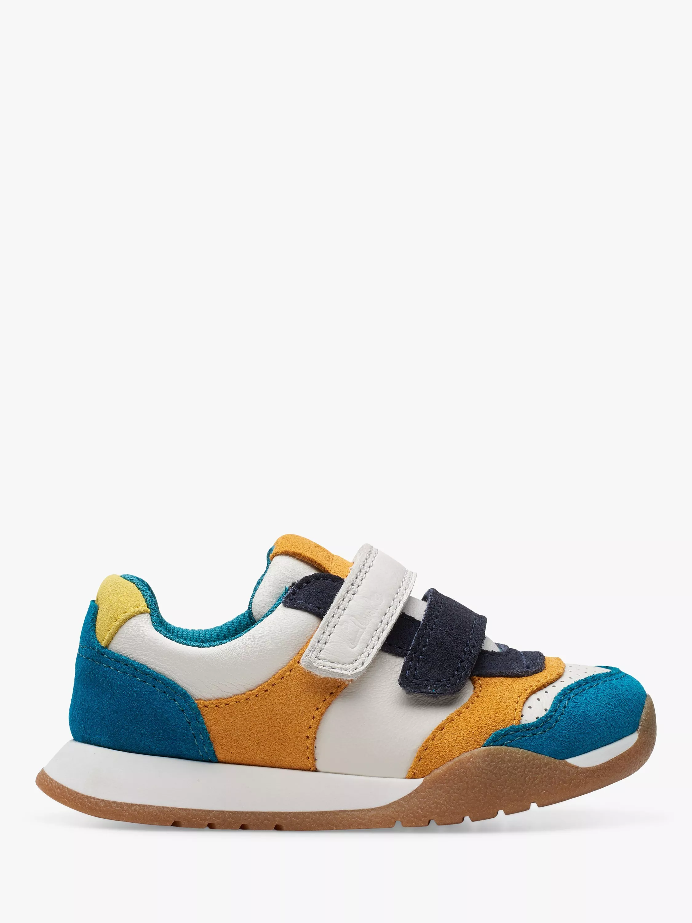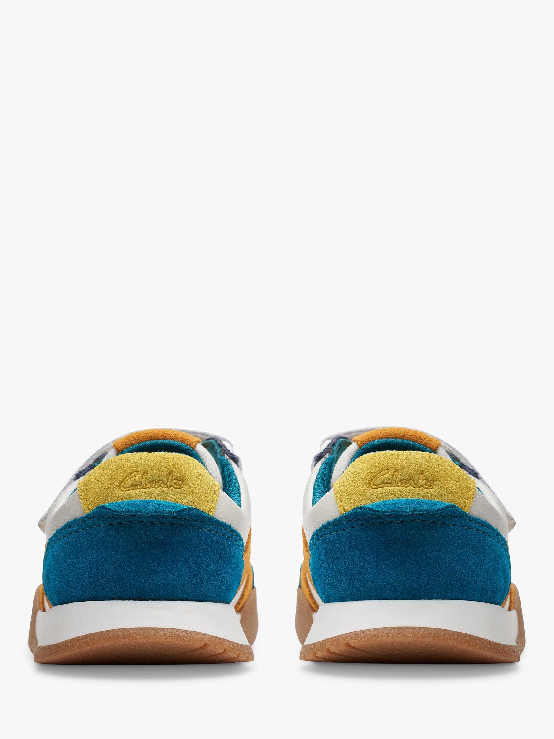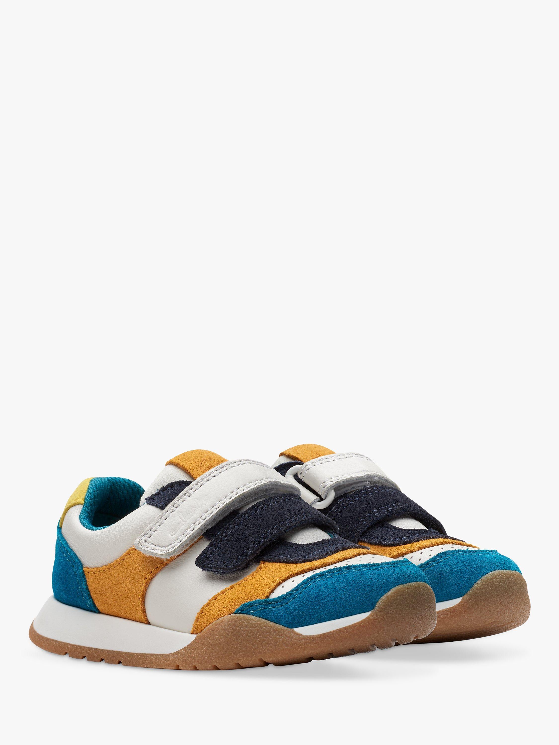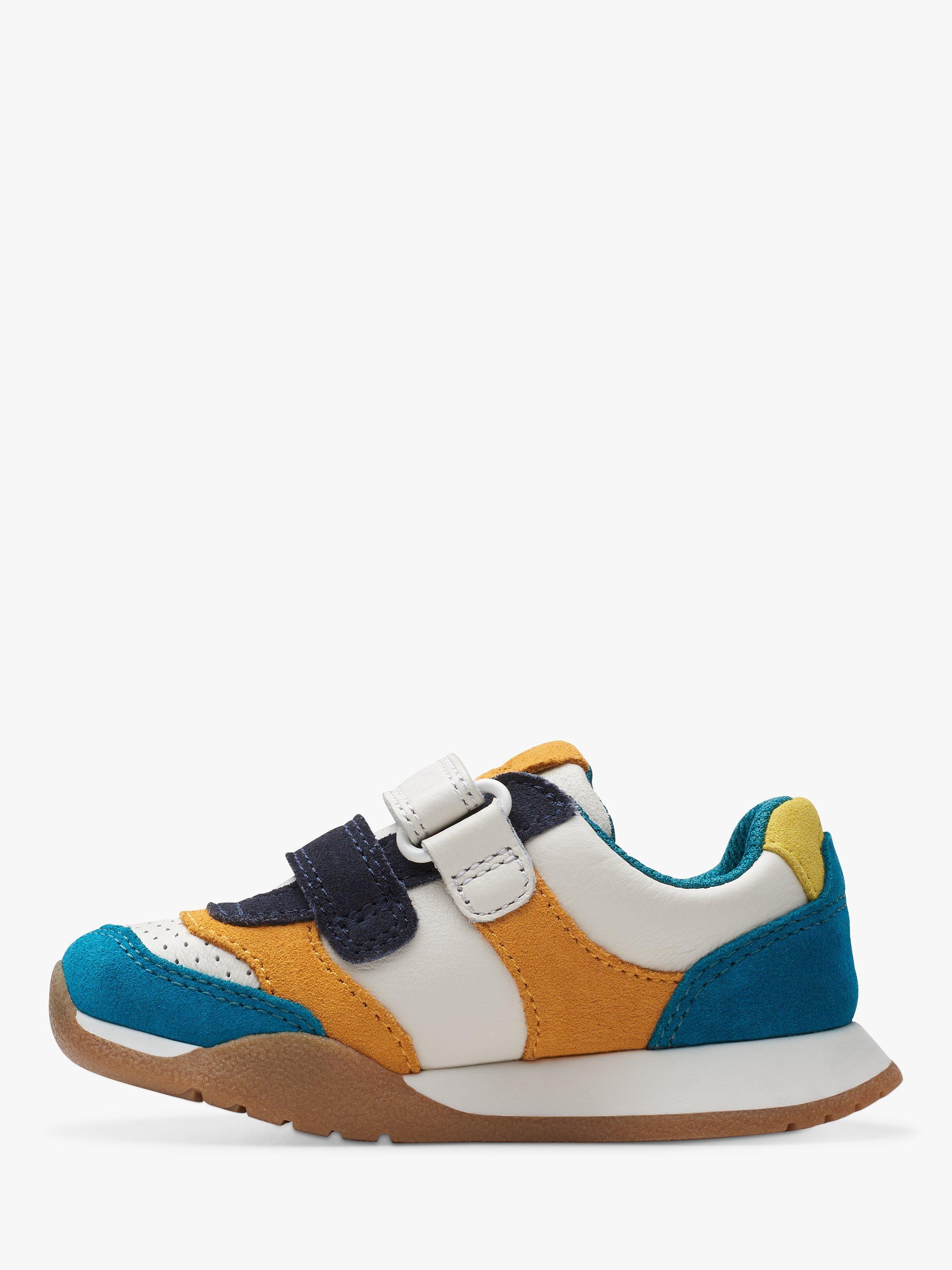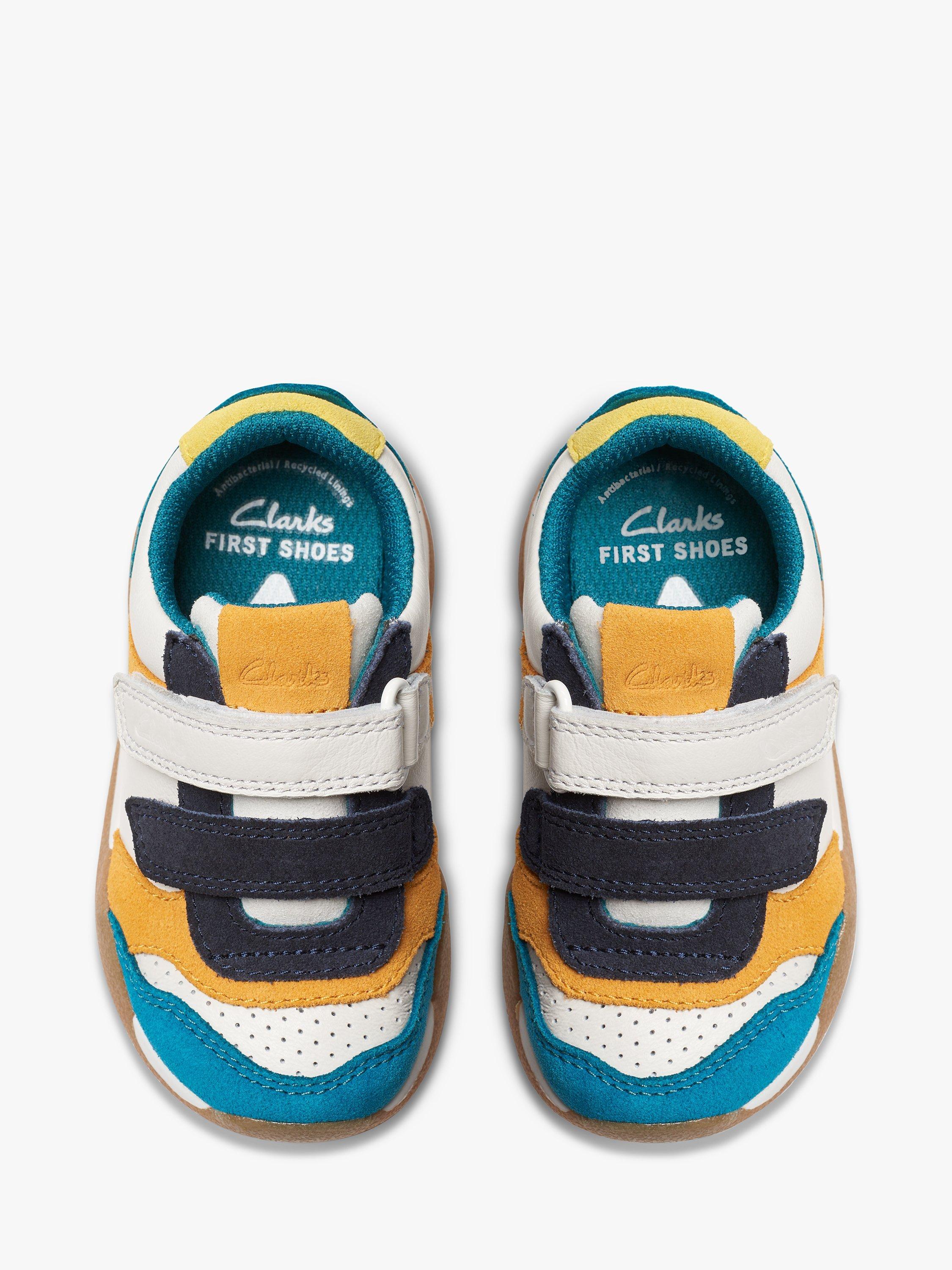 Inspired by Clarks adults' profile, the Race Hero toddler trainer combines mini-me styling with tons of kind comfort and makes every step one you can (both) count on. With a super soft and breathable leather upper, they are designed using a toddler-specific last to aid the gait cycle's natural development The super-soft padded collar supports little feet, whilst the PU foam footbed offers lasting comfort. Double riptape straps offer easy on/off and a secure- Antimicrobial Agion®-infused 50% recycled mesh lining keeps feet fresh. Flex-grooved, non-marking grippy rubber sole bends with natural foot motion.