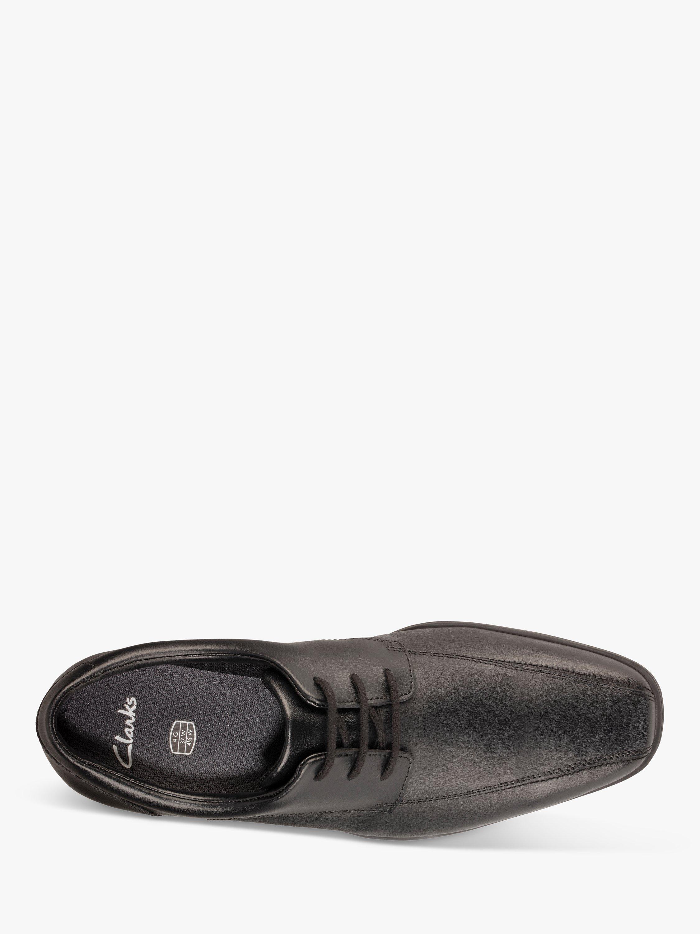 Offering a smart, contemporary look, this lace-up school shoe features an elongated square-toe shape with over-the-toe stitching. Subtle padding in the collar feels comfortable while flex grooves in the sturdy rubber sole make for enhanced movement of the foot. Agion technology helps feet stay fresh.