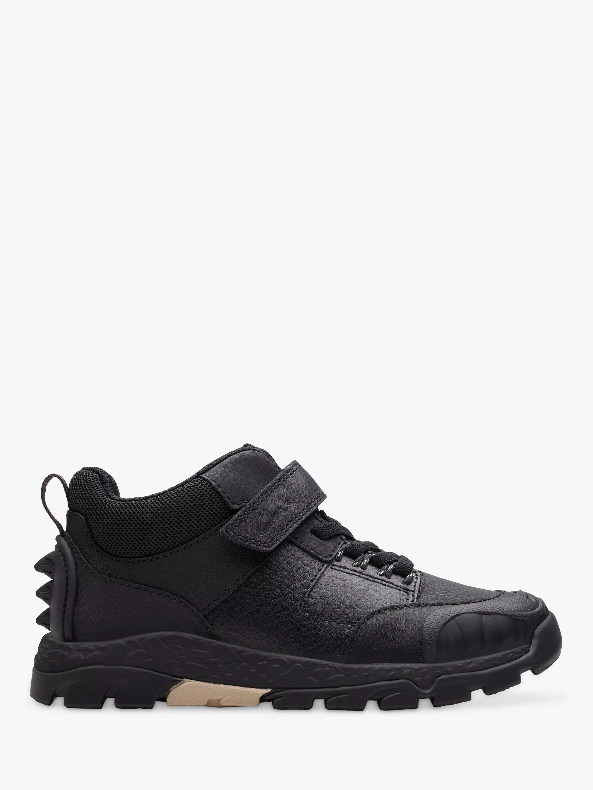 Chunky trainer for monsters on the move. These kids' high-top trainer Steggy 2 Glow packs points for comfy and cool. Crafted with leather uppers, packed with bouncy foam footbeds and extra ankle padding. Easy-peasy riptape straps make it simple to pop on, and its cool spine details pep up this pair in roar-some style.