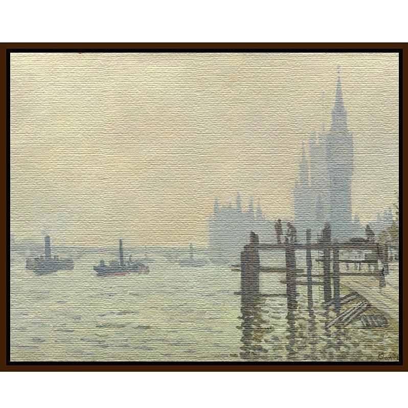 Claude Monet- Thames Below Westminster, Dark Brown Framed Canvas